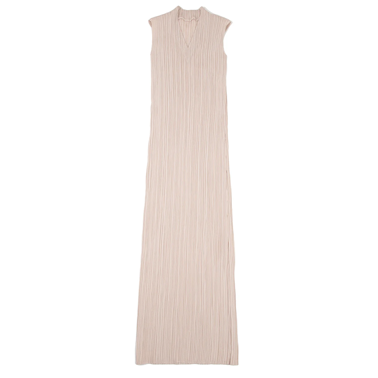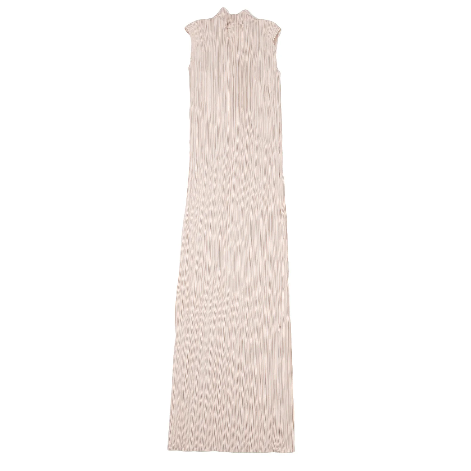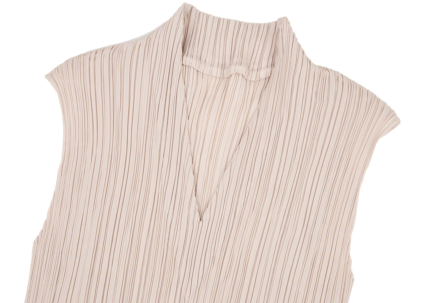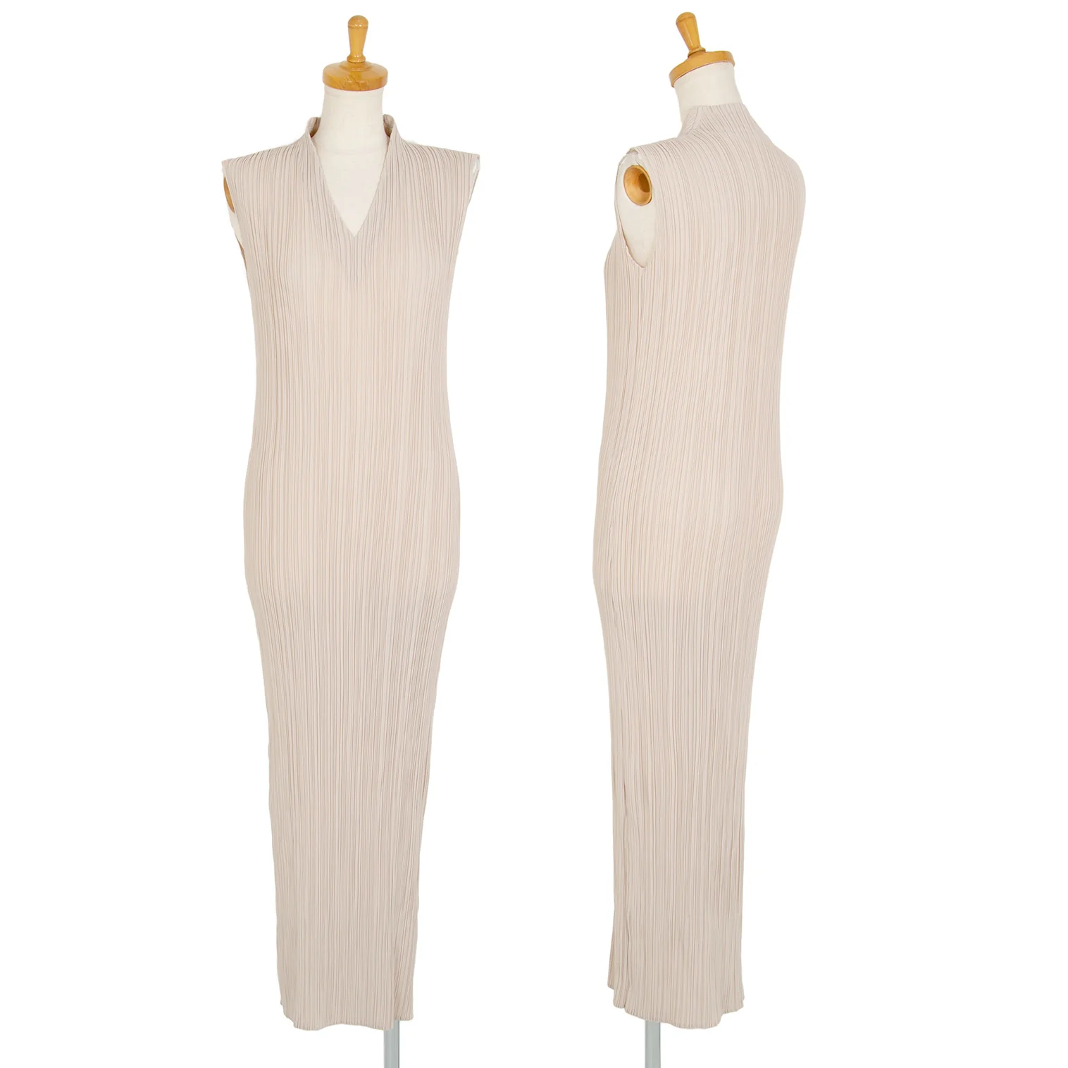 イッセイミヤケISSEY MIYAKE プリーツノースリーブワンピース ライトベージュM位