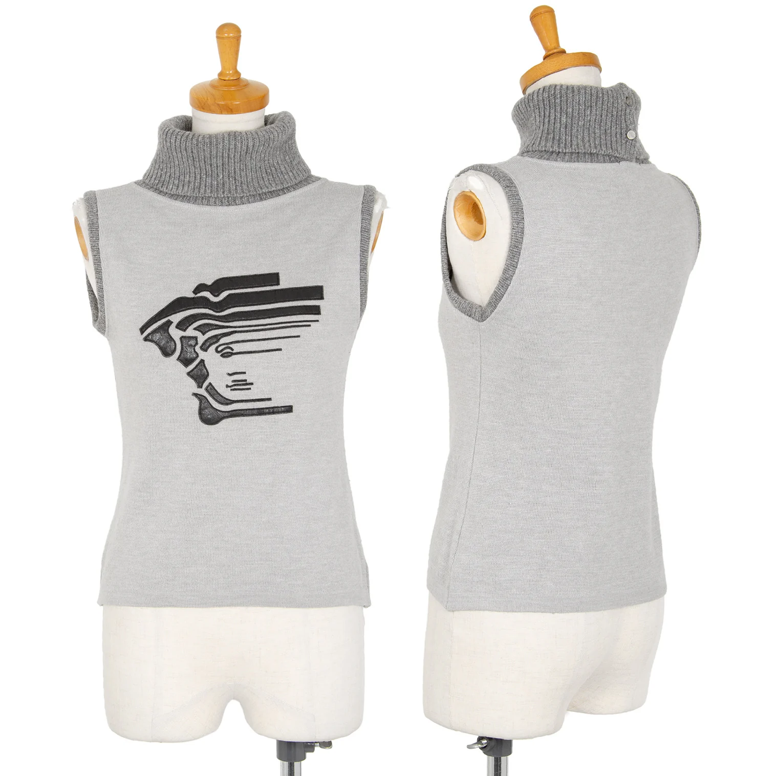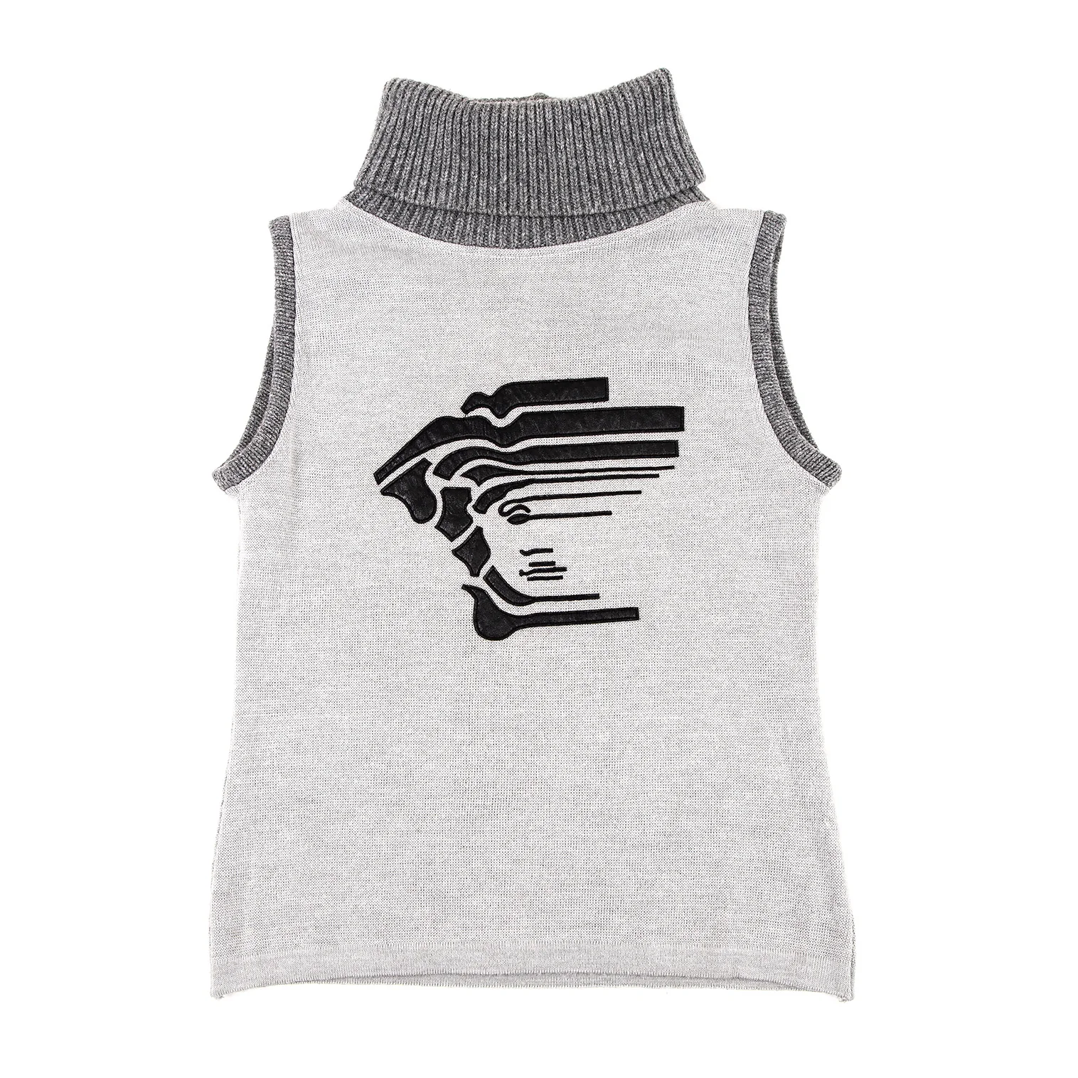 ヴェルサーチスポーツVERSACE PORT メデューサフェイクレザーパッチハイネックノースリーブニット グレーS