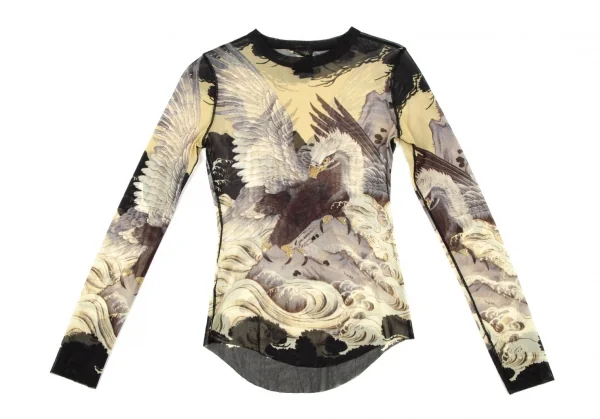 ジャンポールゴルチエ ファムJean Paul GAULTIER FEMME イーグルプリントパワーネットカットソー ベージュ黒40