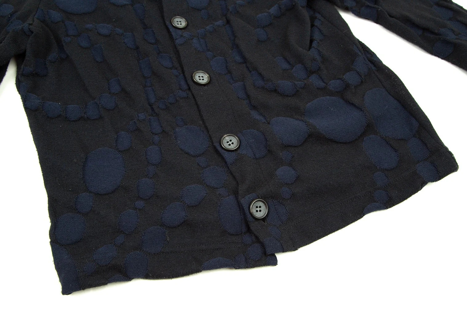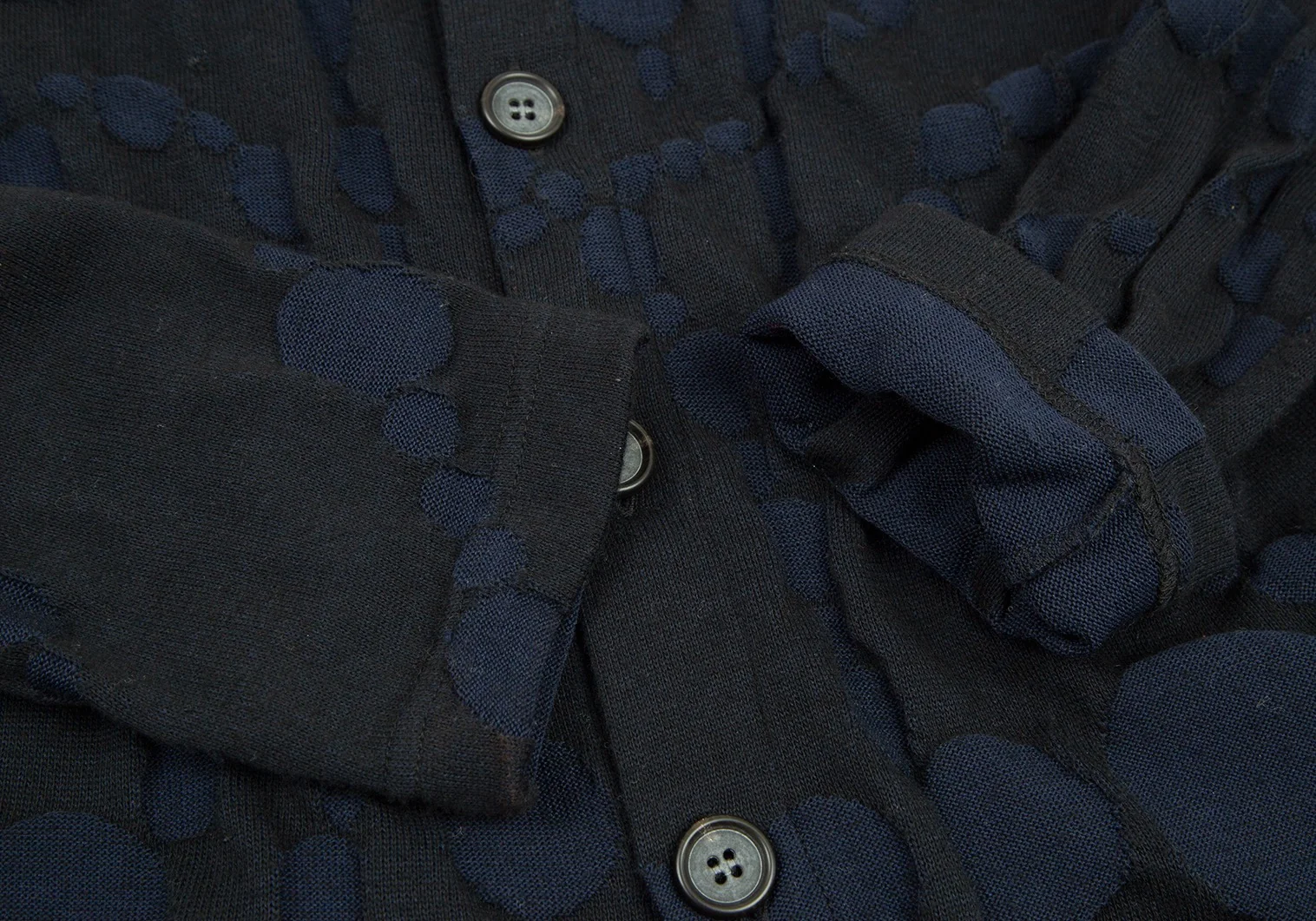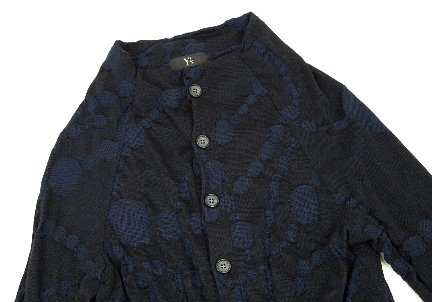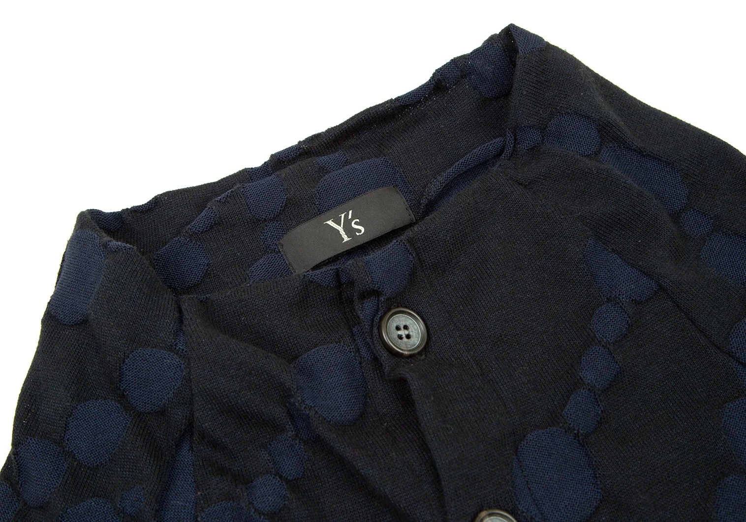 ワイズY's ドット柄織りニットカーディガン 黒紺2