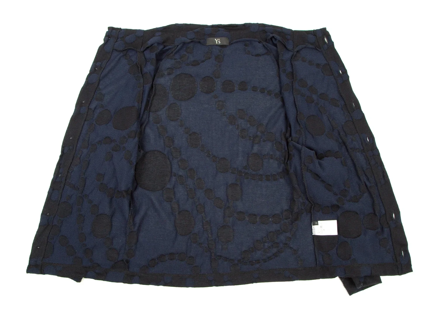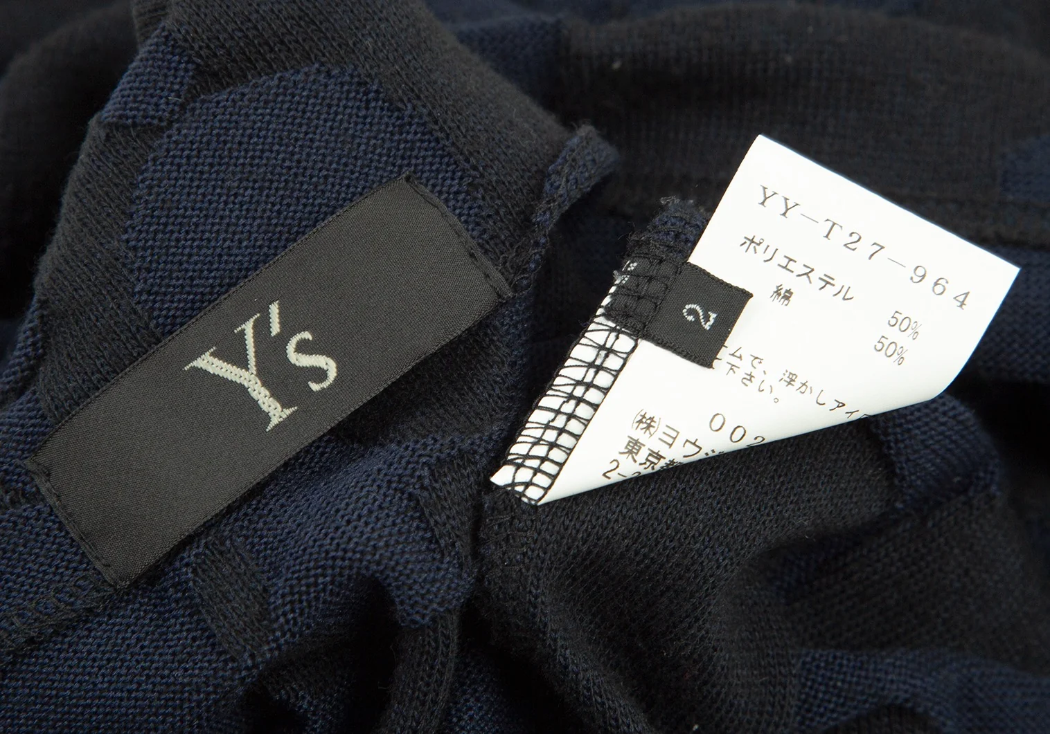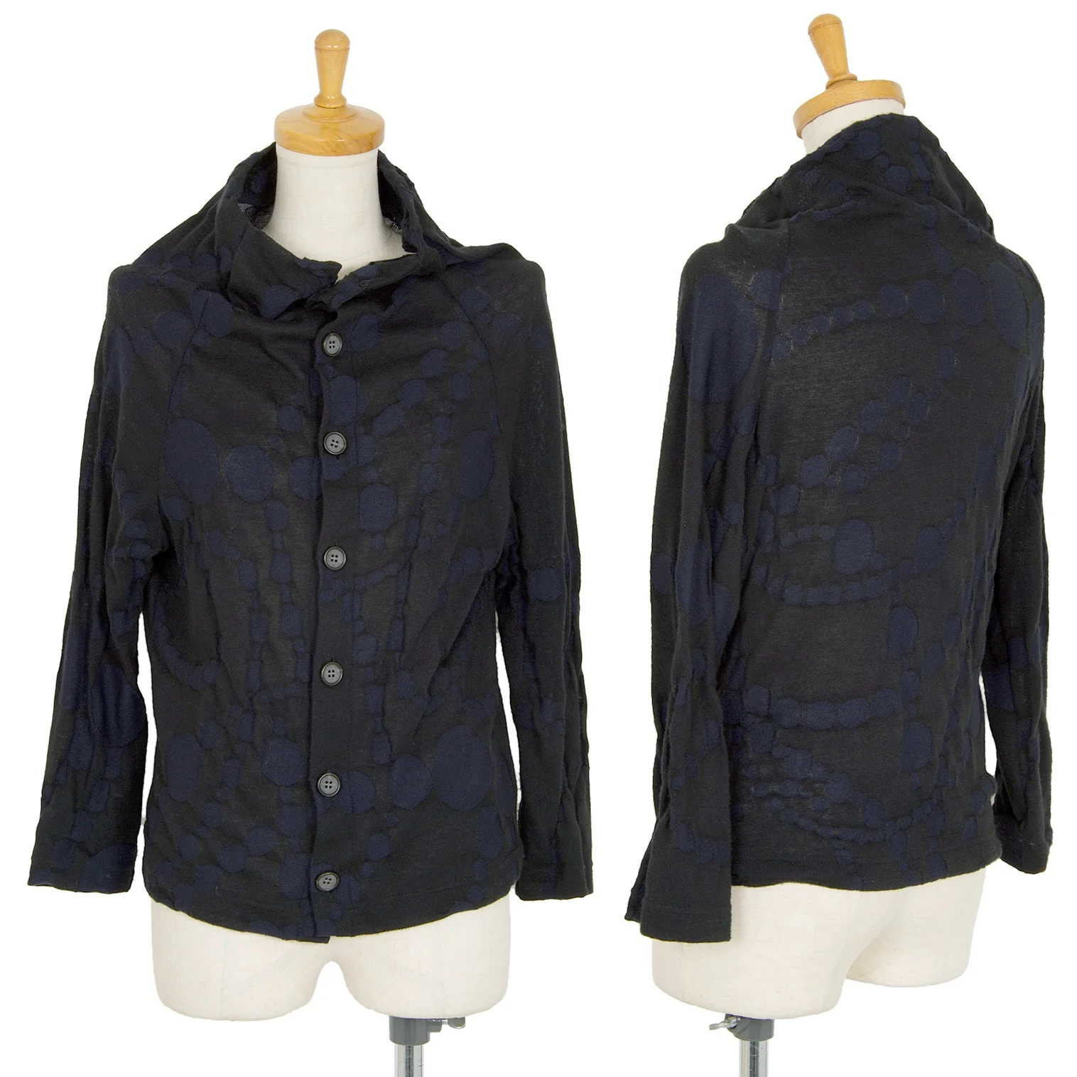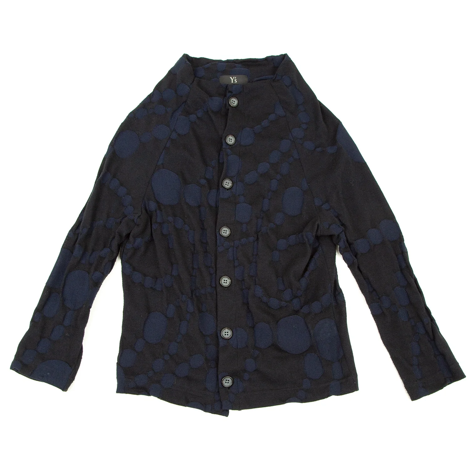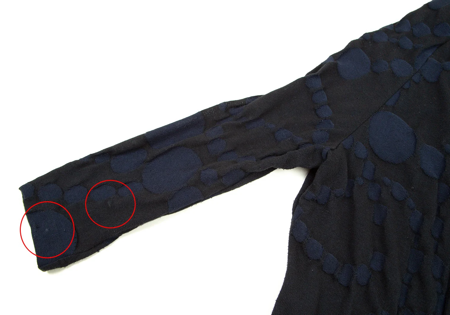 ワイズY's ドット柄織りニットカーディガン 黒紺2