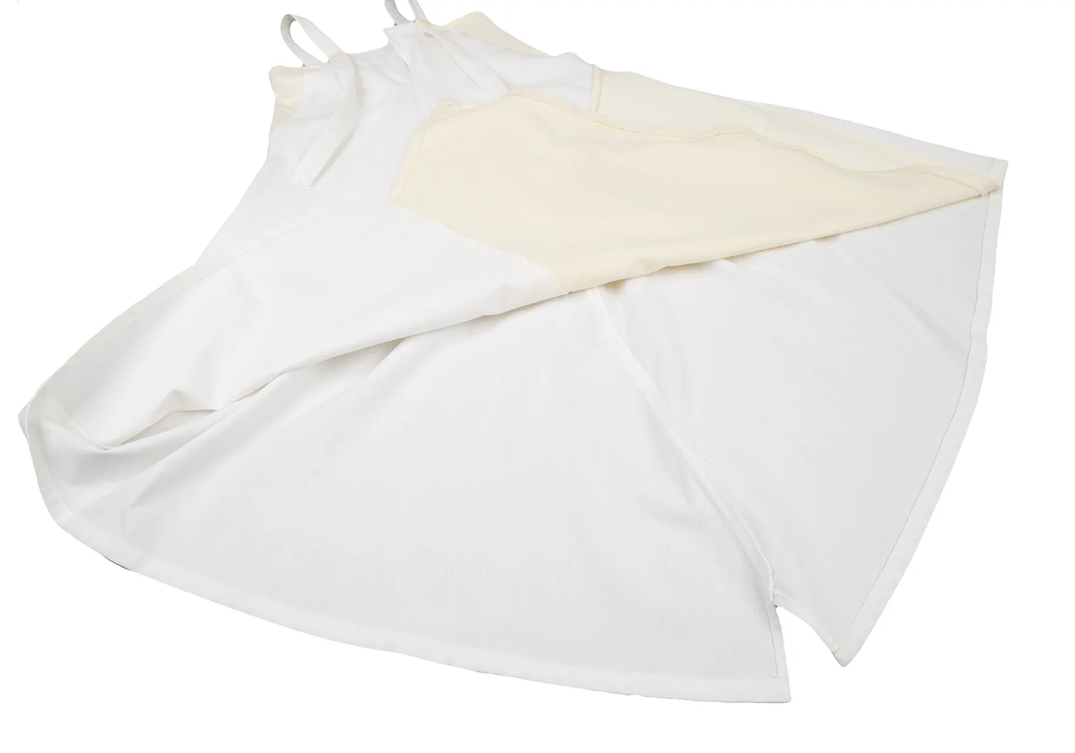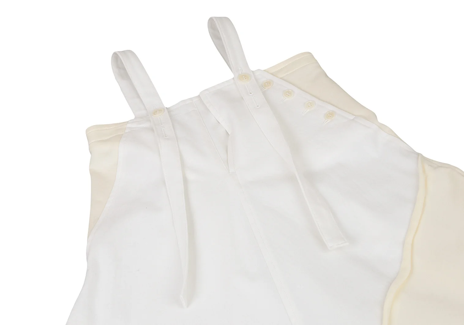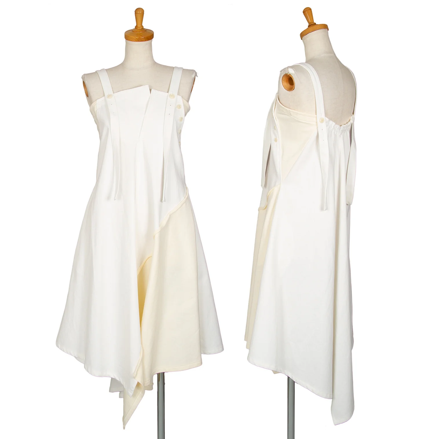 ワイズY's ストレッチ切替デニムフレアワンピース 白クリーム1
