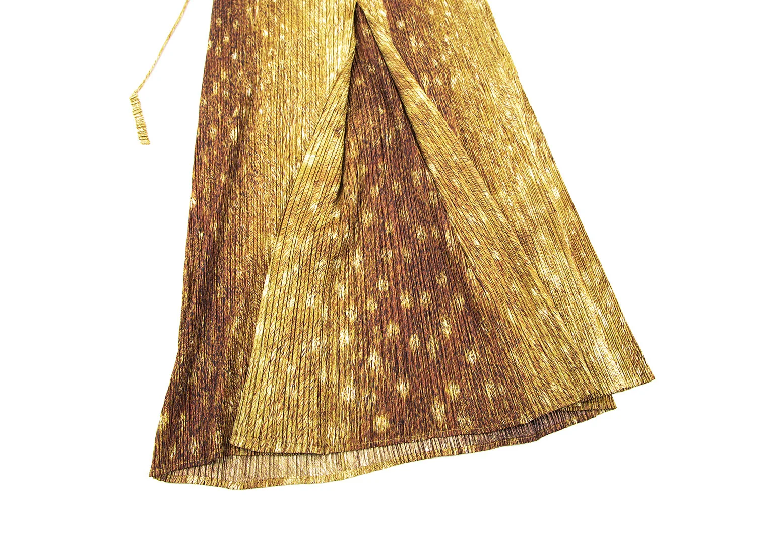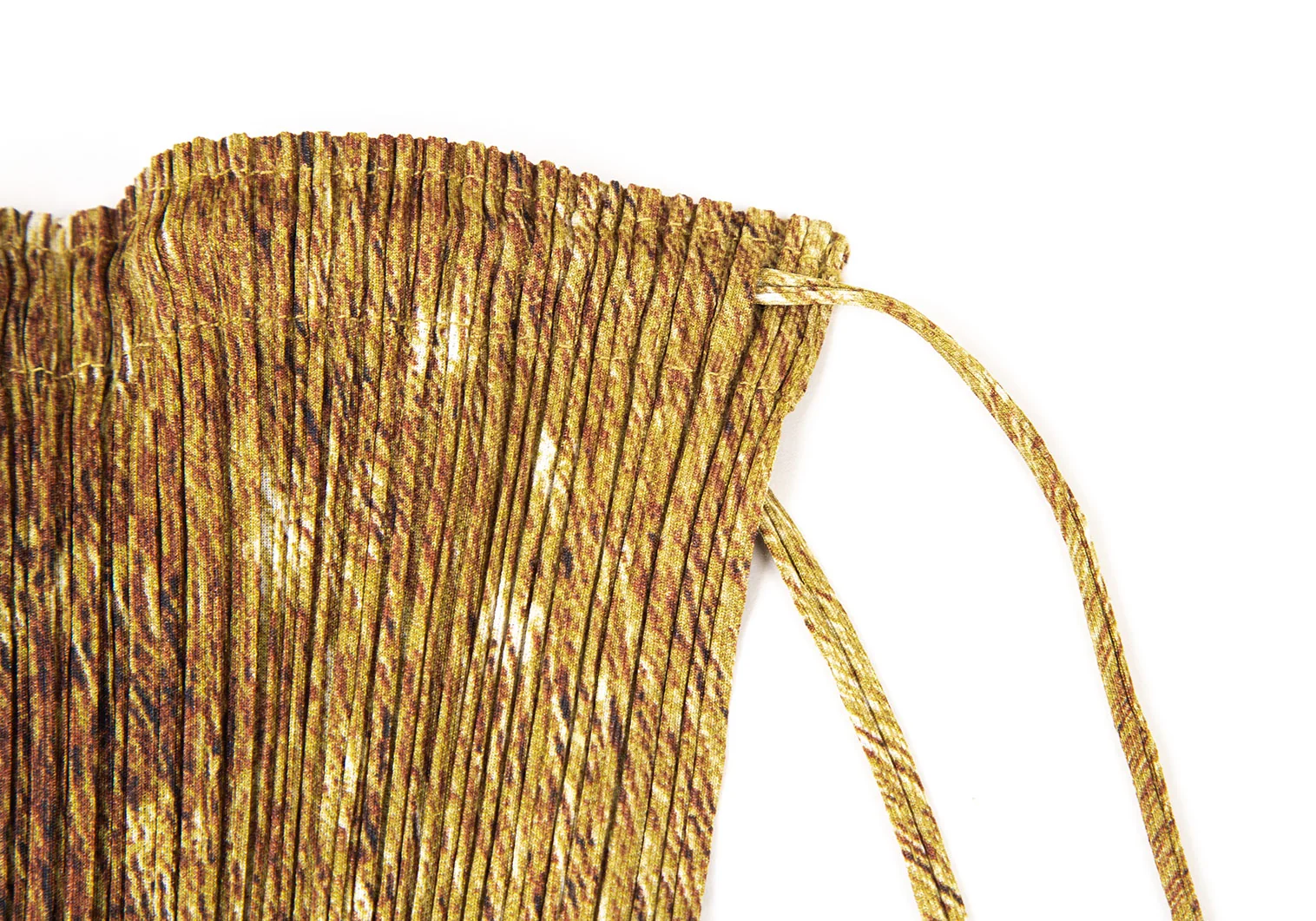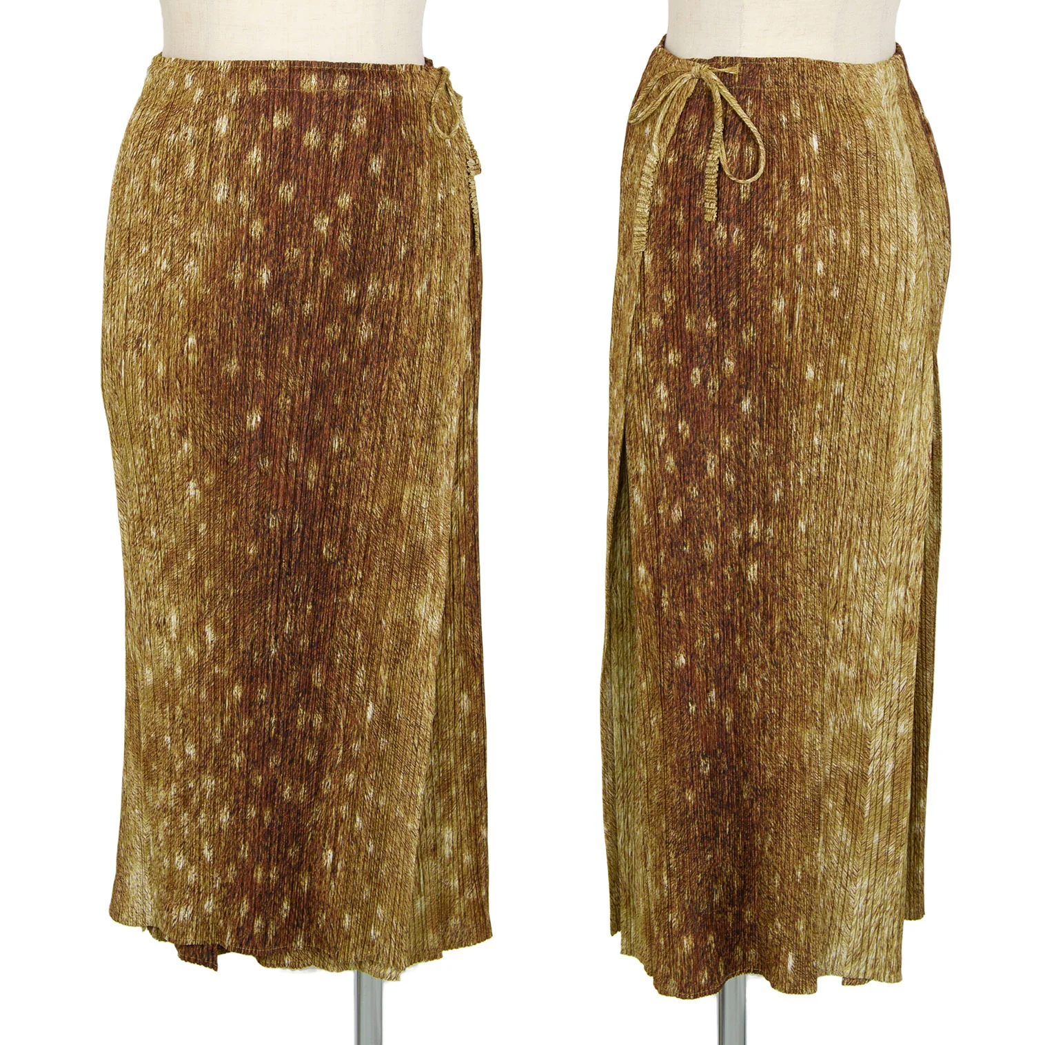 プリーツプリーズPLEATS PLEASE 毛皮プリントラップスカート 茶3
