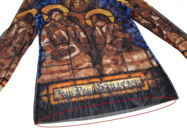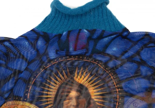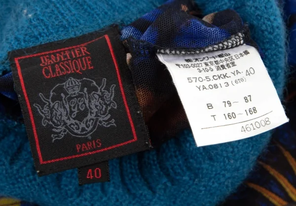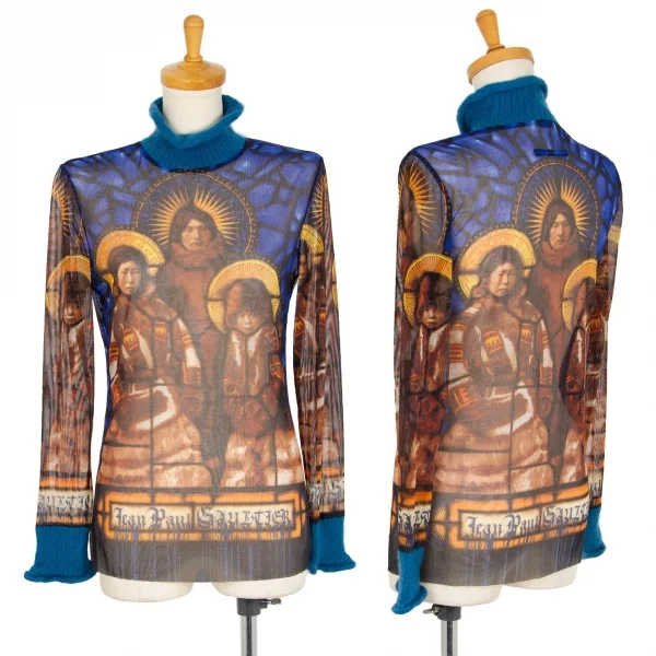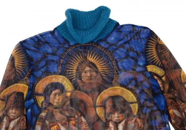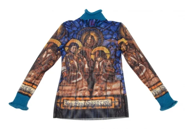 ジャンポールゴルチエ クラシックJean Paul GAULTIER CLASSIQUE ニット切替グラフィックプリントパワーネットカットソー 青40