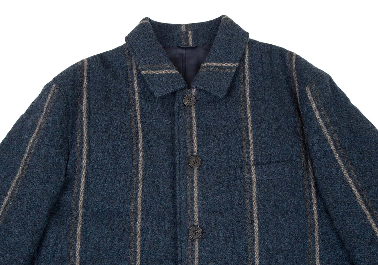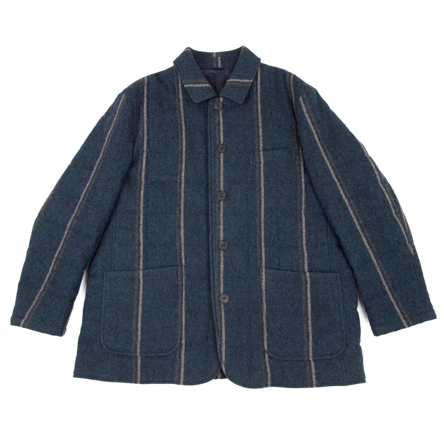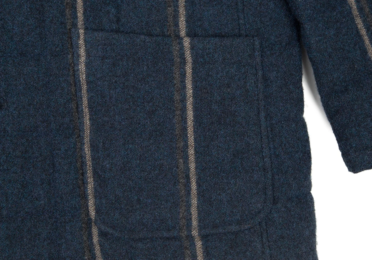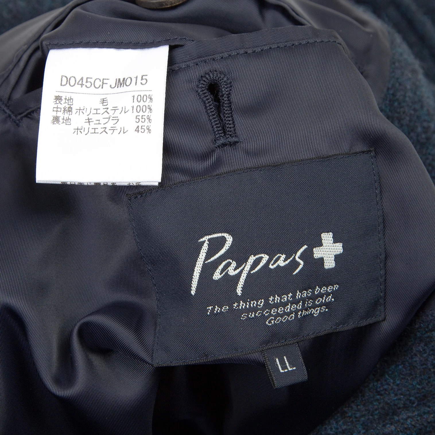 パパスプラスPapas+ ツイードスクエアキルティング中綿ジャケット 紺LL