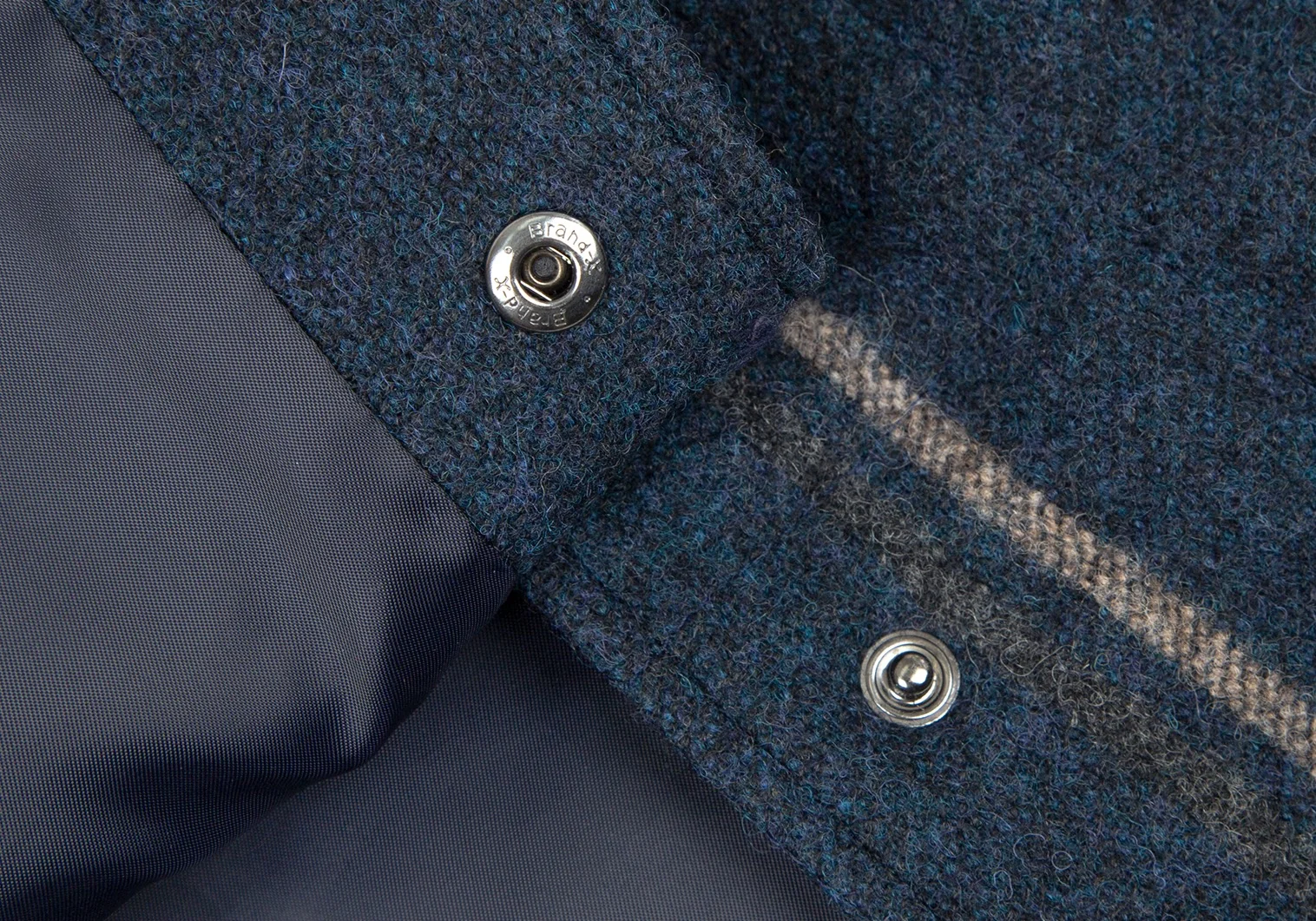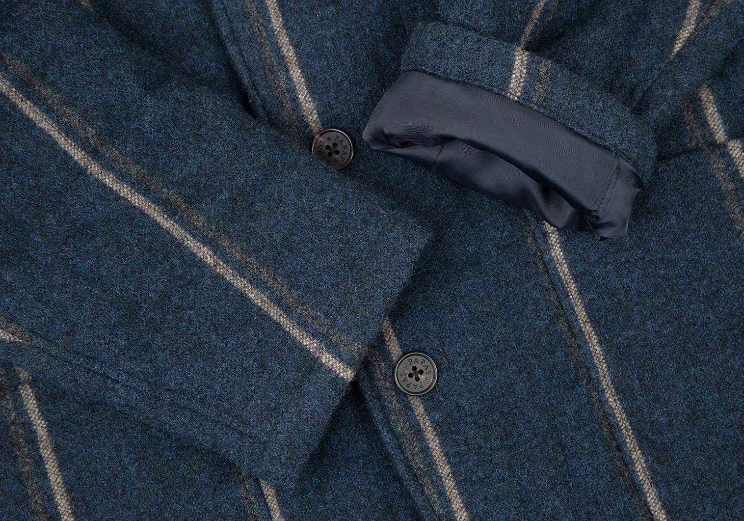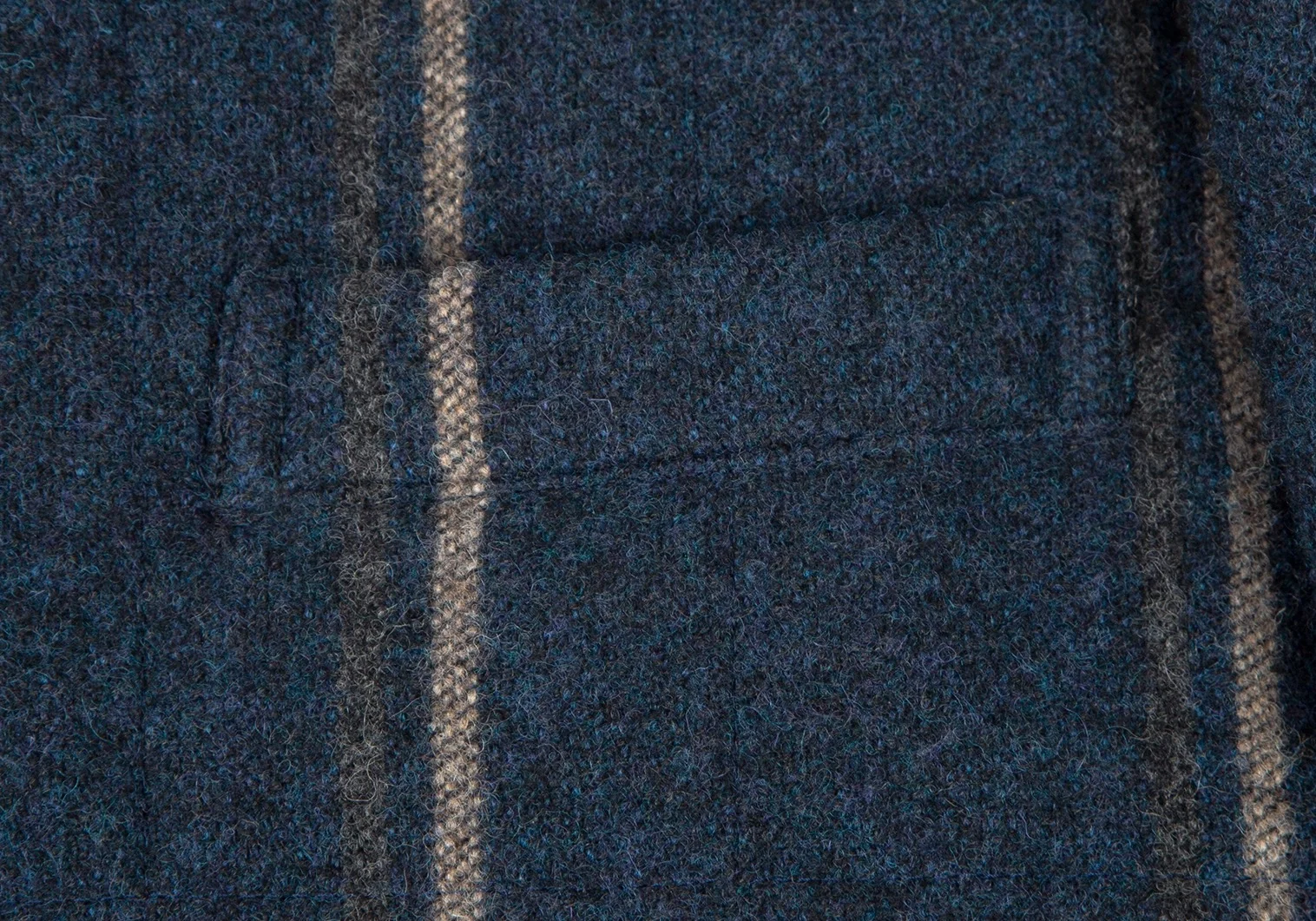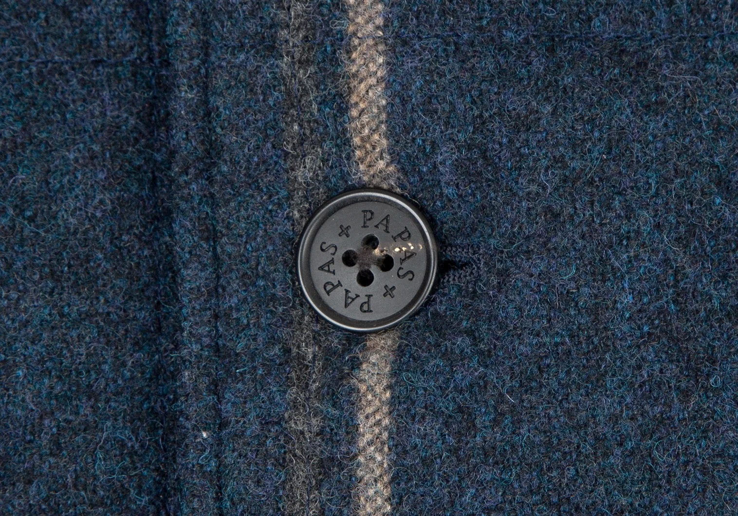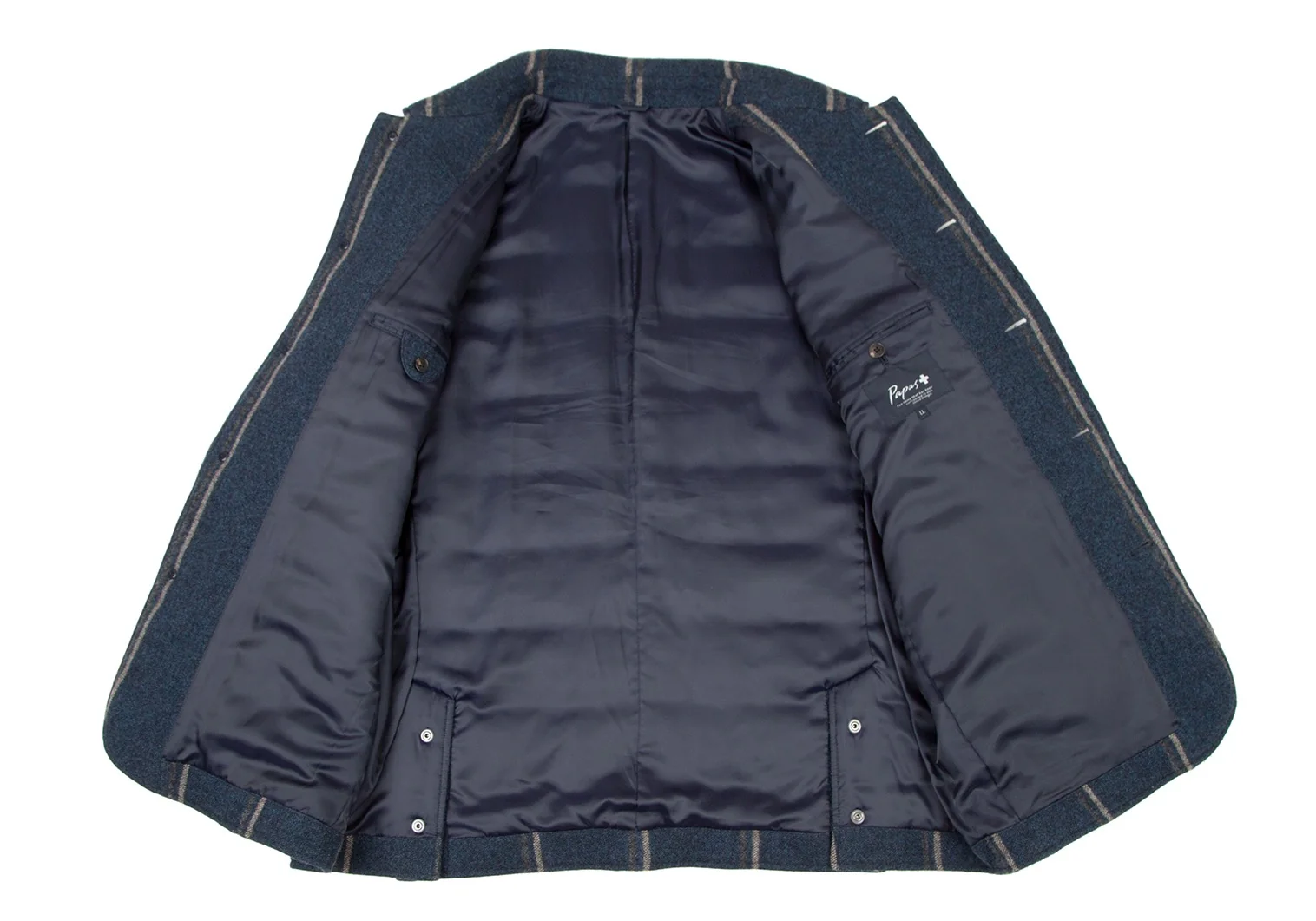 パパスプラスPapas+ ツイードスクエアキルティング中綿ジャケット 紺LL