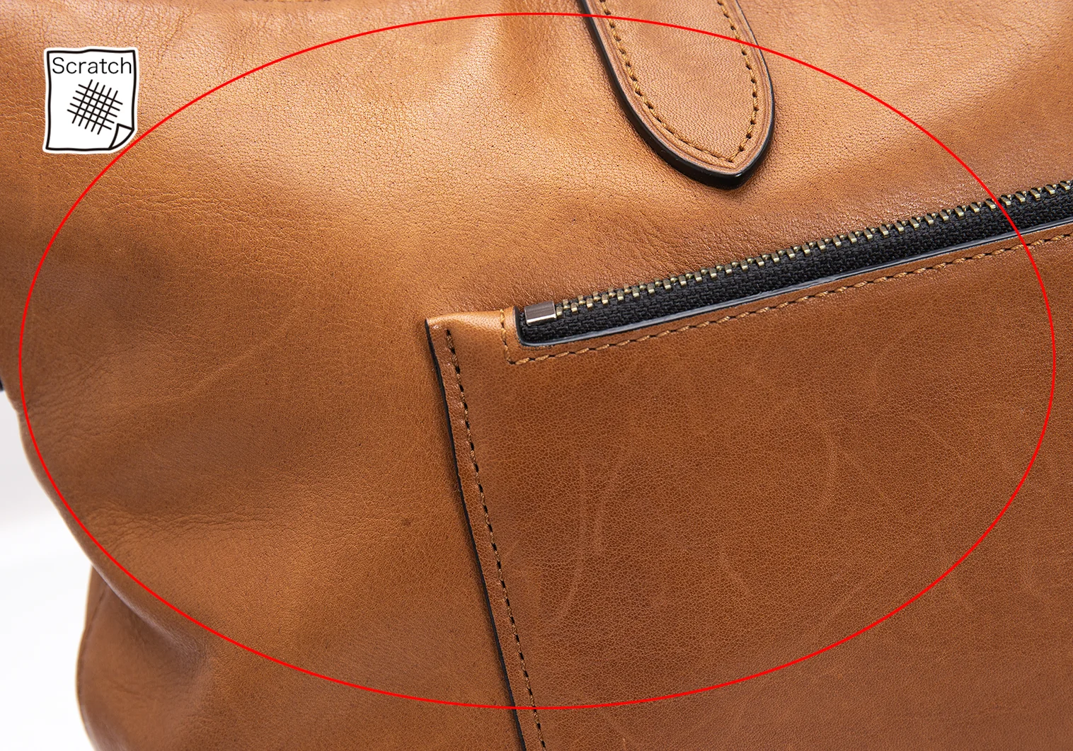全体的に小傷、角擦れ、ショルダーレザー部分表裏にシミがあります(写真参照)。その他目立った傷や汚れなどなくいい状態です。