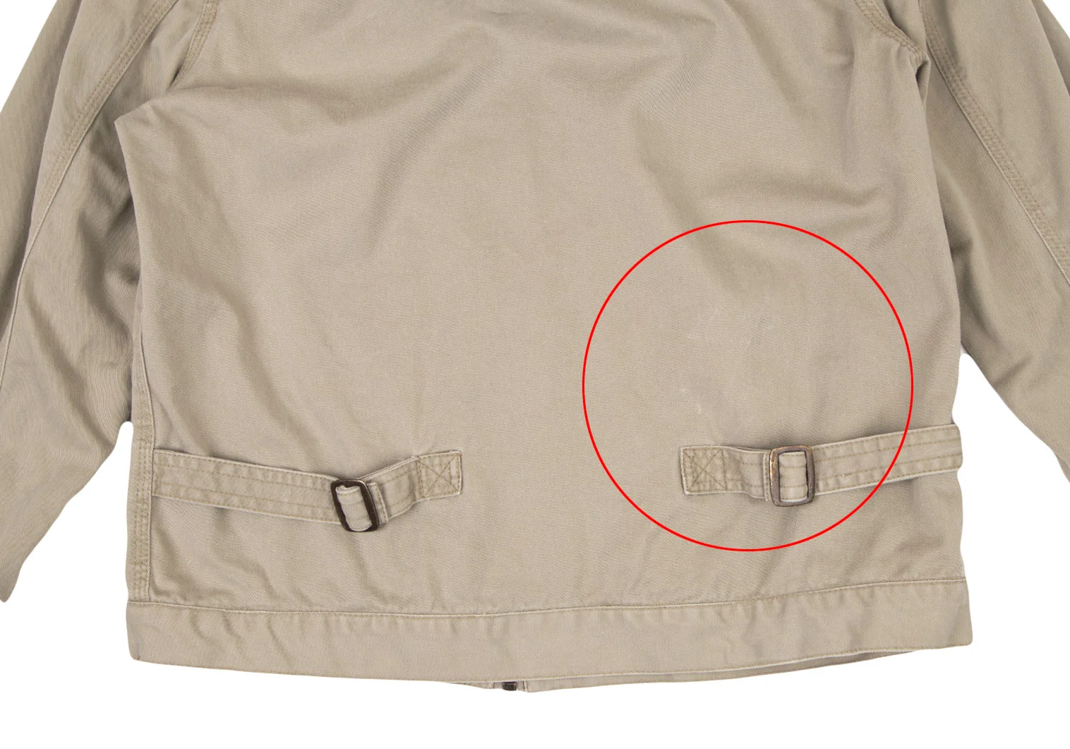 襟裏に薄シミ、袖裏・後ろ裾に擦れ、裏裾にステッチ落ち箇所があります(写真参照)。その他に目立ったシミ、汚れ、ほつれ等ありません。クリーニング済み