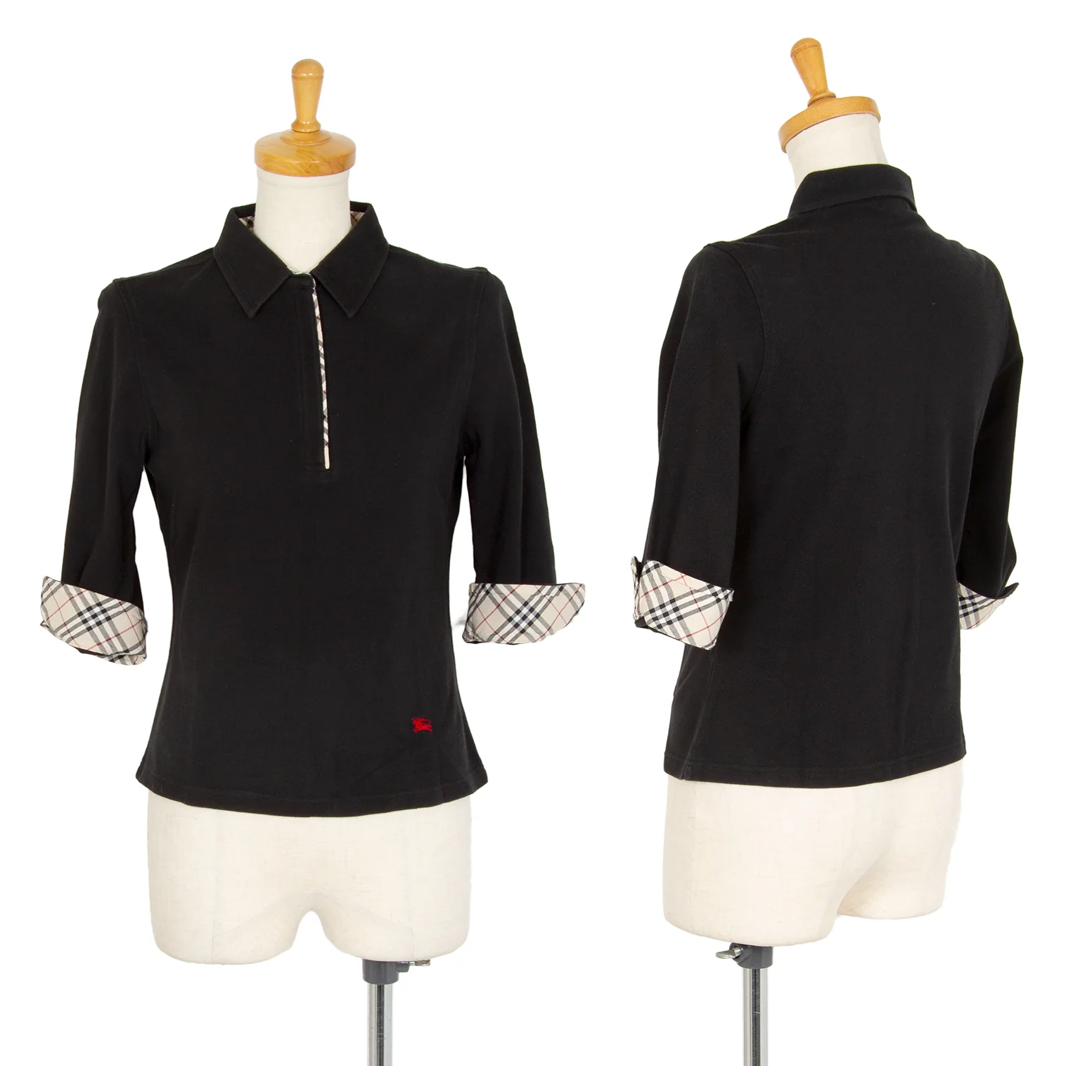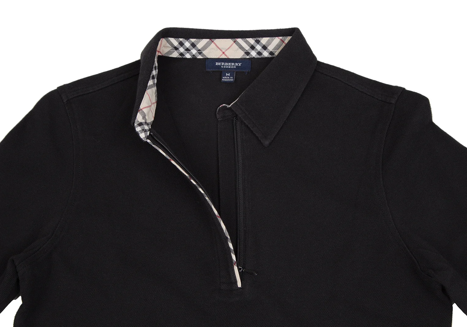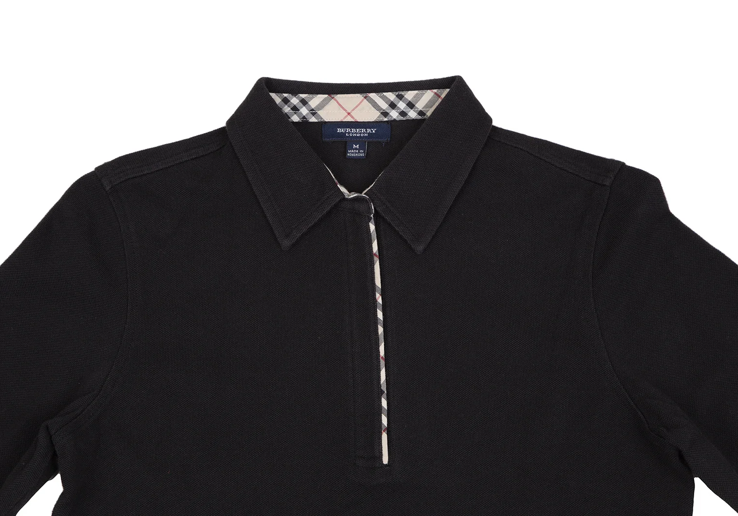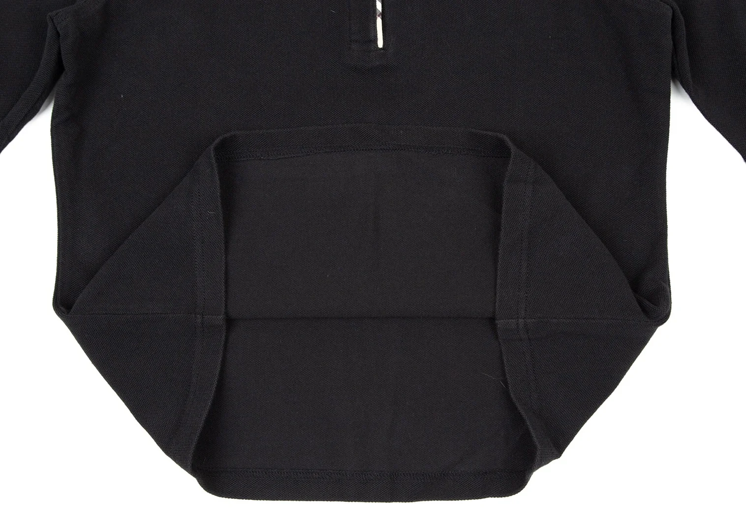 バーバリーロンドンBURBERRY LONDON コットン鹿の子ハーフジップ7部袖ポロシャツ 黒M