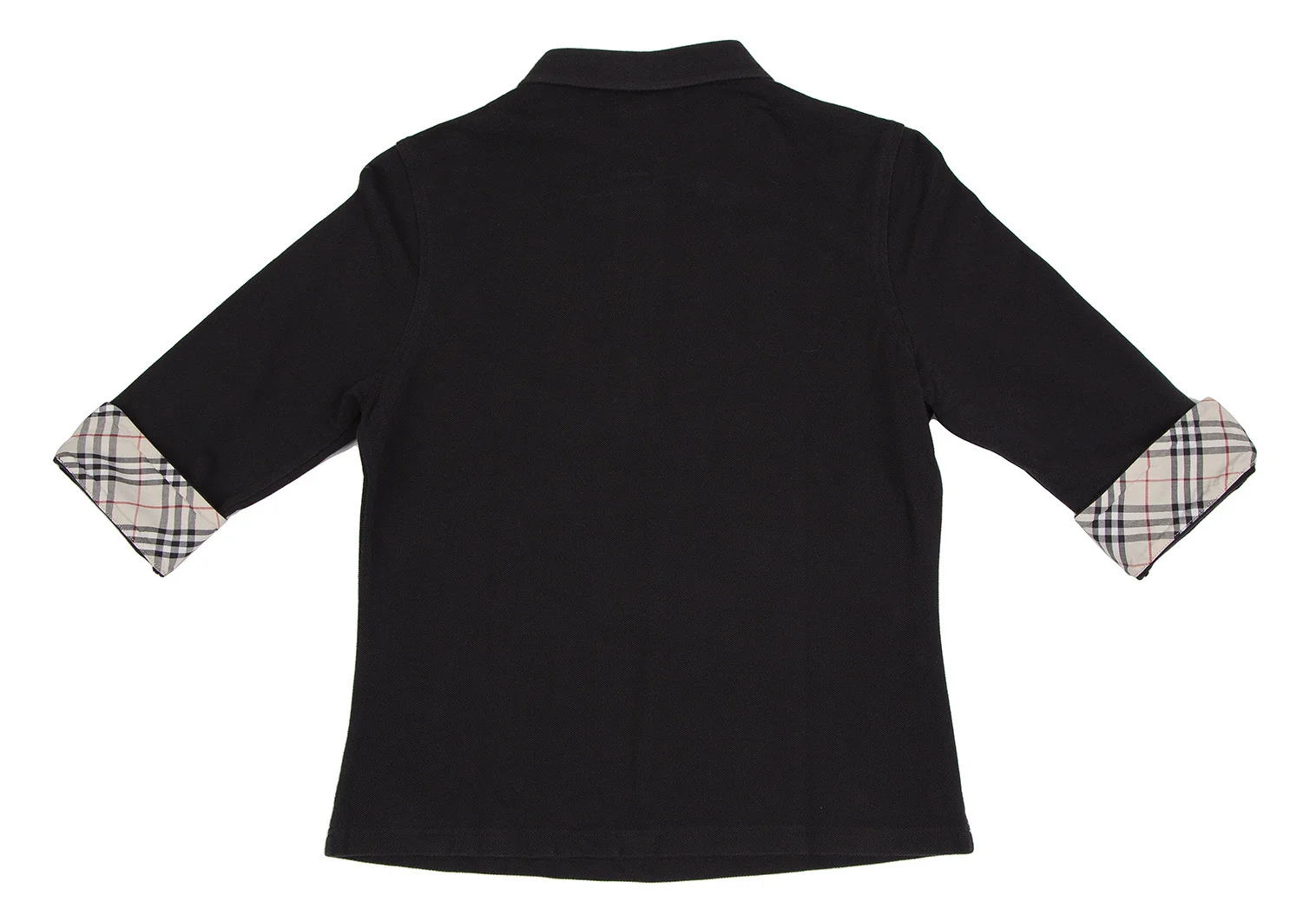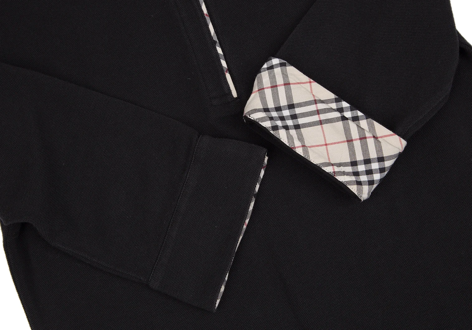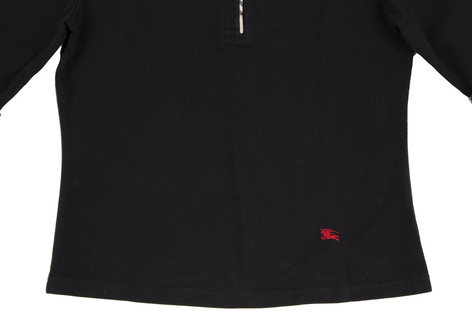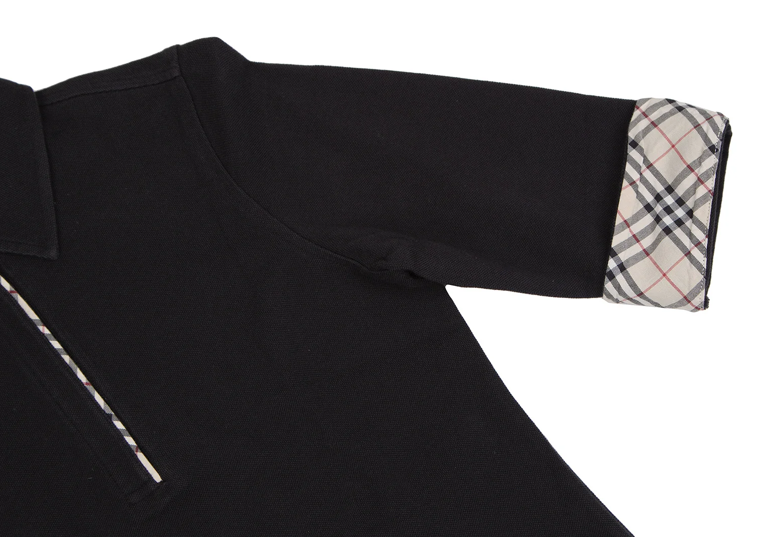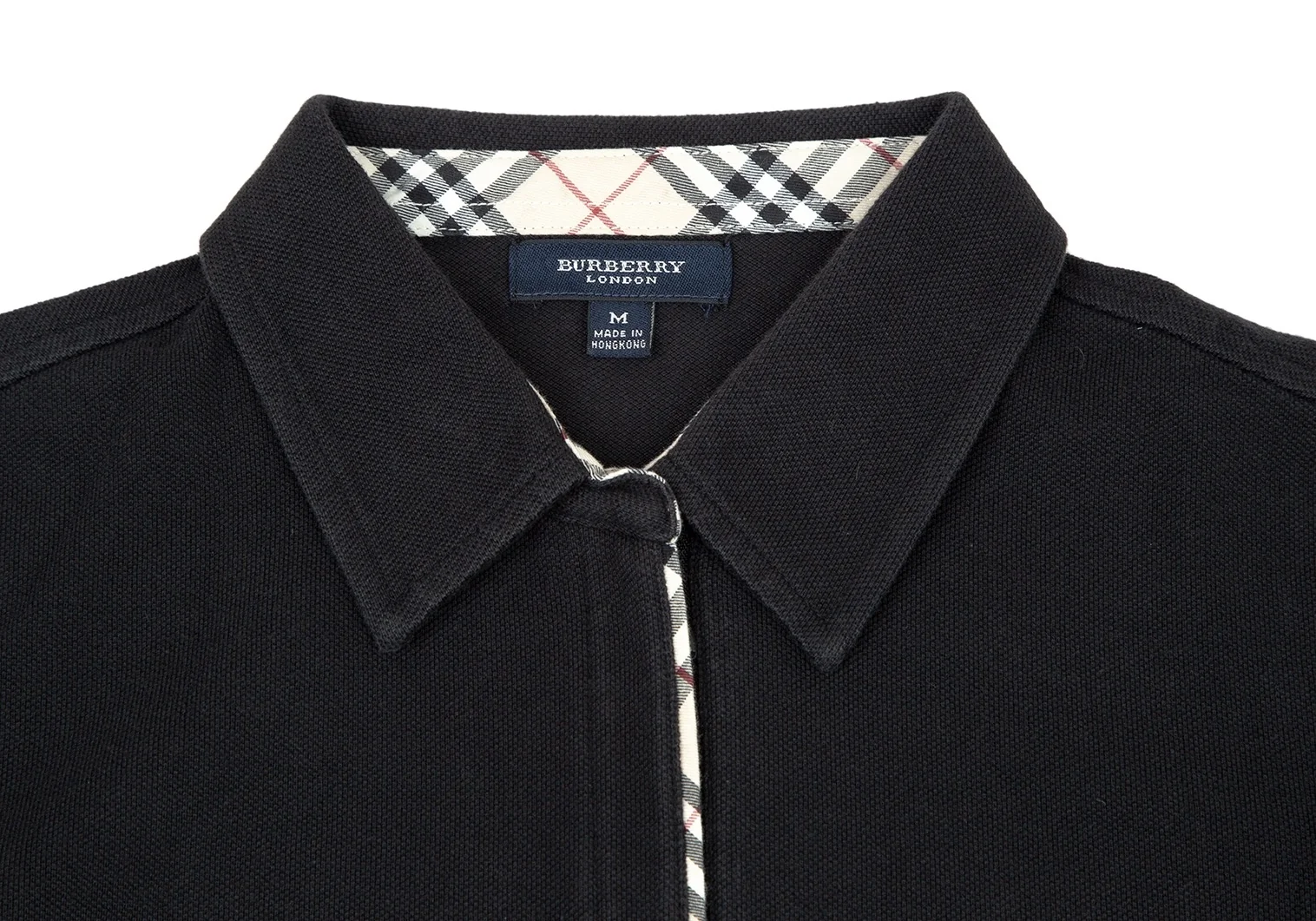 バーバリーロンドンBURBERRY LONDON コットン鹿の子ハーフジップ7部袖ポロシャツ 黒M