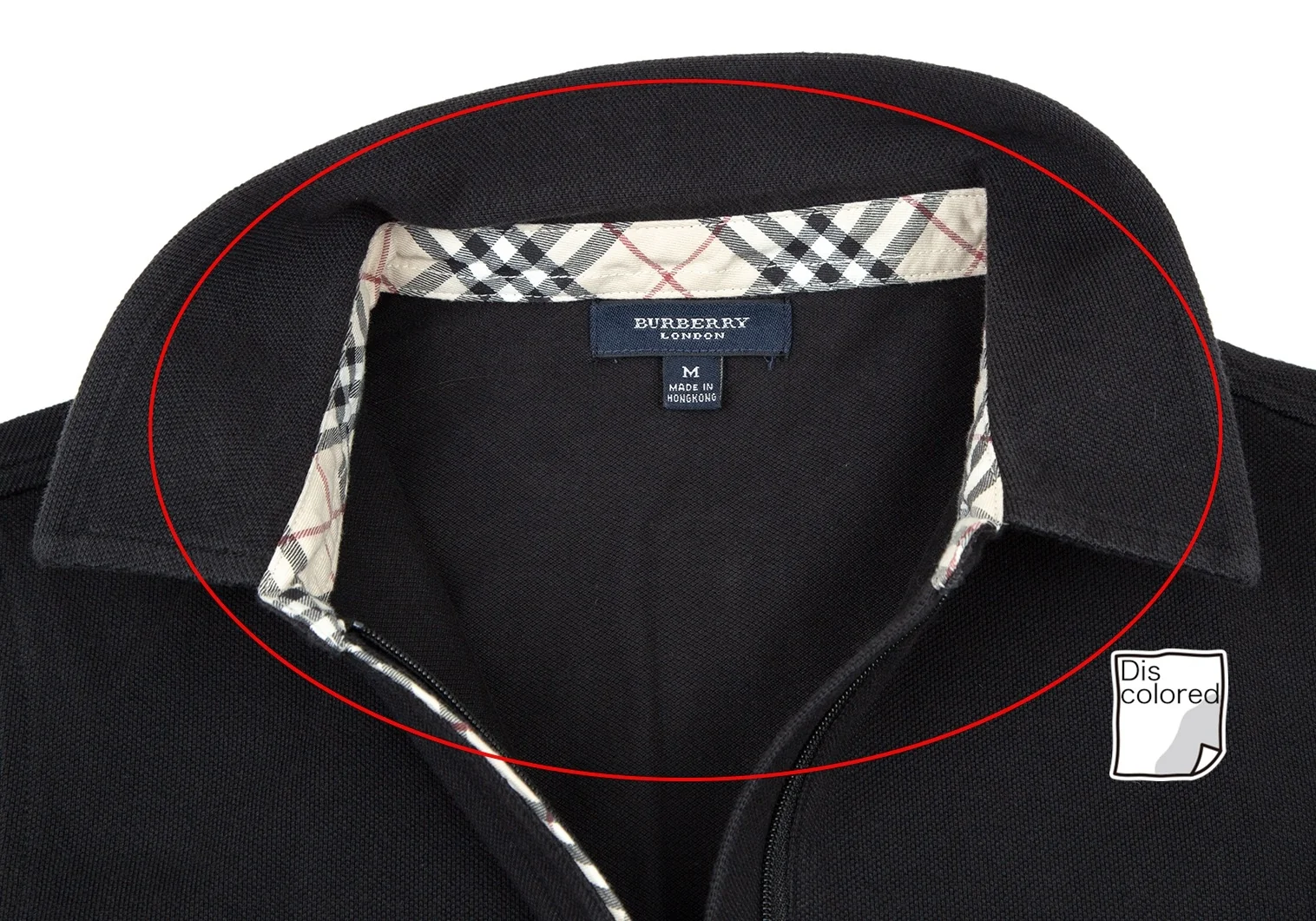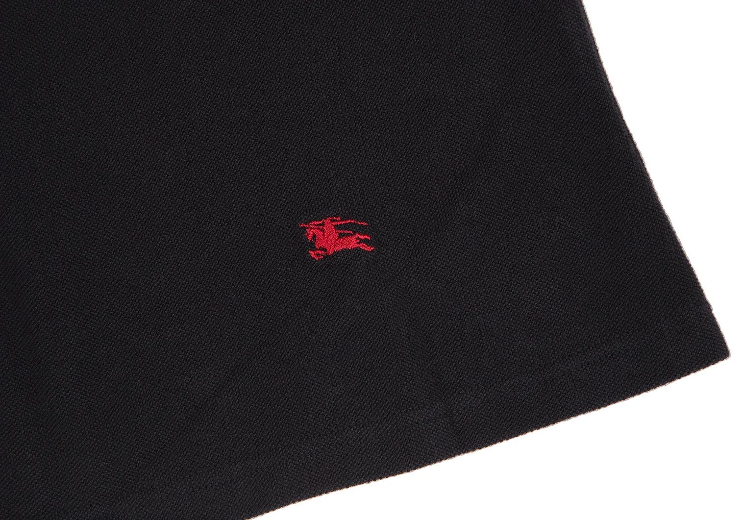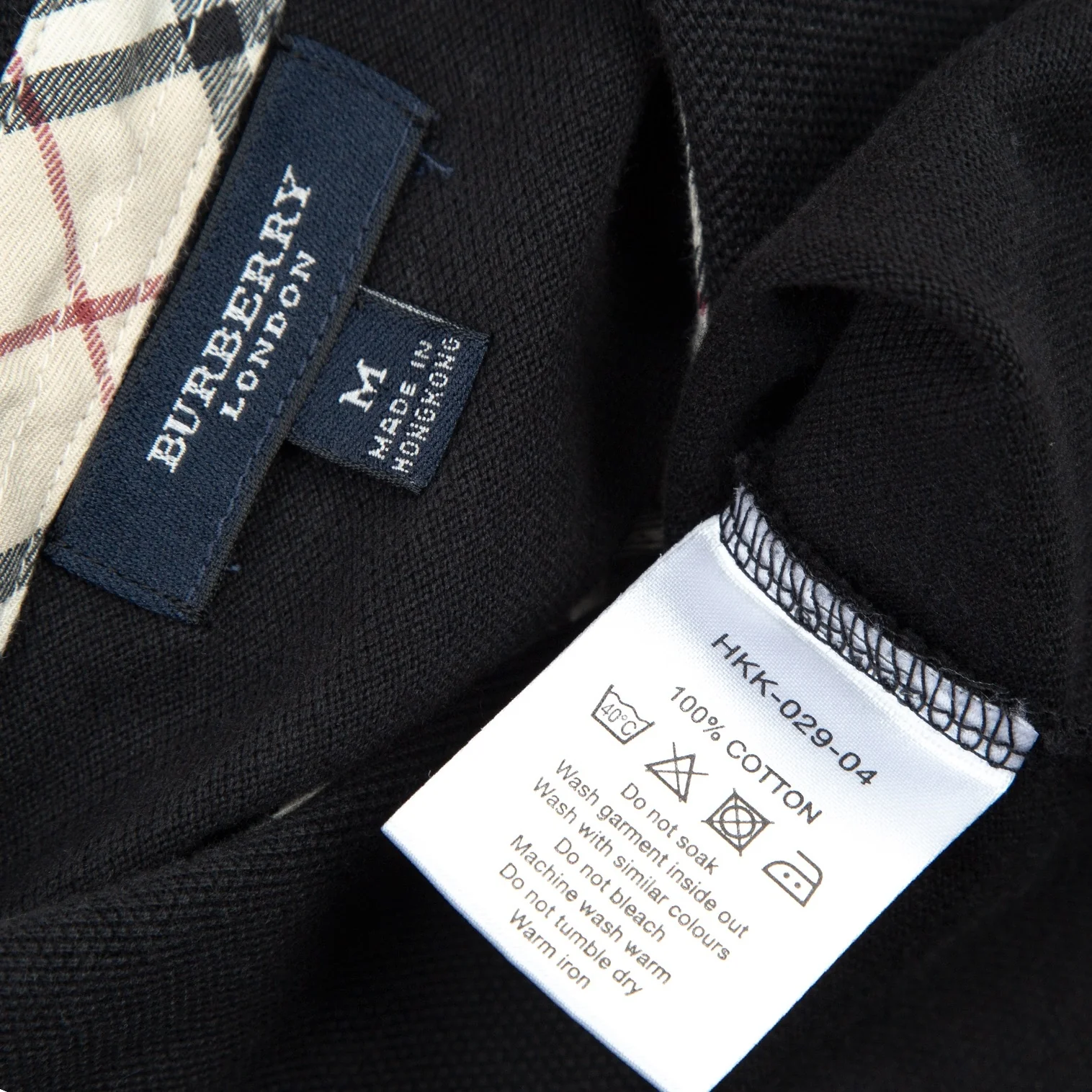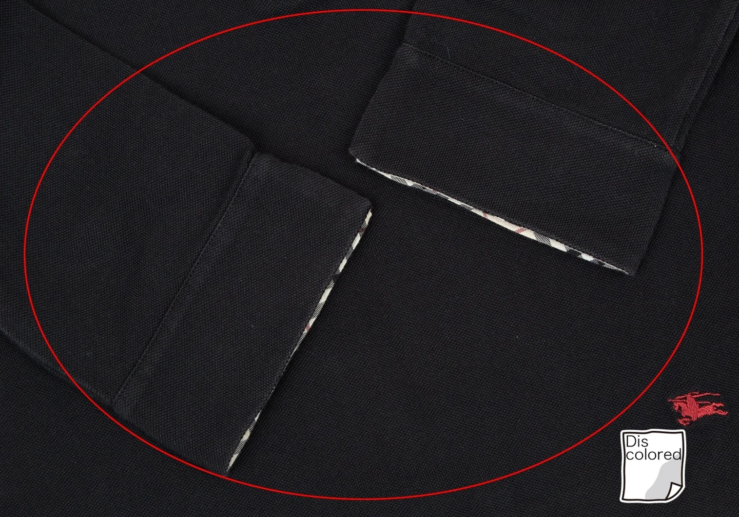 バーバリーロンドンBURBERRY LONDON コットン鹿の子ハーフジップ7部袖ポロシャツ 黒M