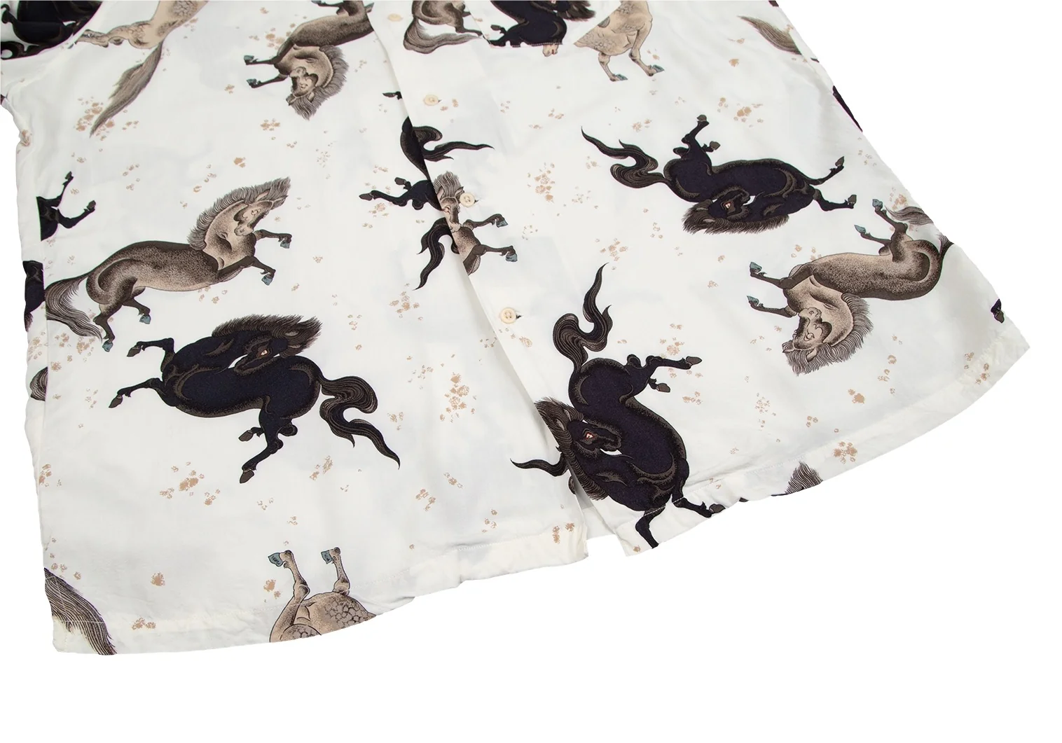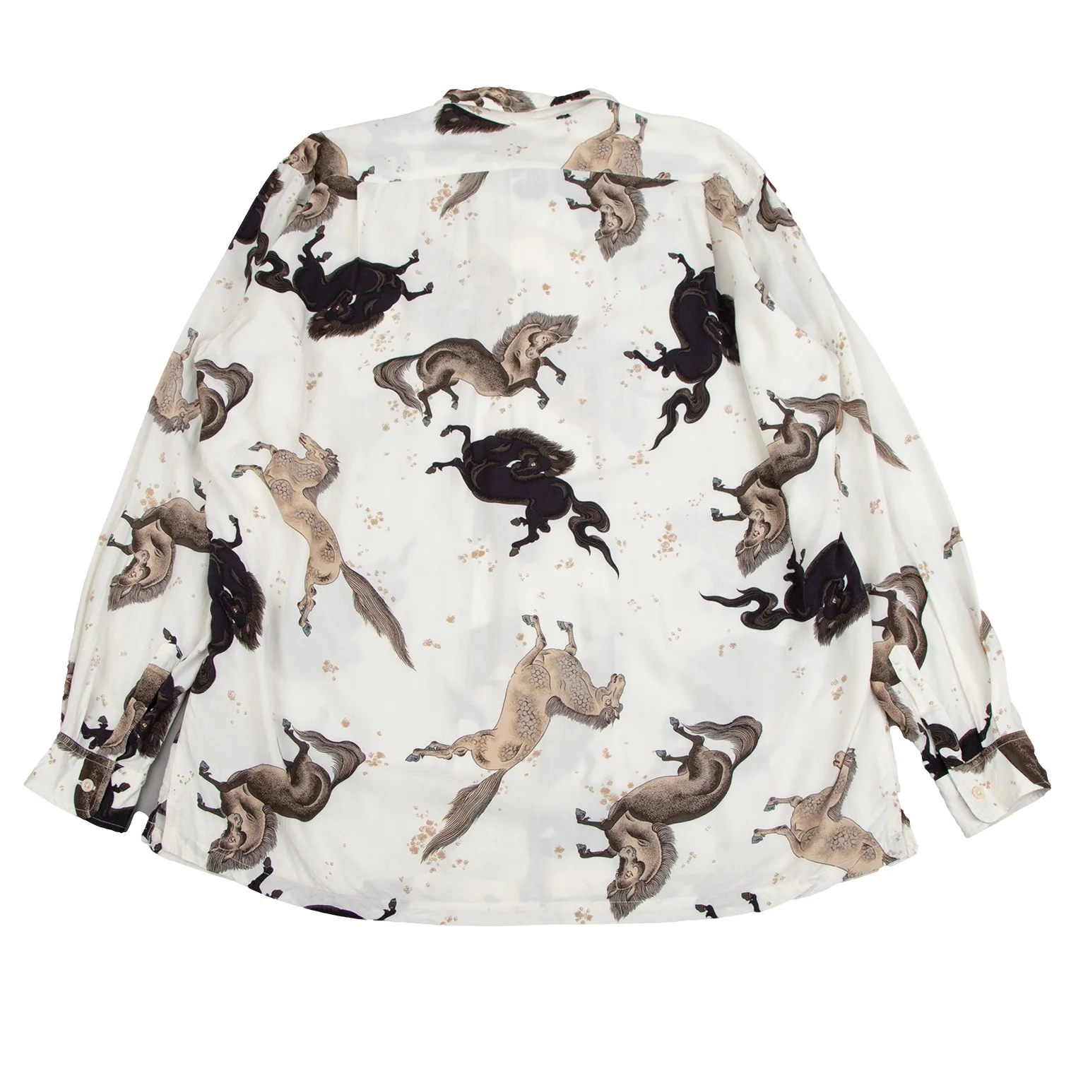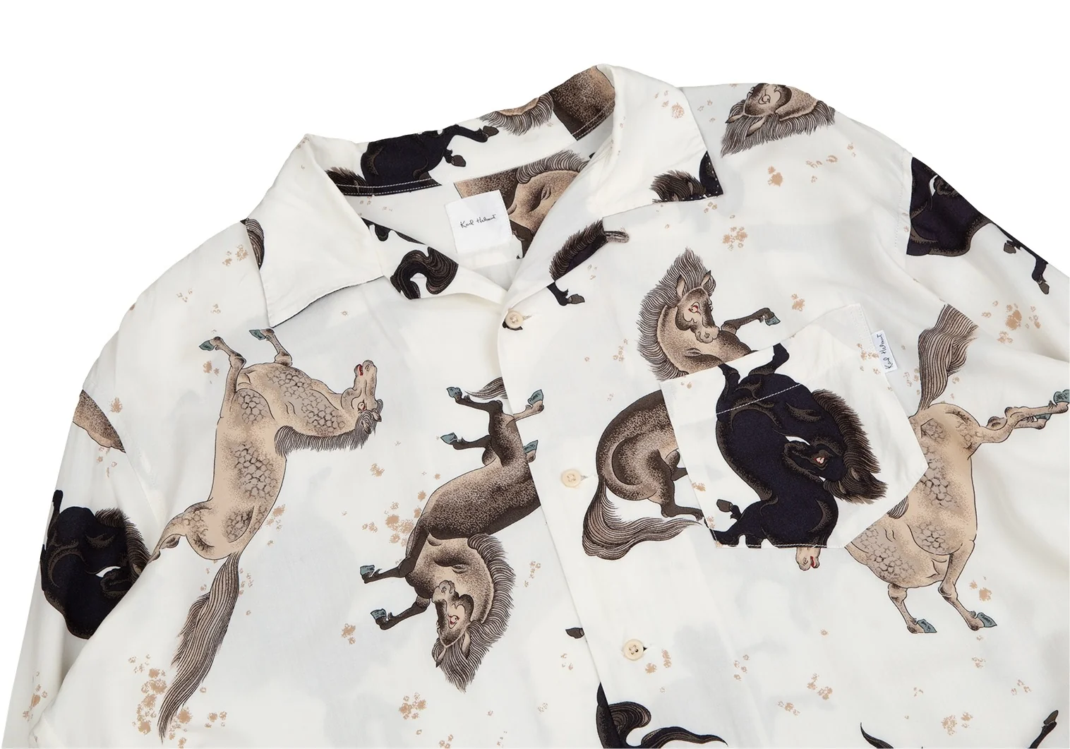カールヘルムKarl Helmut レーヨン馬プリントオープンカラーシャツ 白茶黒M位