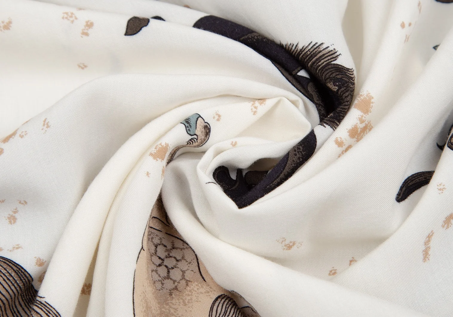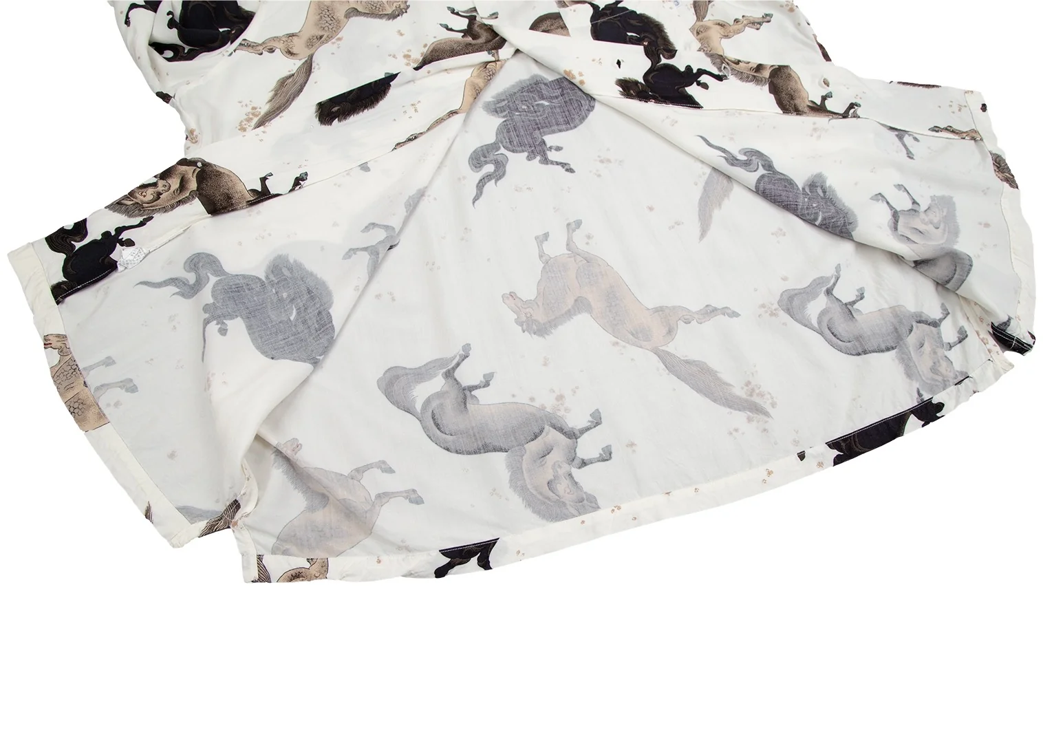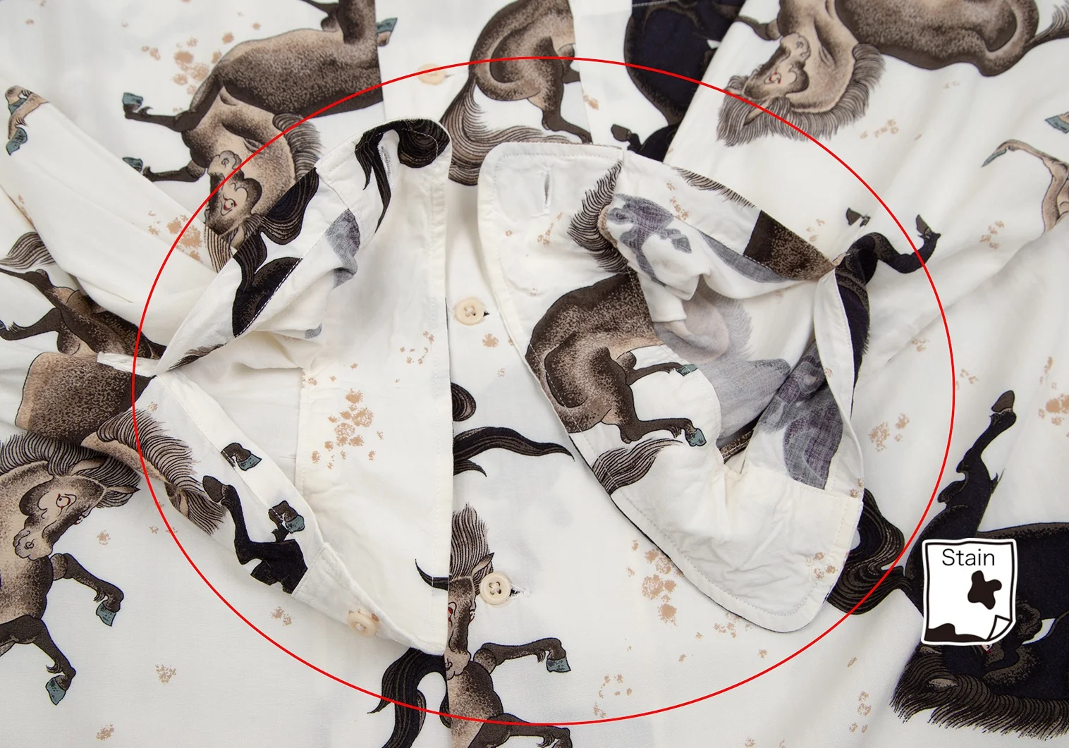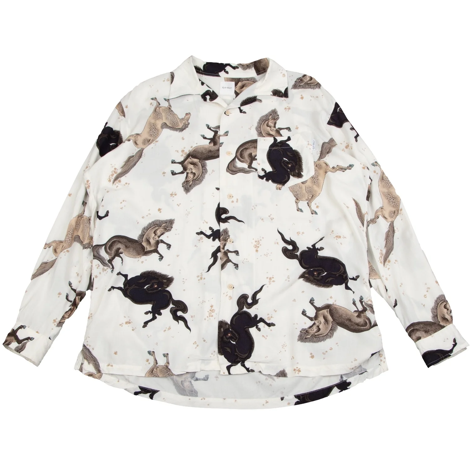 カールヘルムKarl Helmut レーヨン馬プリントオープンカラーシャツ 白茶黒M位