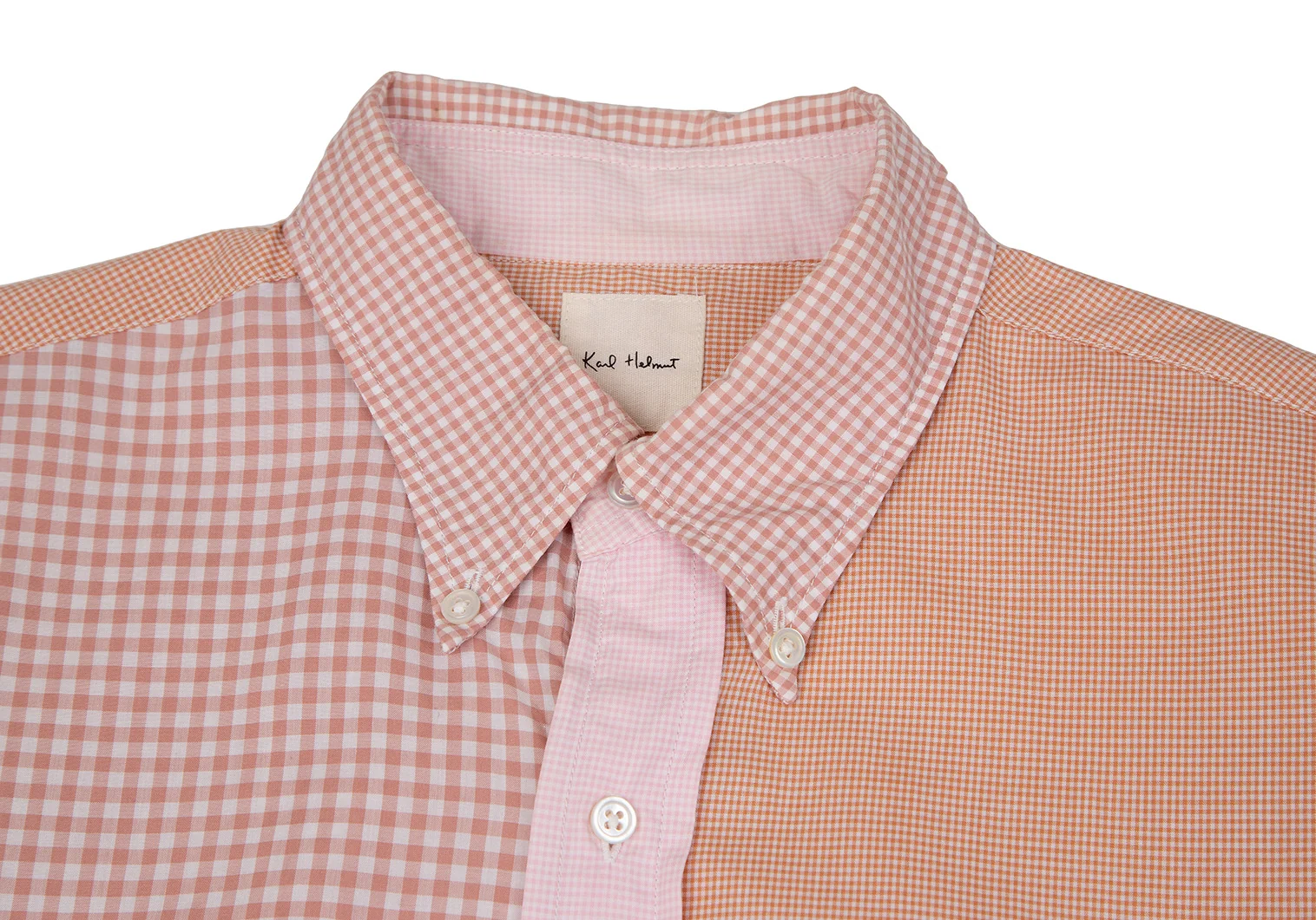 カールヘルムKarl Helmut クレイジーパターンギンガムチェックボタンダウンシャツ 白ピンクM