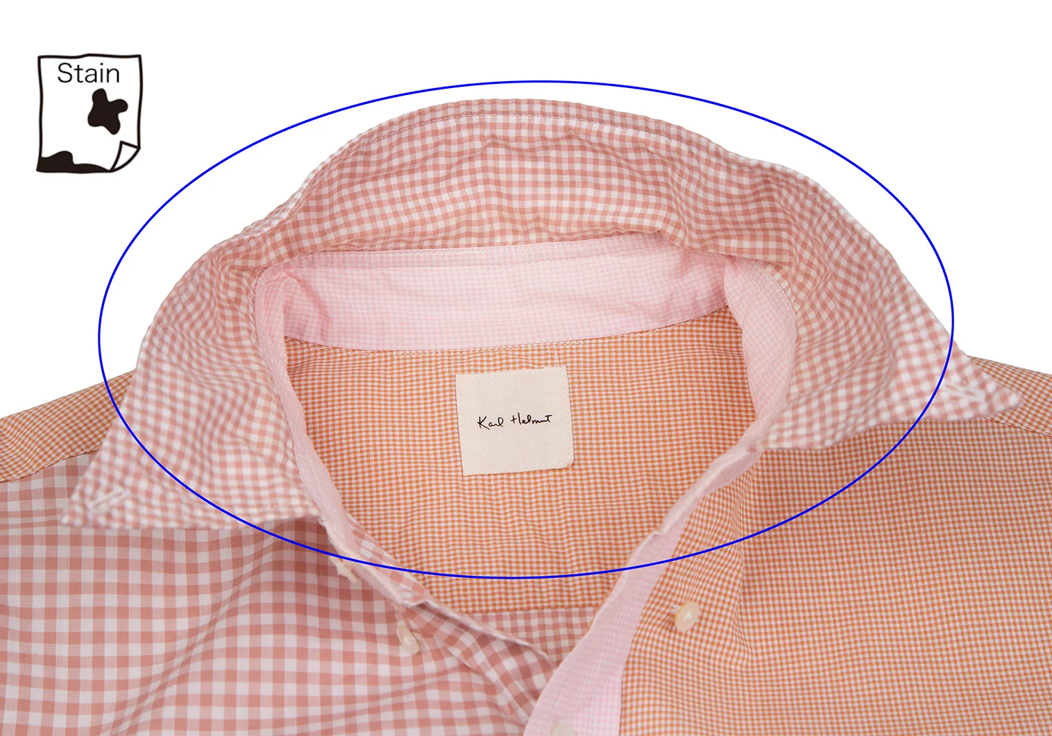 襟裏・袖裏・前立てに薄シミがあります(写真参照)。その他に目立ったシミ、汚れ、ほつれ等はありません。クリーニング済み