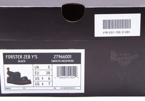 ワイズ×ドクターマーチンY's× Dr Martens フォースターForster Zeb Y's レザーストラップシャークソールサンダル 黒UK5(24位)