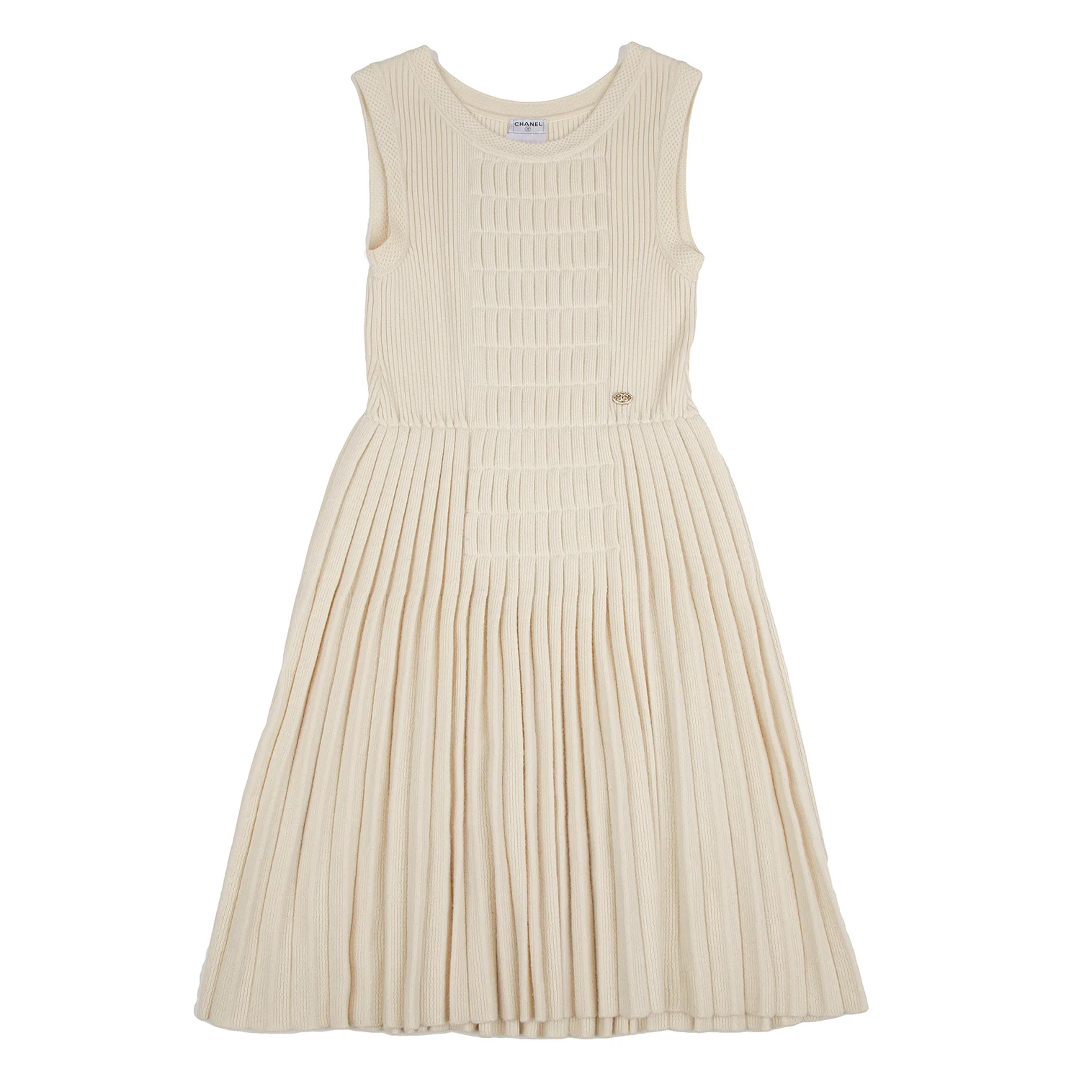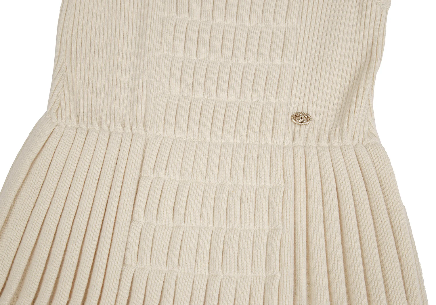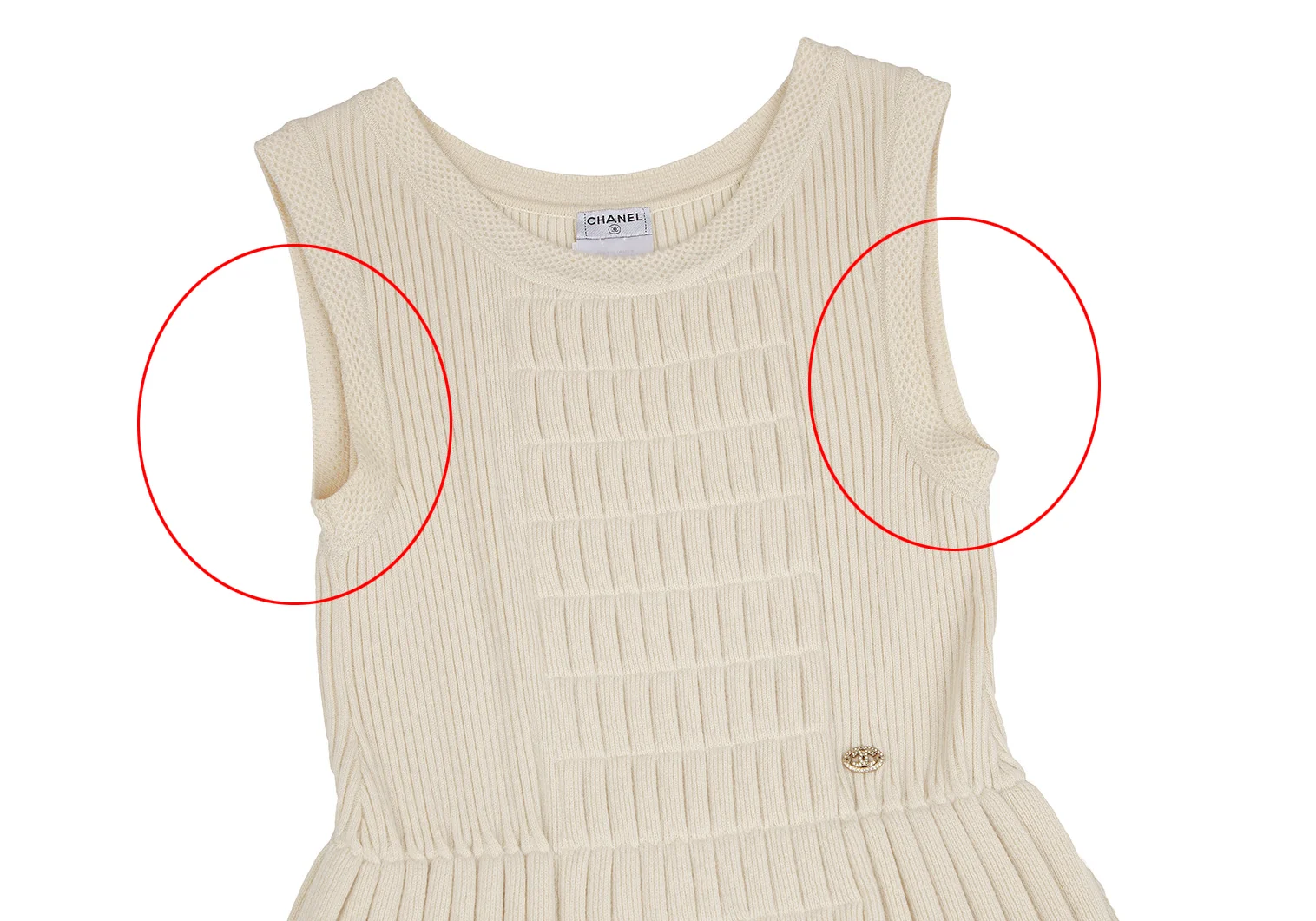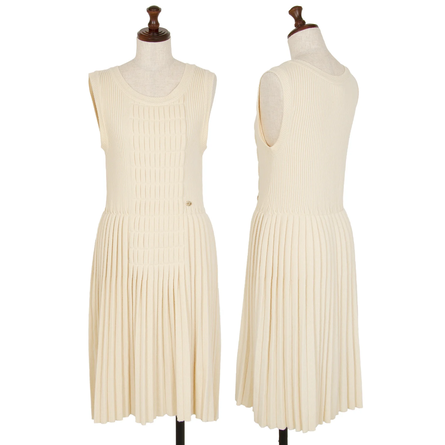 シャネルCHANEL プリーツ切替リブニットノースリーブワンピース アイボリー38