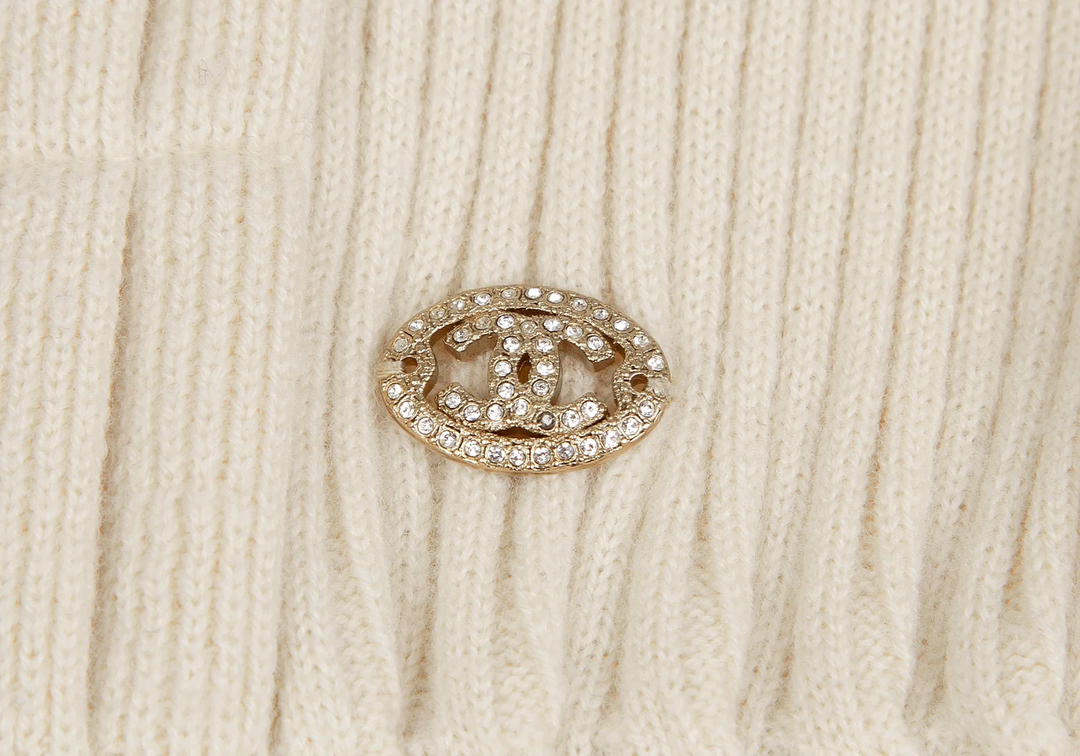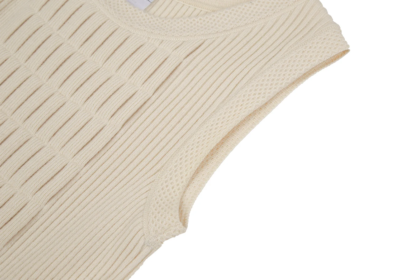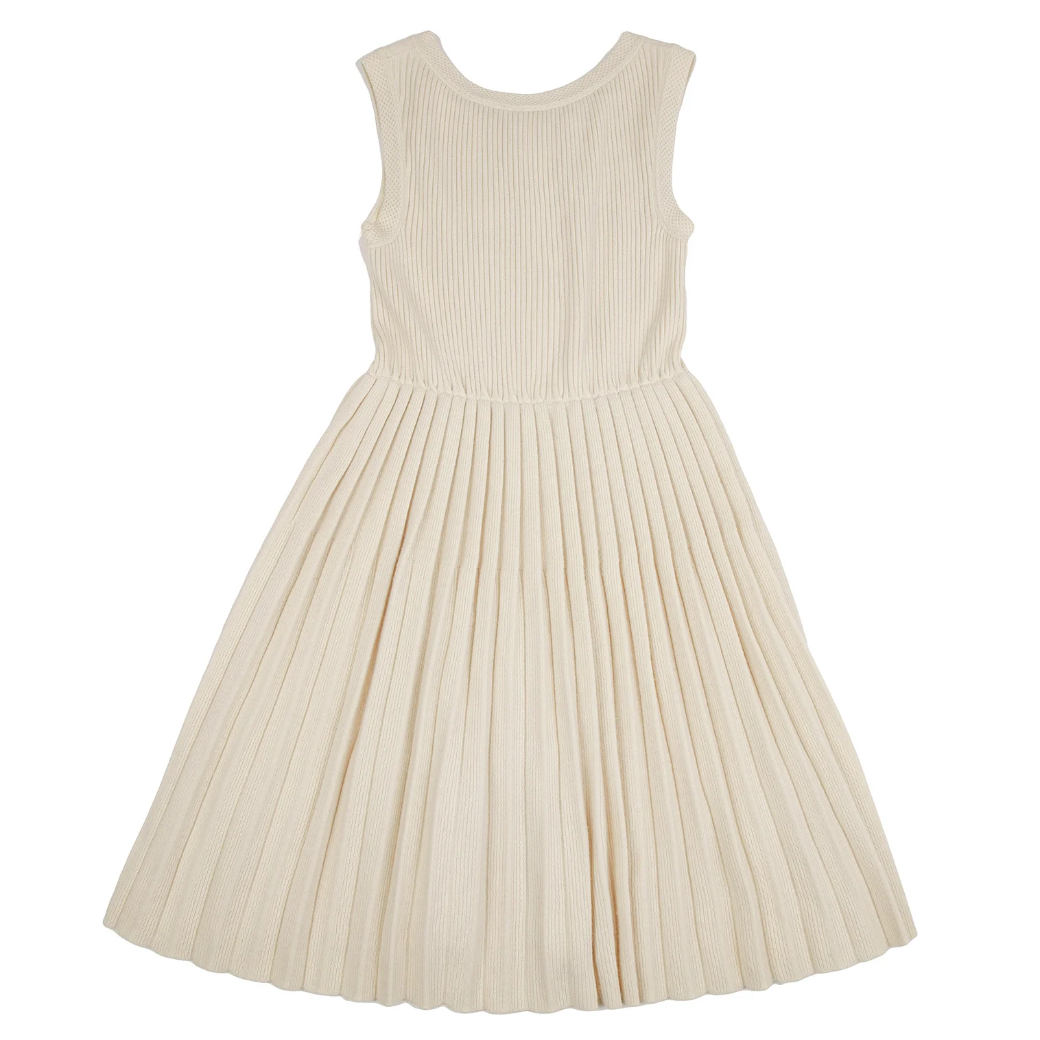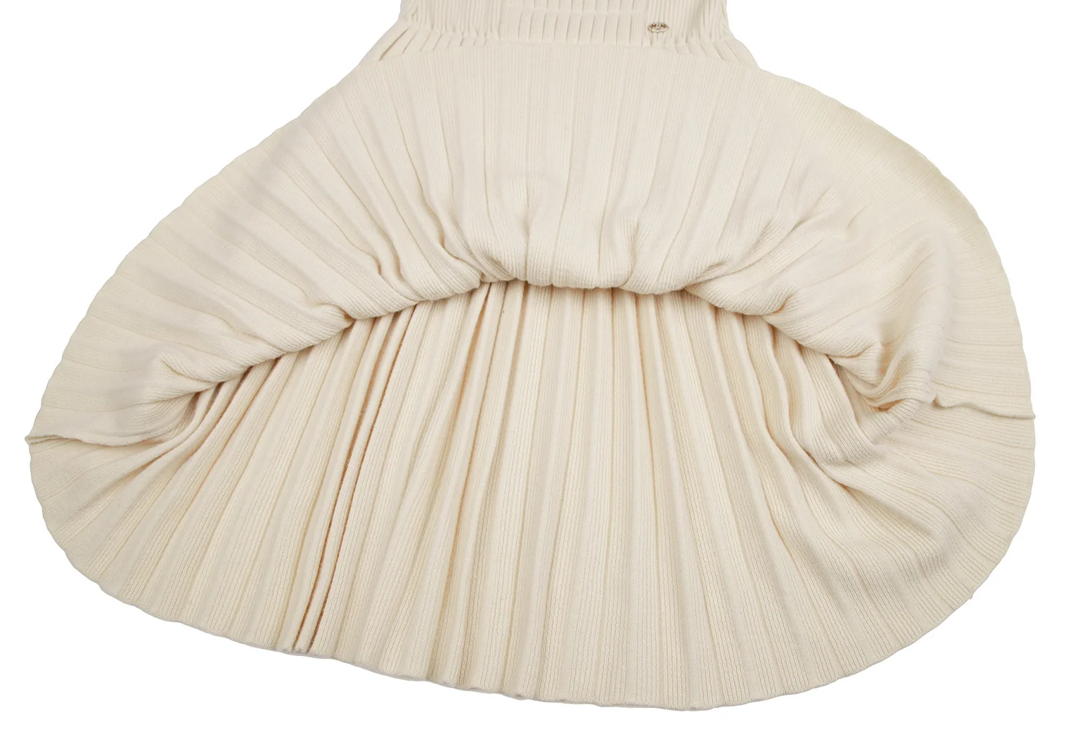 シャネルCHANEL プリーツ切替リブニットノースリーブワンピース アイボリー38
