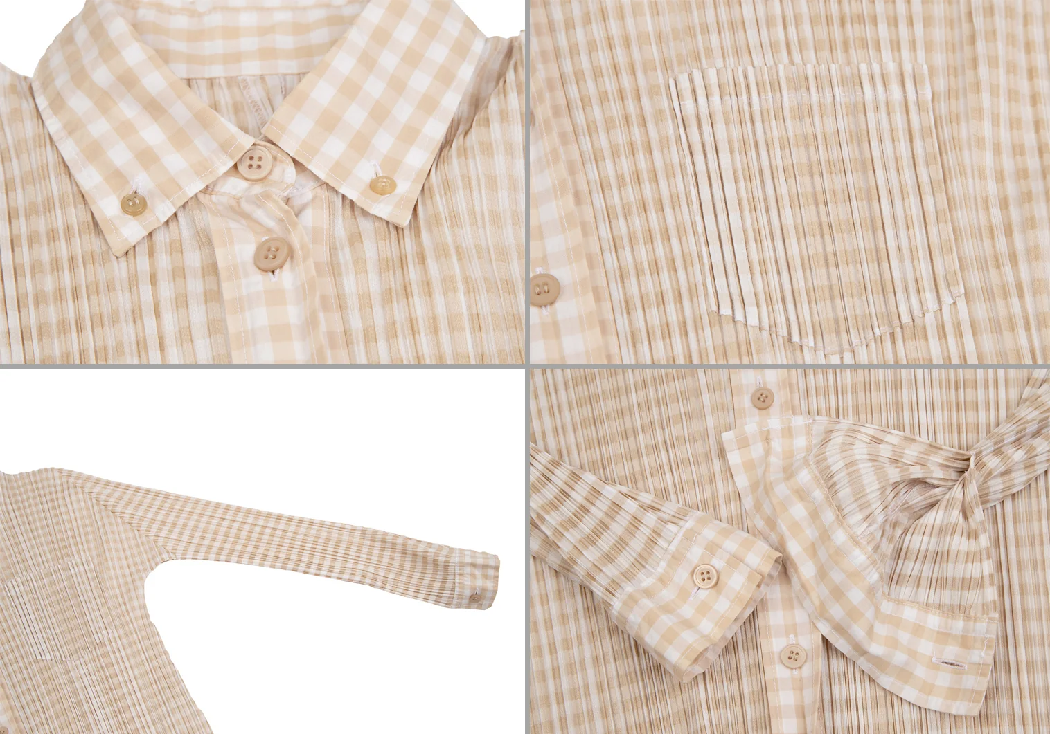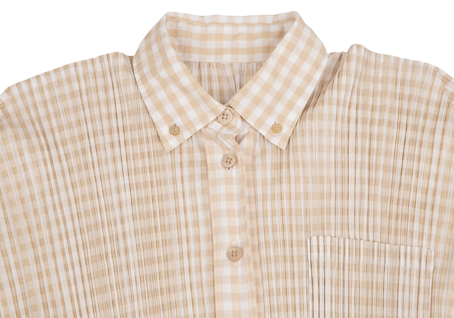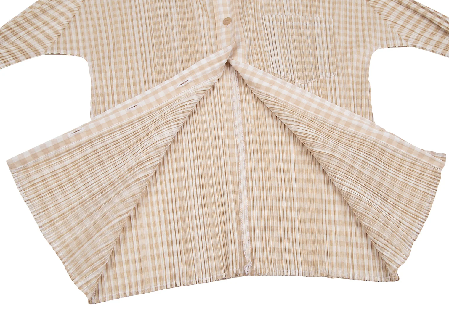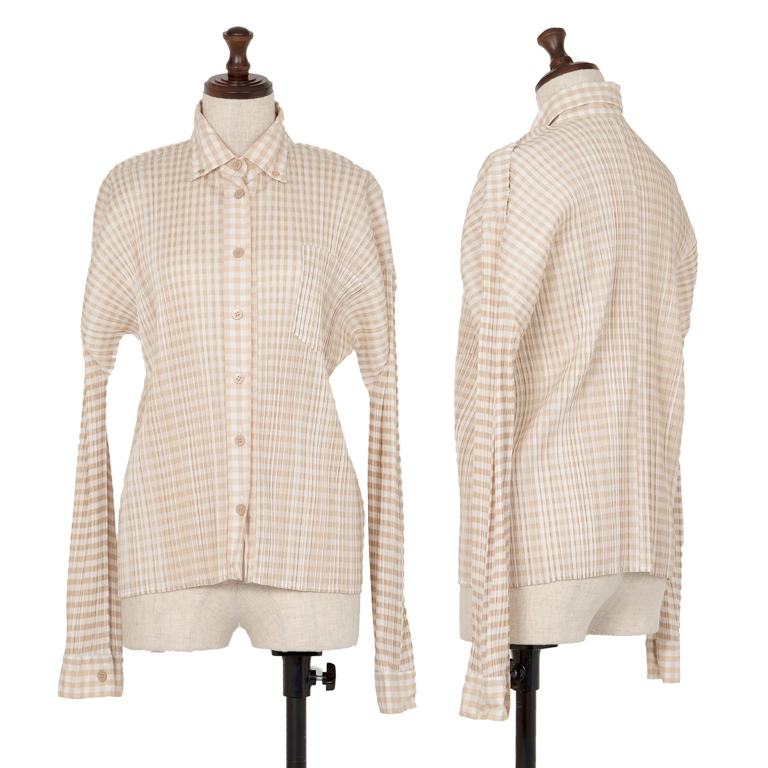 プリーツプリーズPLEATS PLEASE ギンガムチェックセットアップスーツ ベージュ4・2