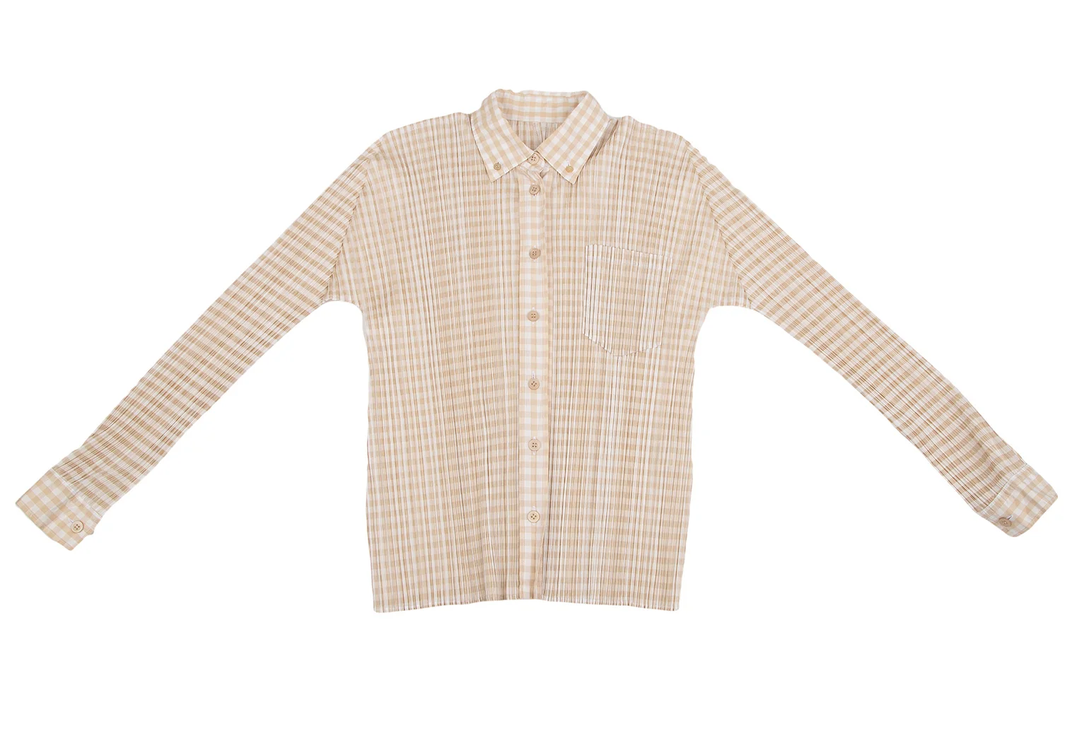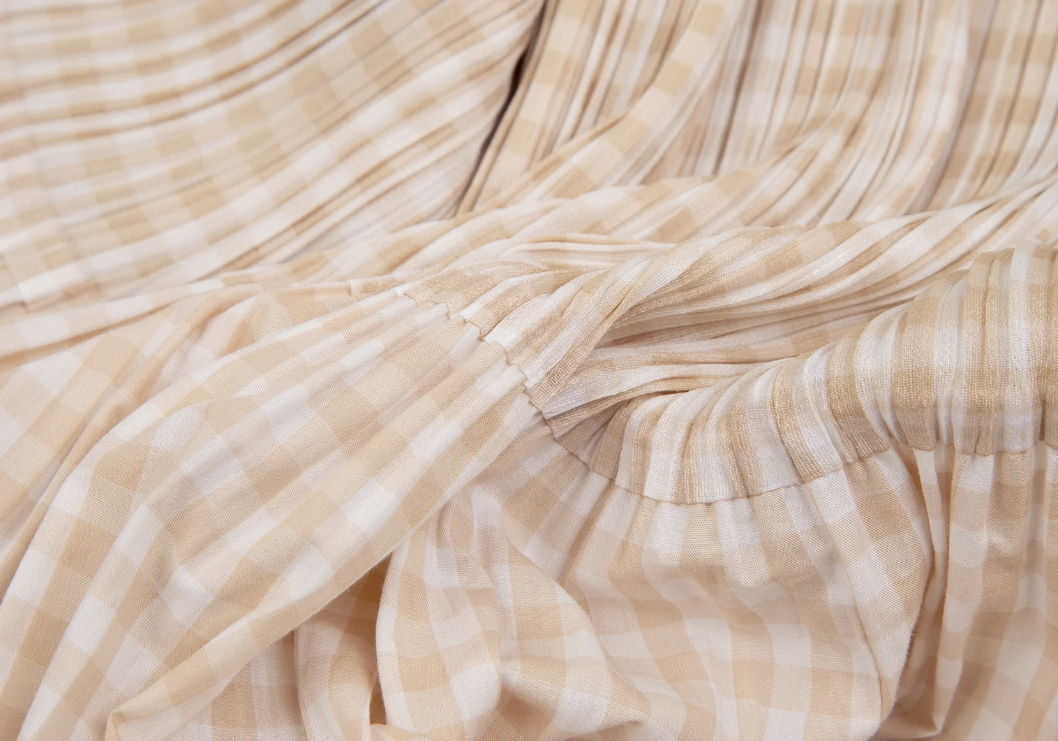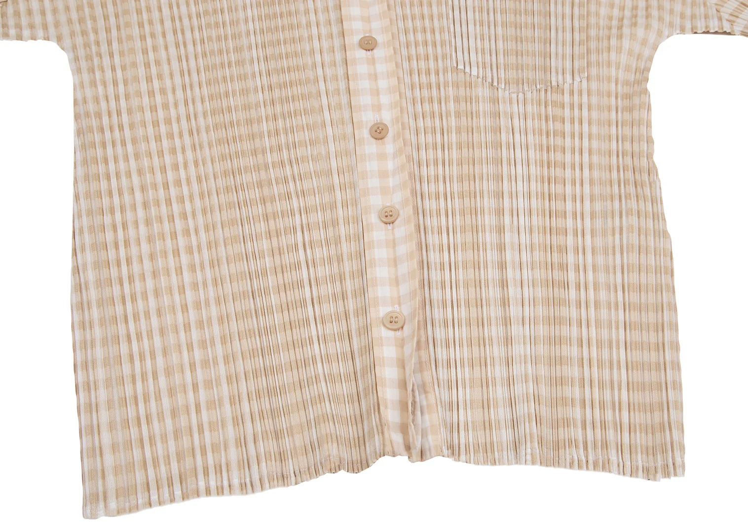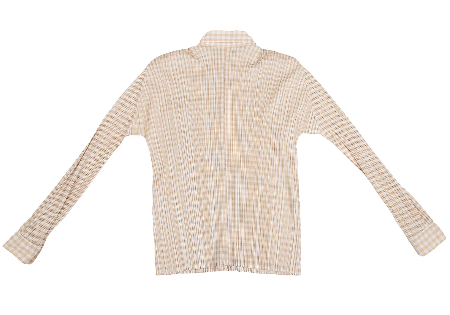 プリーツプリーズPLEATS PLEASE ギンガムチェックセットアップスーツ ベージュ4・2