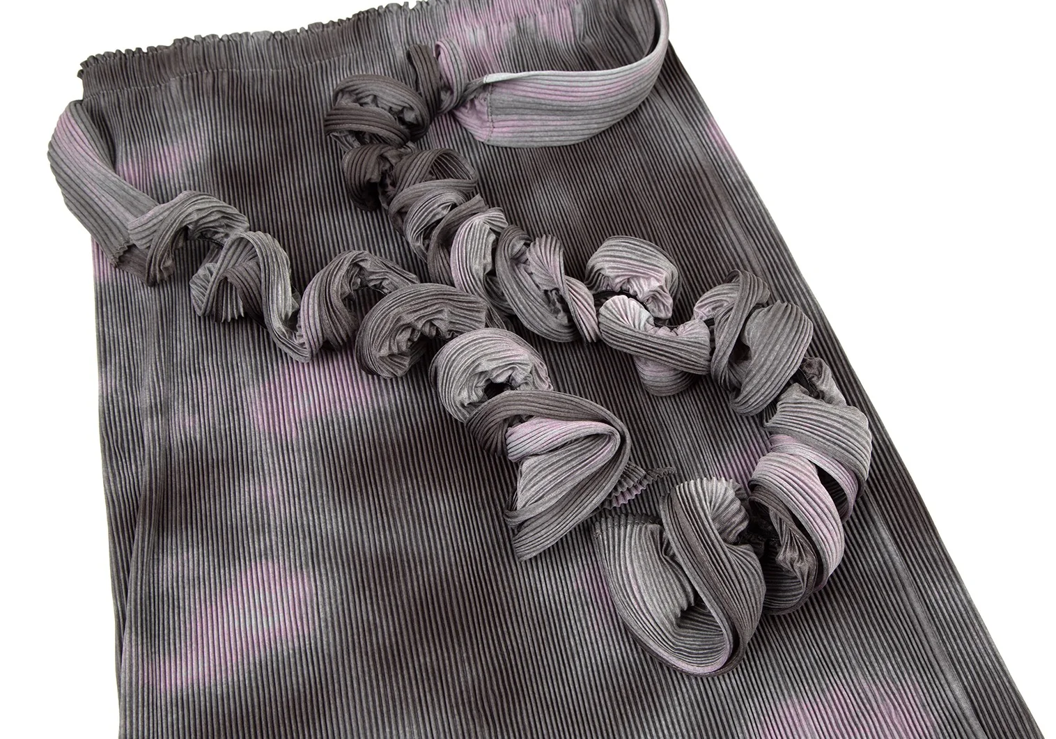 イッセイミヤケ フェットISSEY MIYAKE FETE プリーツねじりベルトグラデーションスカート グレー紫2