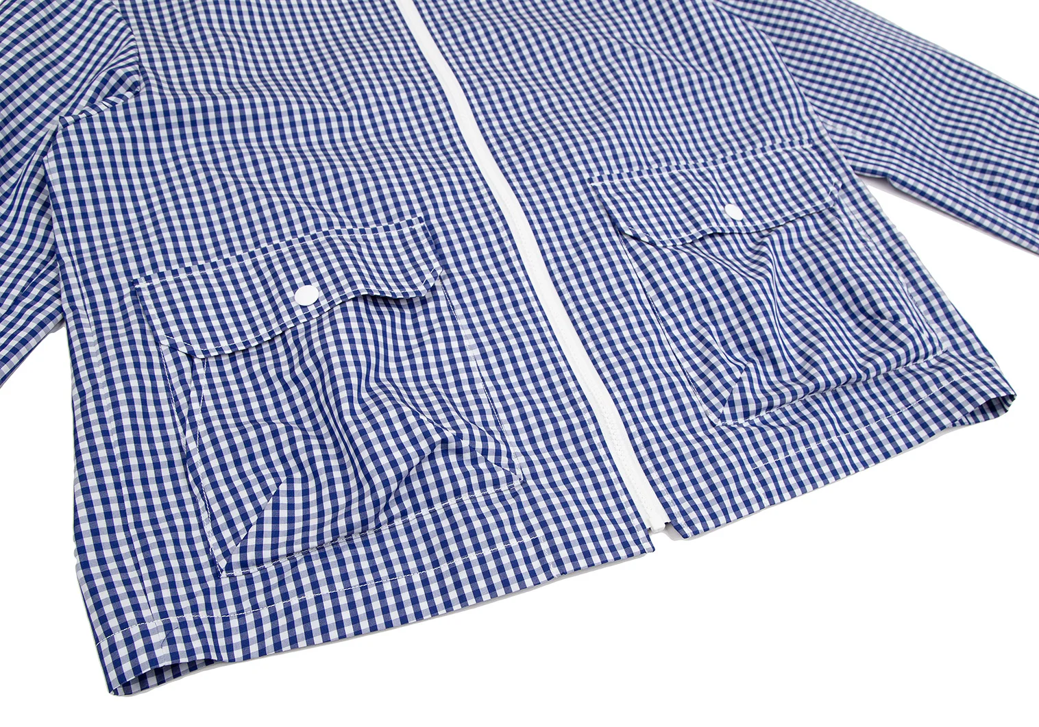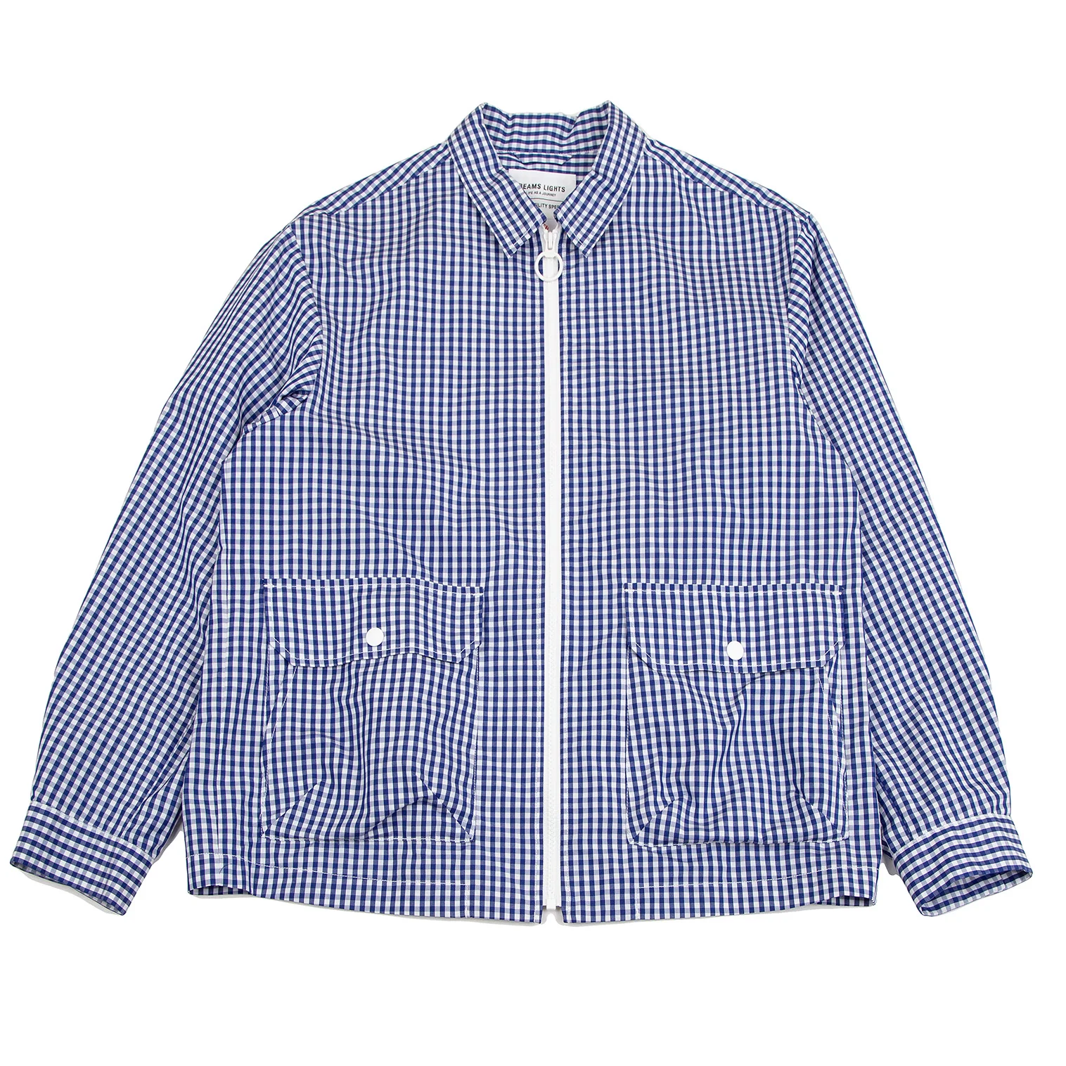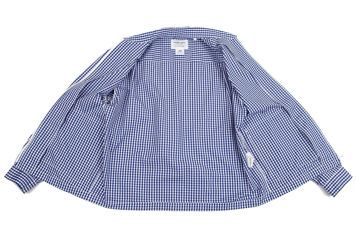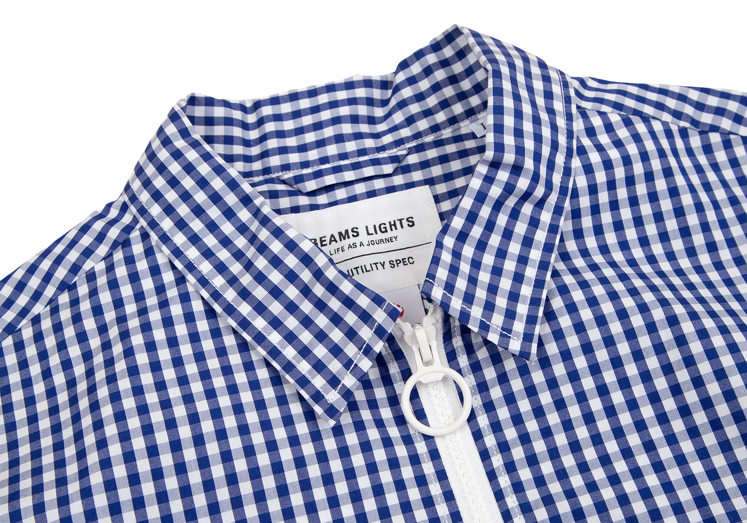 ビームスBEAMS IGHTS Outlastファブリックコットンポリリングジップギンガムチェックシャツジャケット 青白L