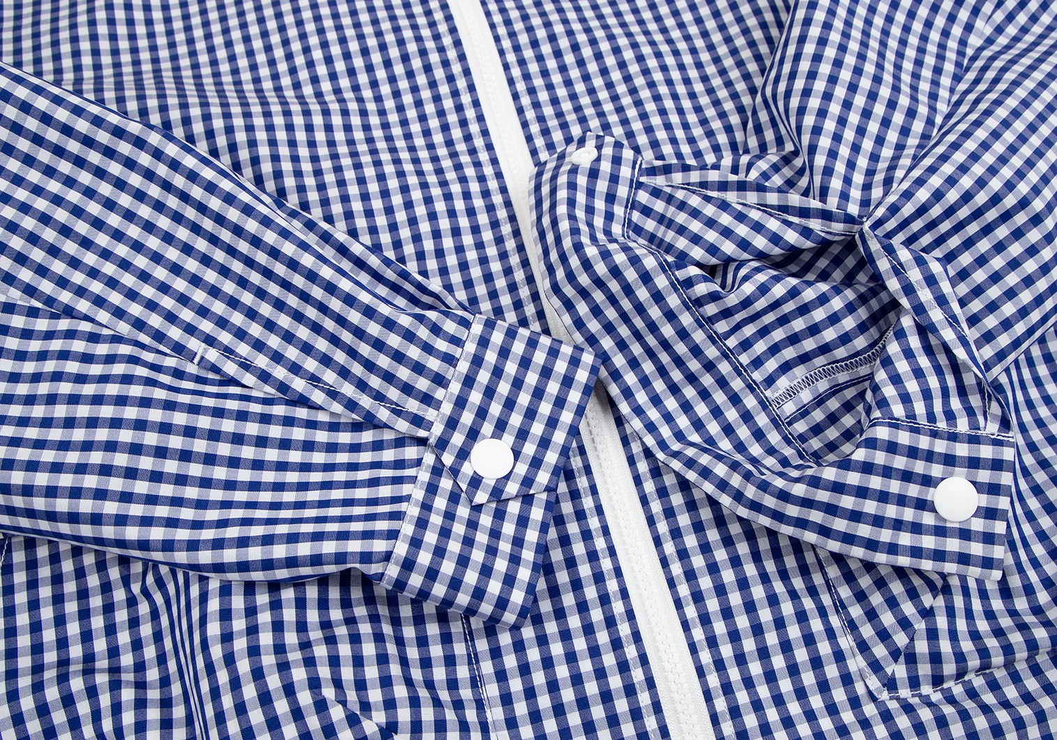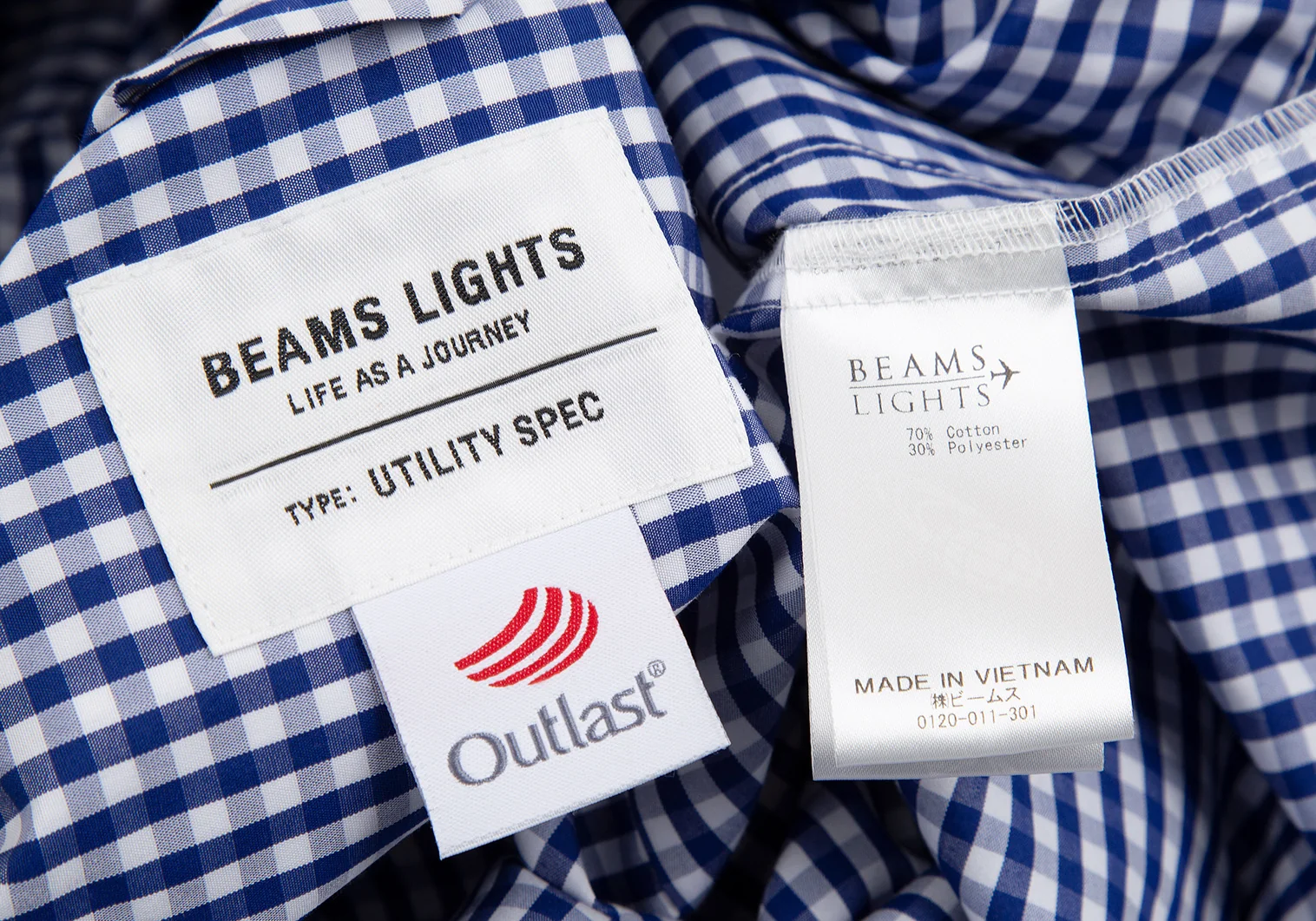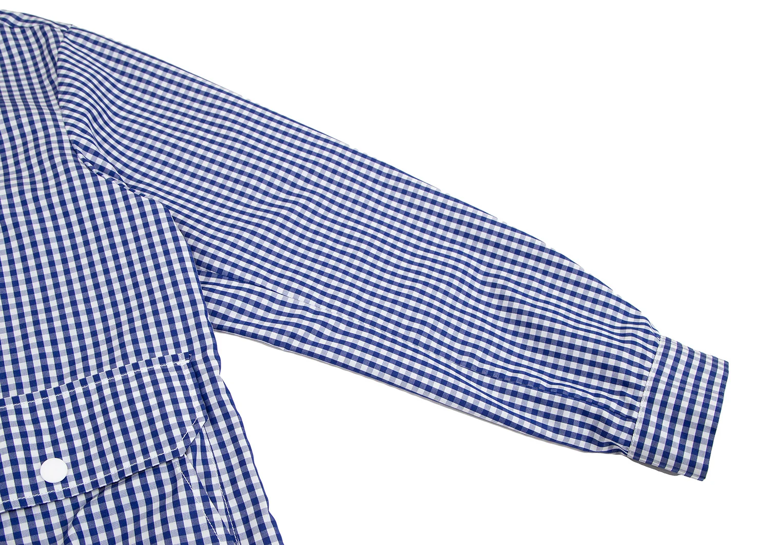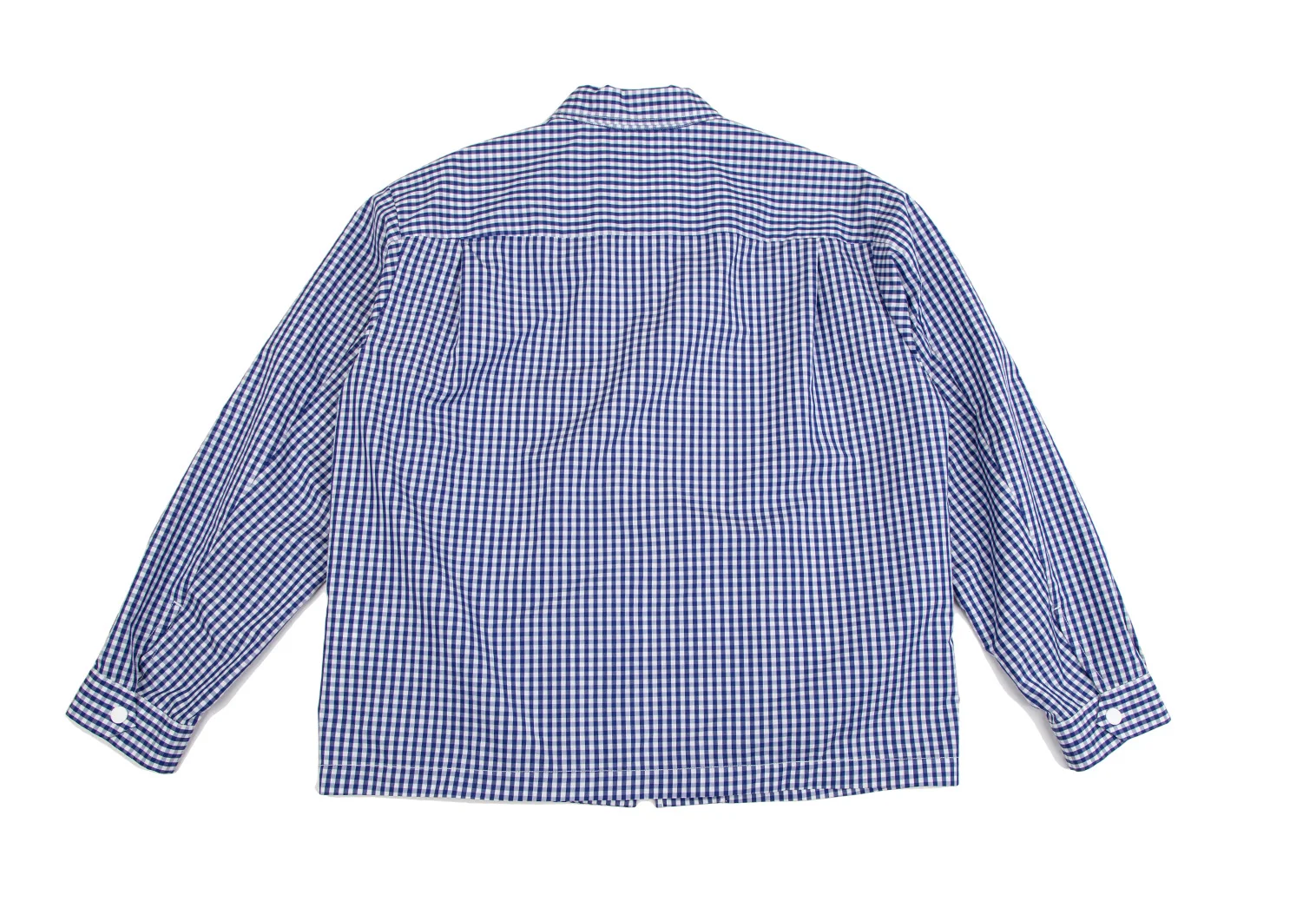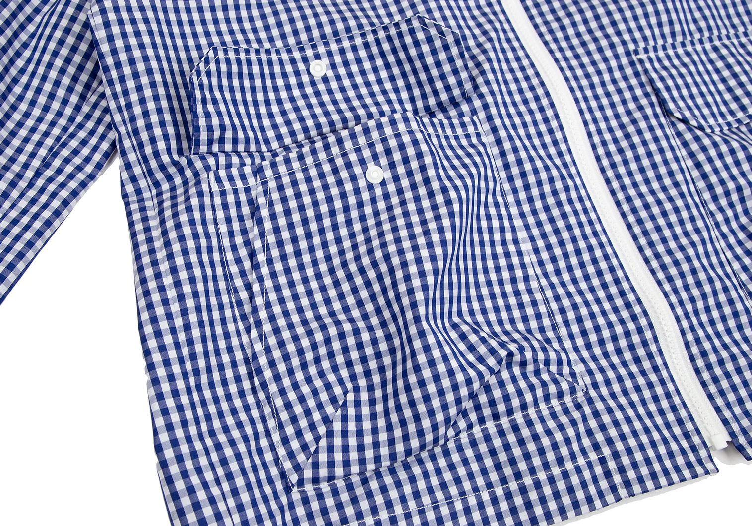 ビームスBEAMS IGHTS Outlastファブリックコットンポリリングジップギンガムチェックシャツジャケット 青白L