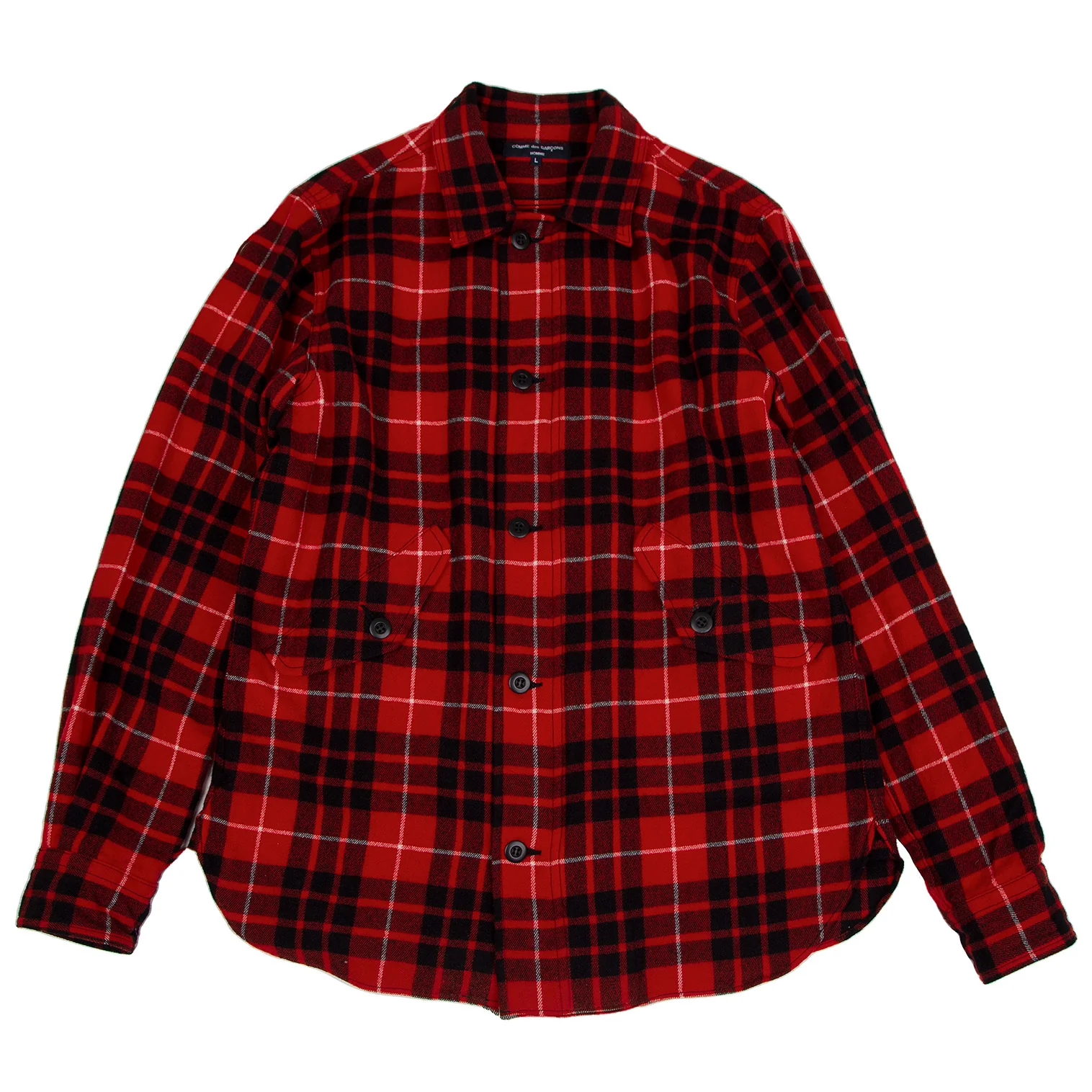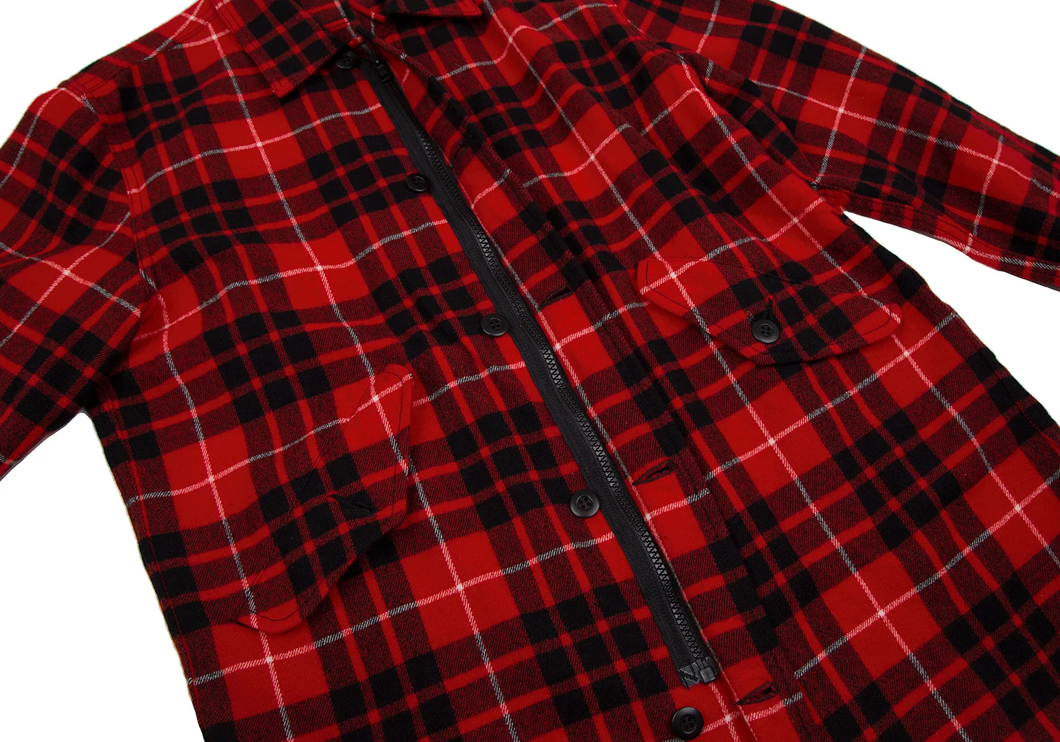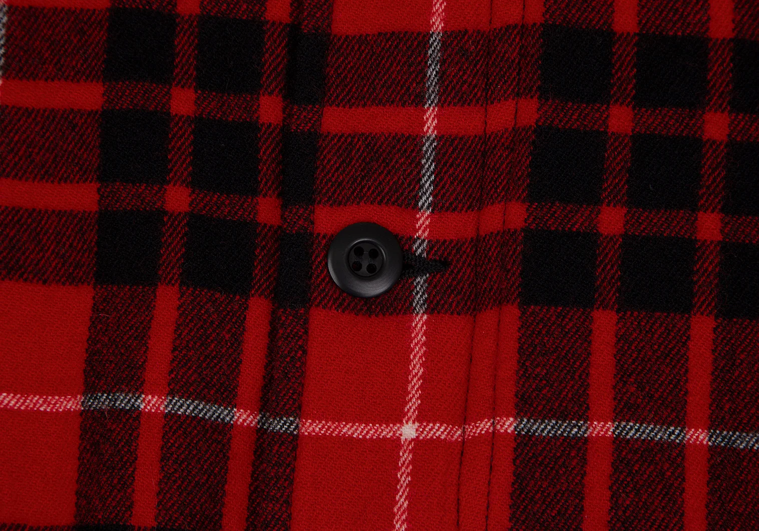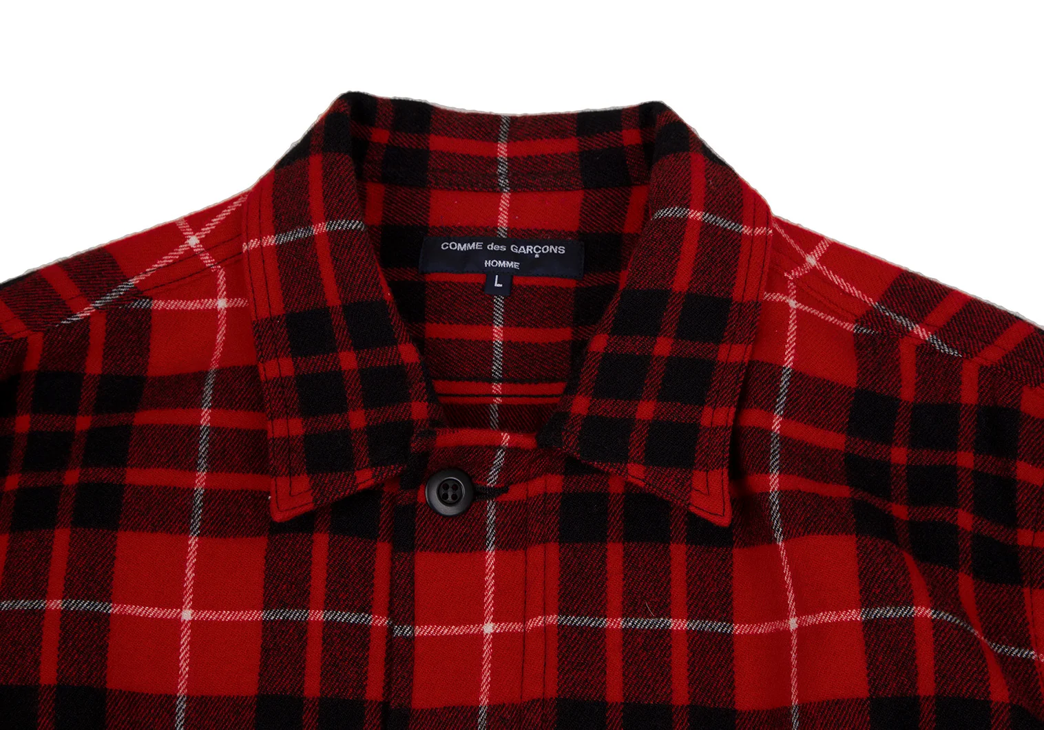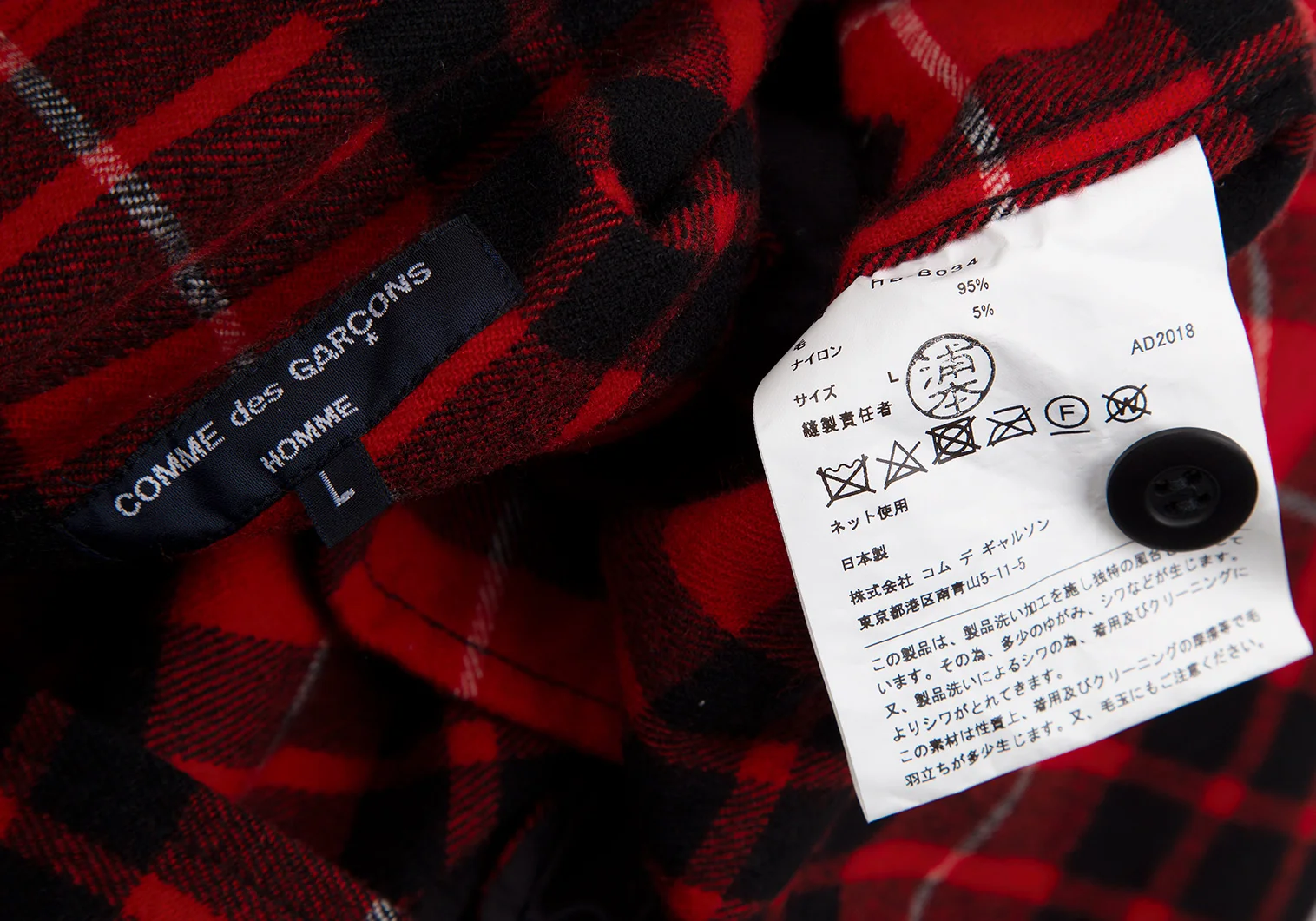 コムデギャルソン オムCOMME des GARCONS HOMME ウールナイロン製品洗いジップアップチェックネルシャツ 赤黒L