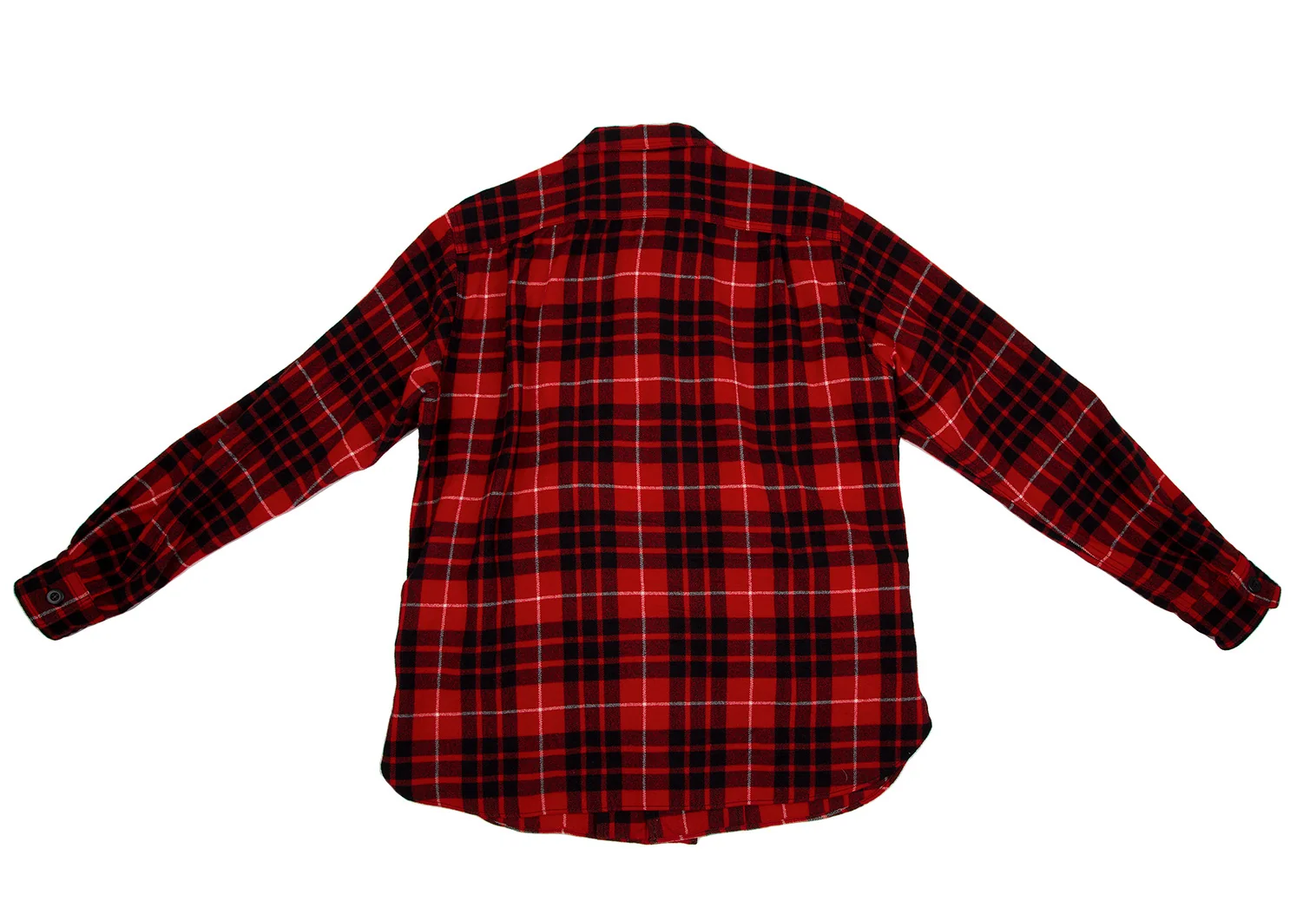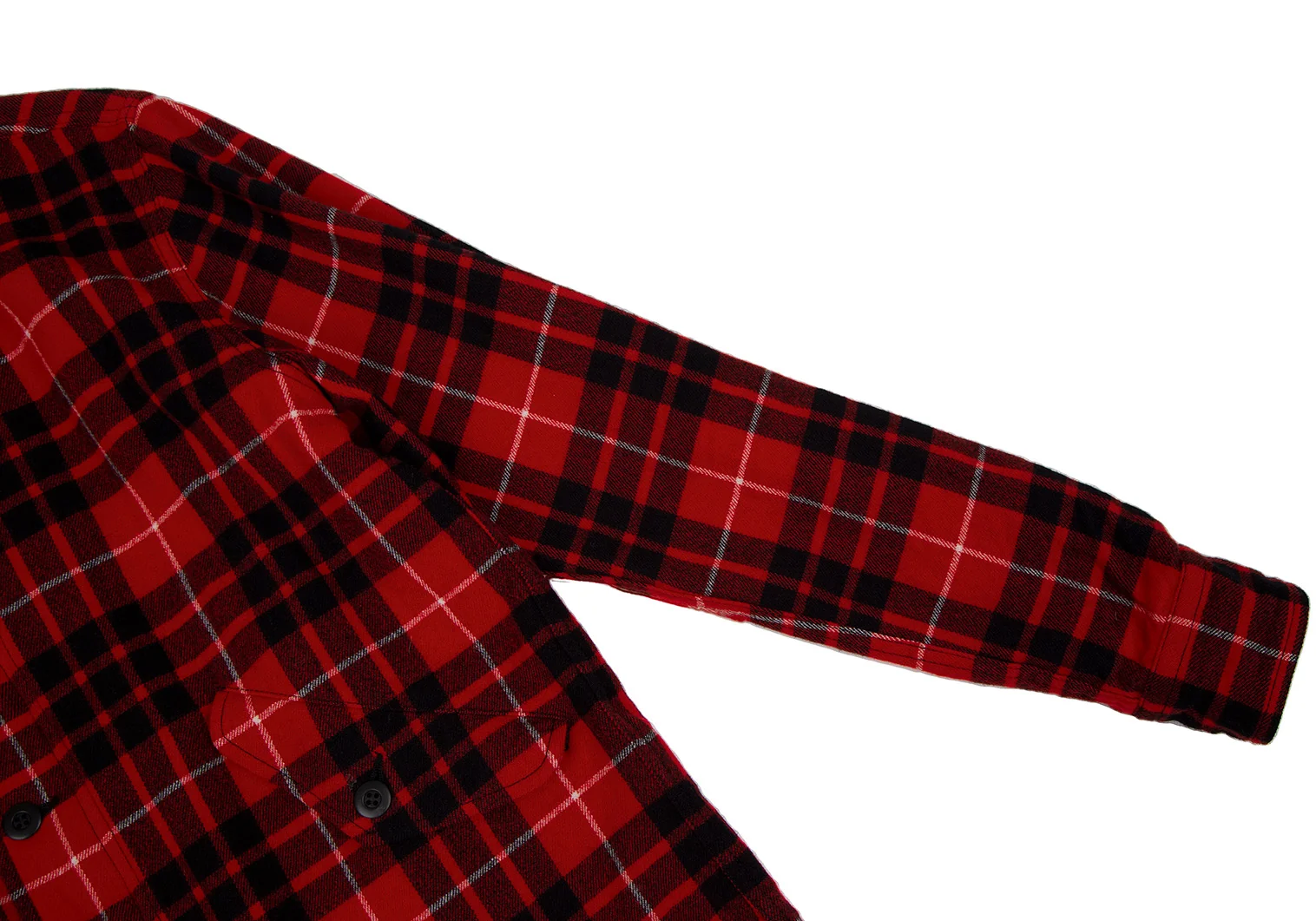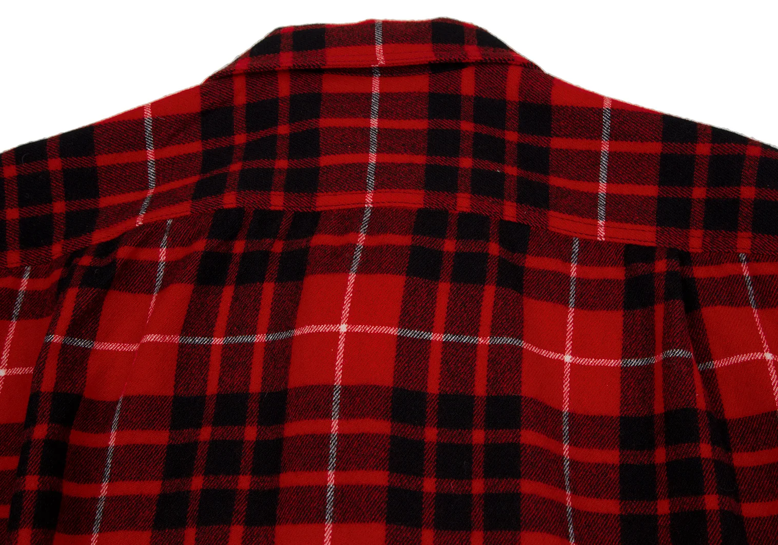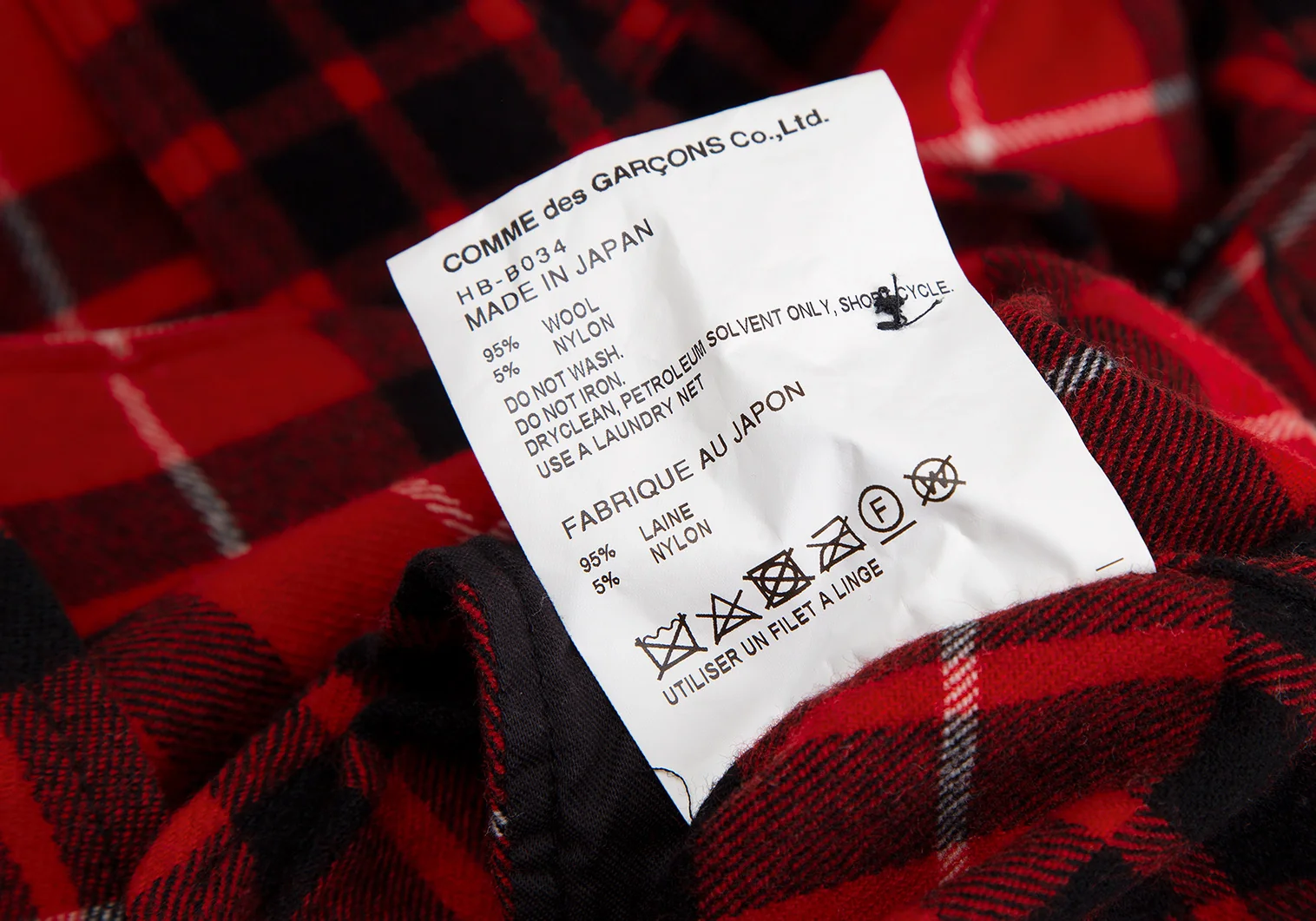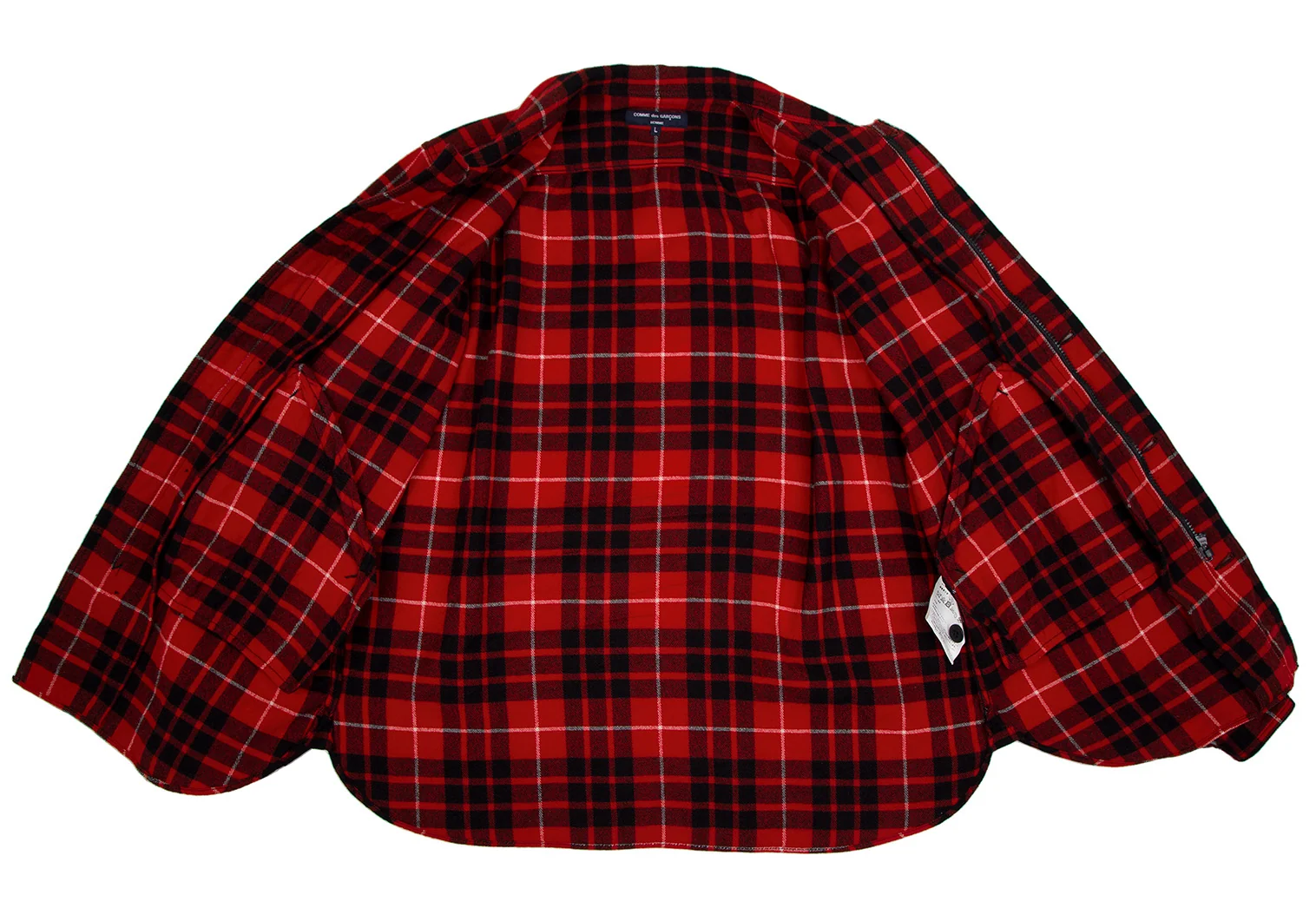 コムデギャルソン オムCOMME des GARCONS HOMME ウールナイロン製品洗いジップアップチェックネルシャツ 赤黒L