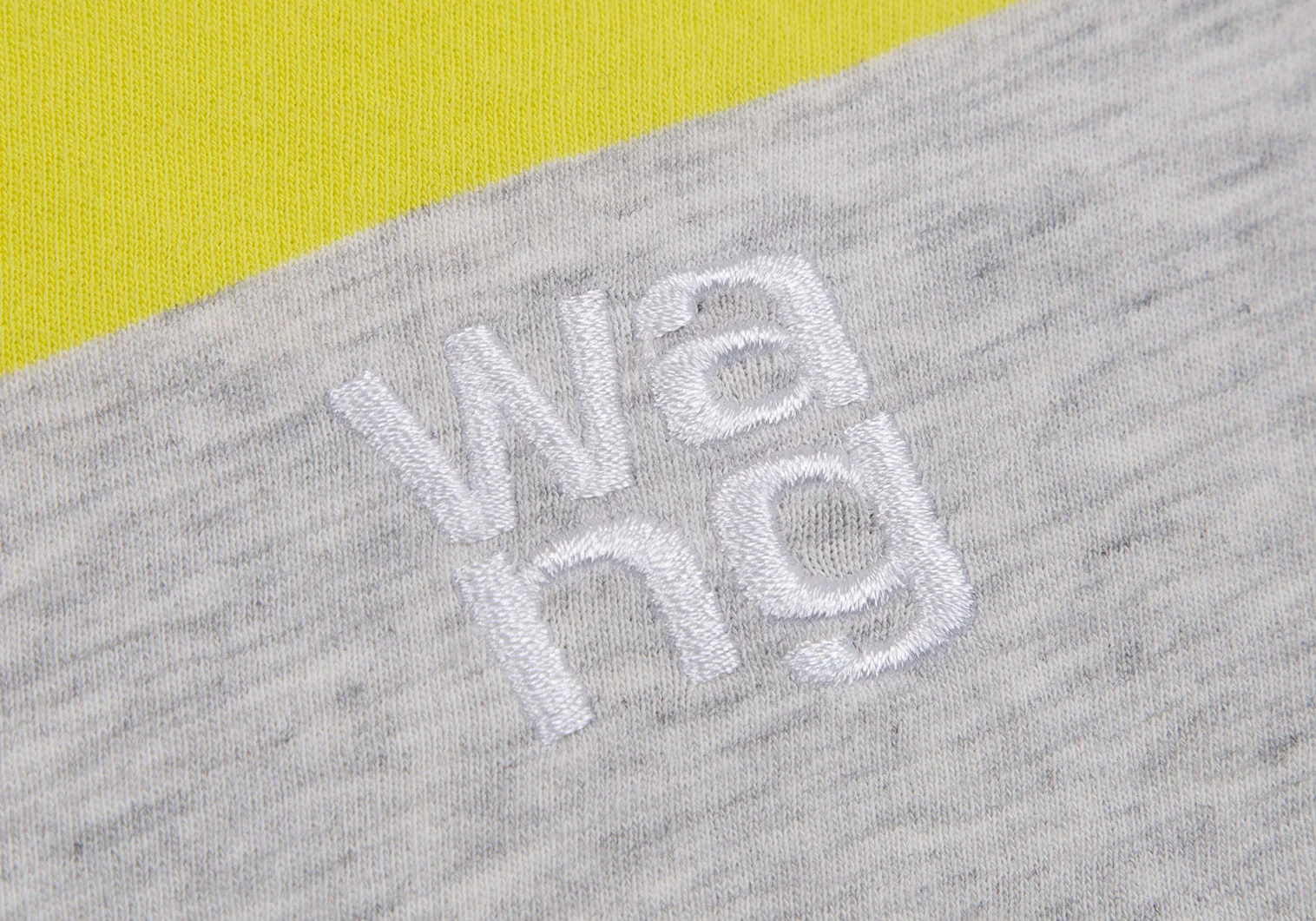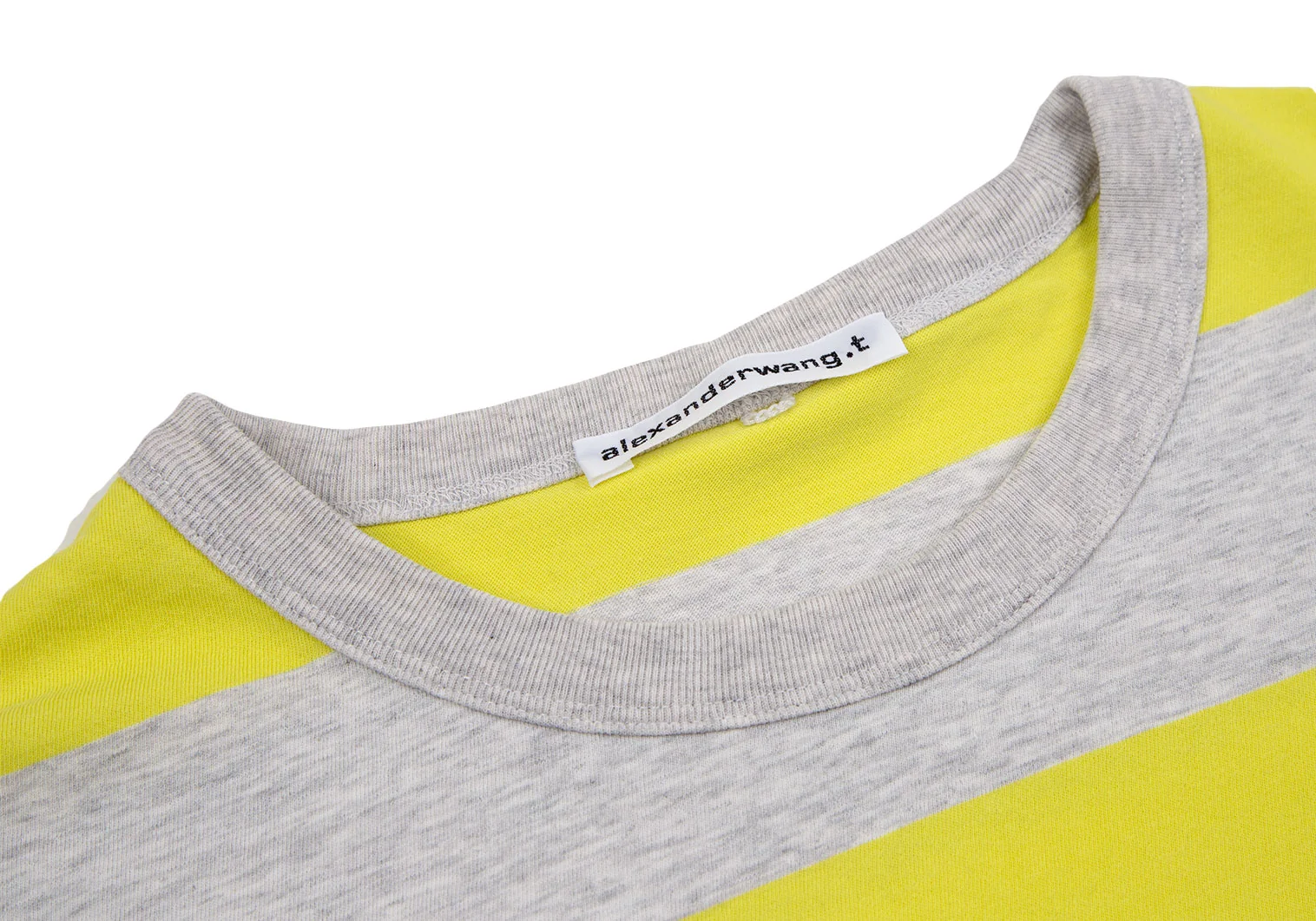 ティーバイアレキサンダーワンalexander wang.t コットンロゴワンポイント刺繍ボーダーTシャツ 杢グレー黄XS