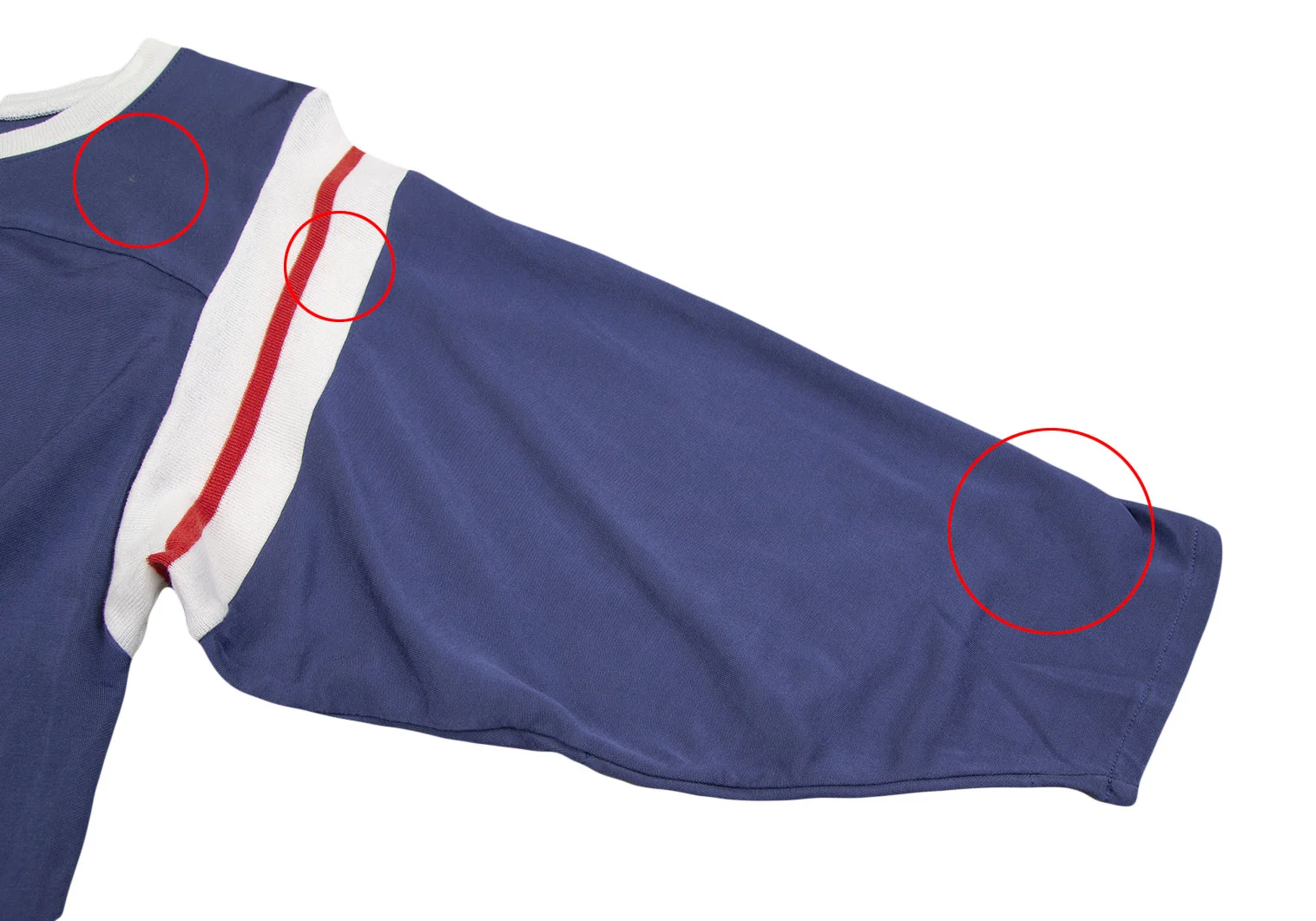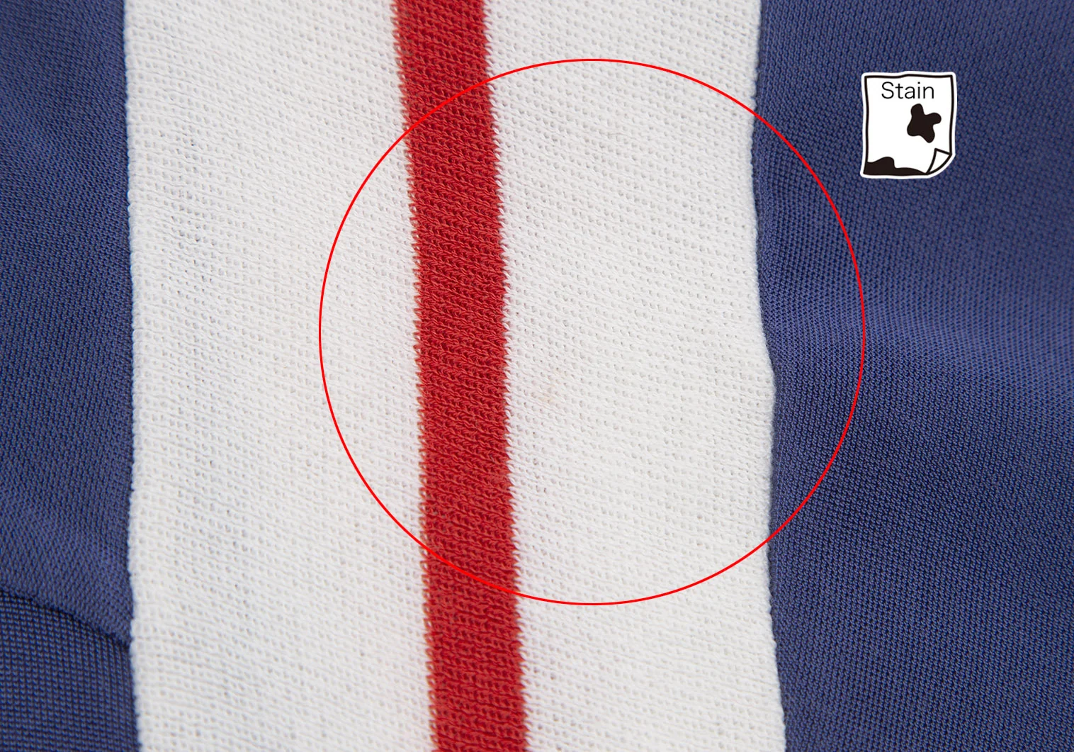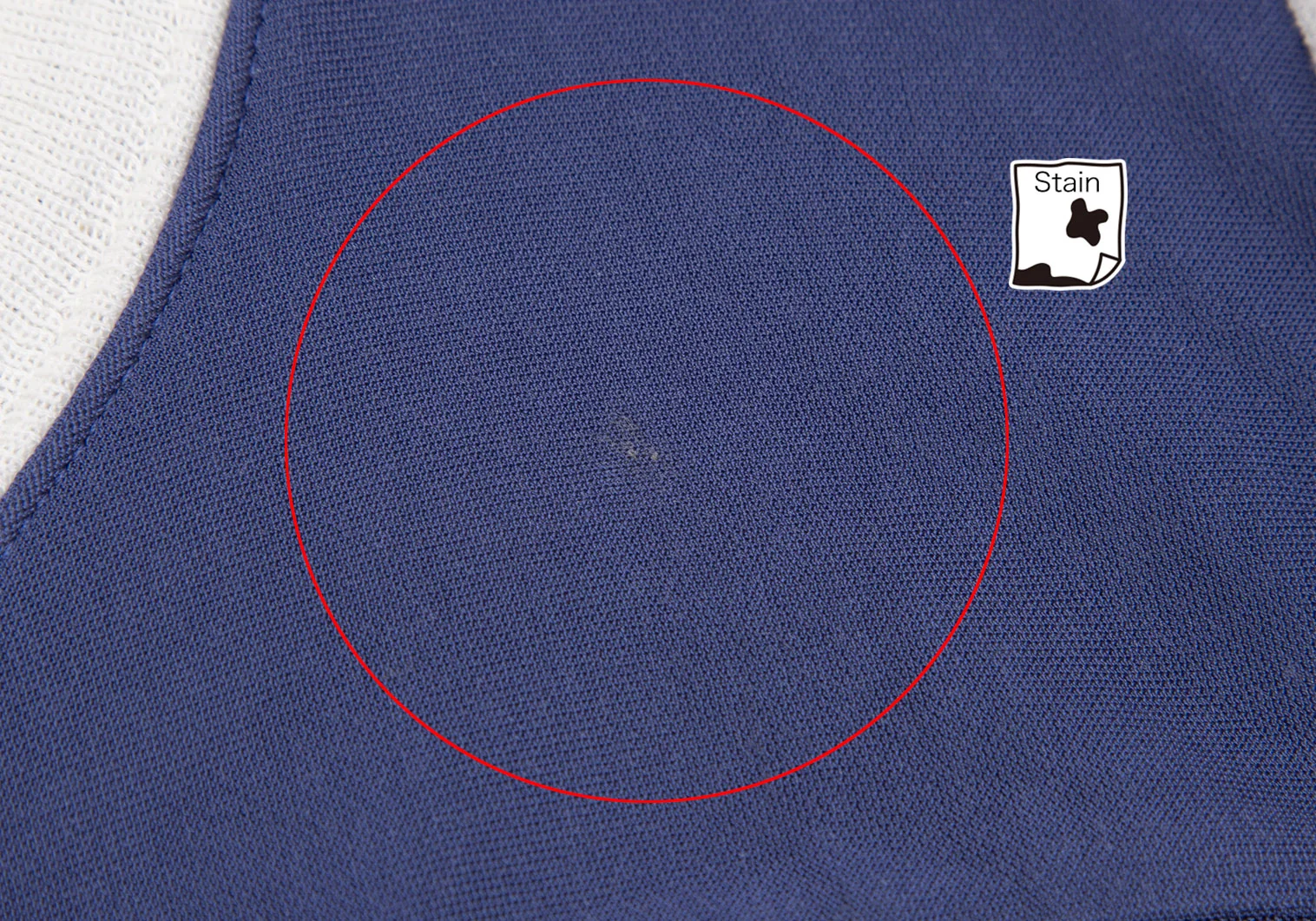 全体的に着用感あり。後ろ裾に擦れ、左肩に汚れ、脇・袖先に薄シミがあります(写真参照)。その他に目立ったシミ、汚れ、ほつれ等ありません。クリーニング済み