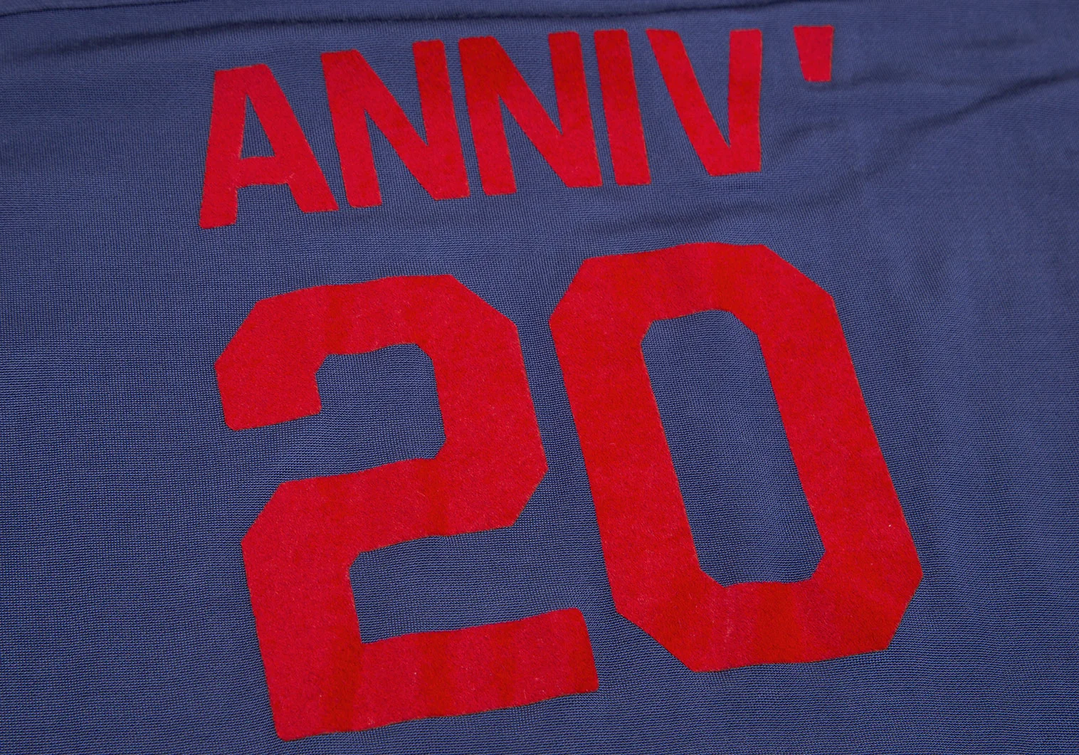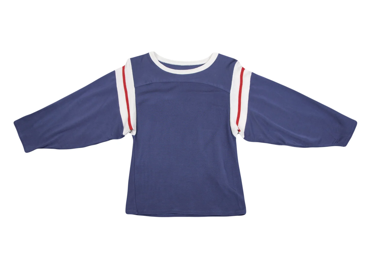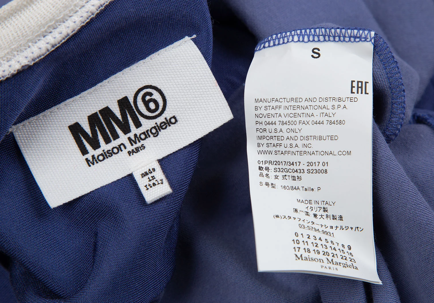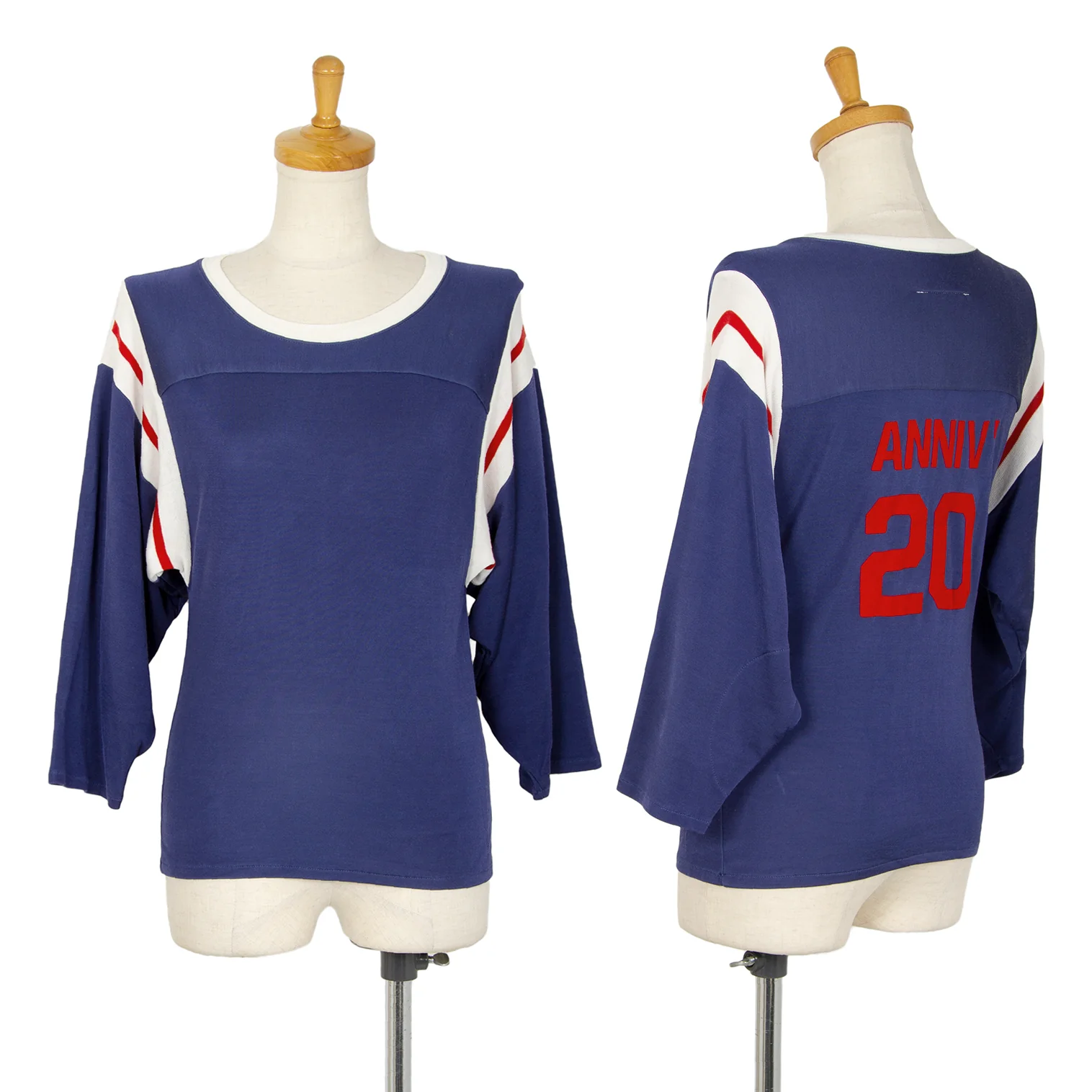 エムエム 6 メゾン マルジェラMM6 MAISON MARGIELA 袖切替フロッキープリントフットボールTシャツ 紫他S