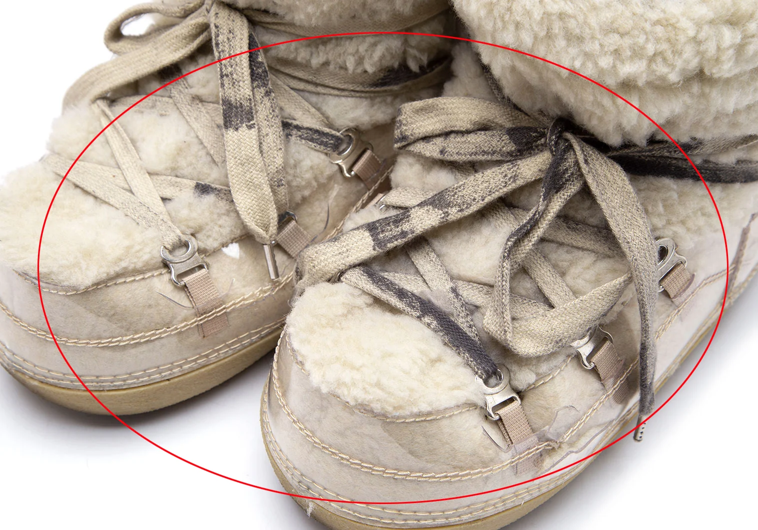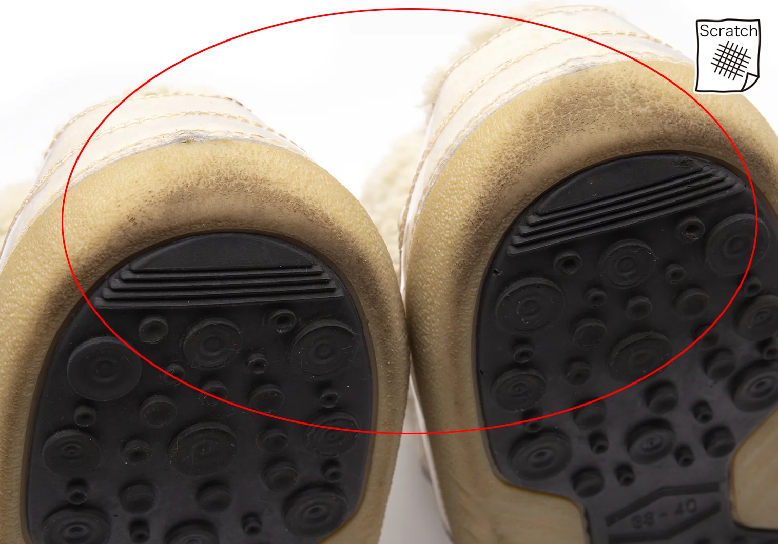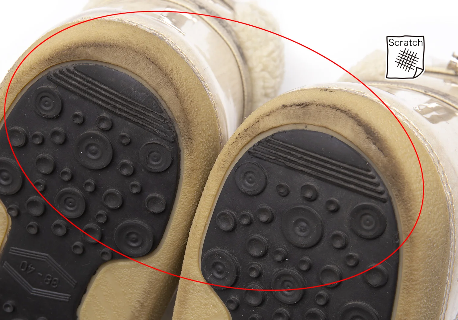 全体的に着用感のあるお品です。靴紐根元のPVCに割れ、右袖紐にダメージ、履き口に擦れ・毛羽立ち、ソールに減りがあります。(写真参照)。