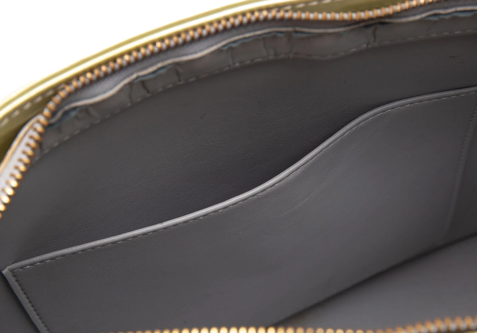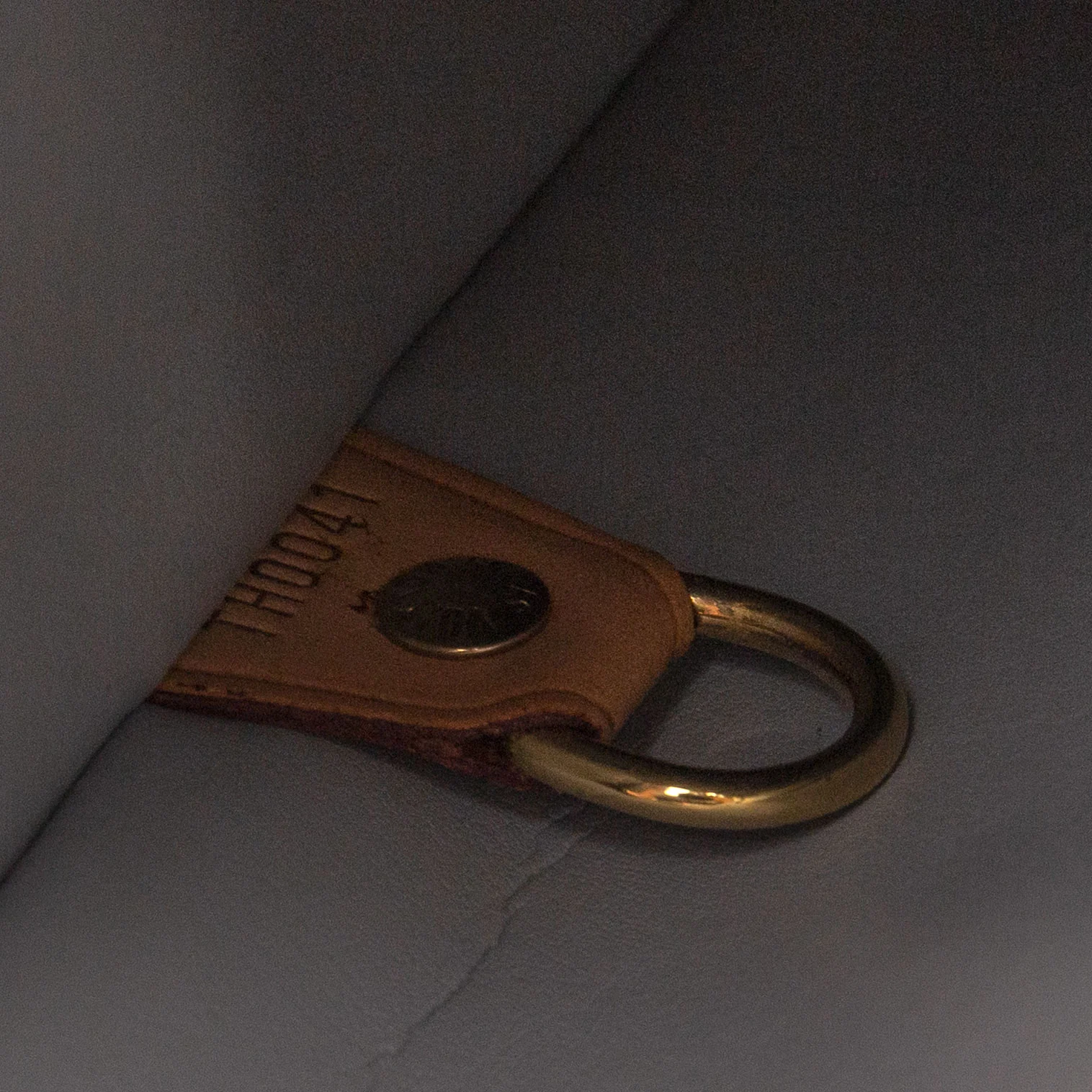 表面に薄汚れ、ハンドルにシミ、底に薄汚れ・擦れキズ、内側に劣化・汚れ・ジップポケット周りにシワがあります(写真参照)。その他に目立ったダメージはありません。
