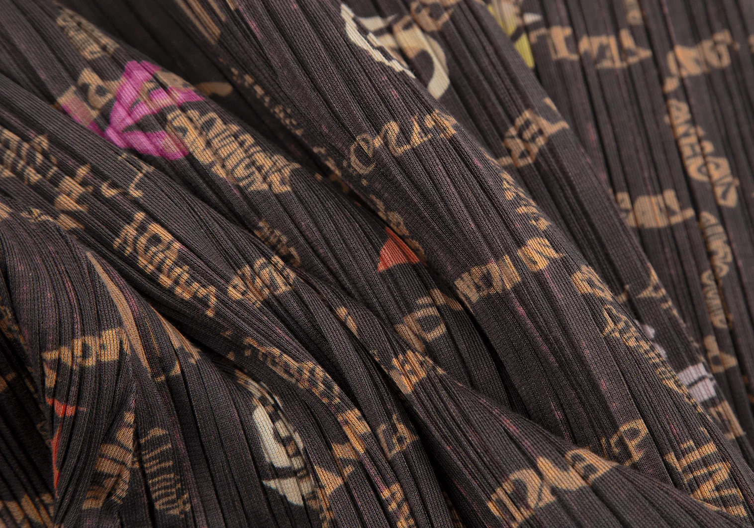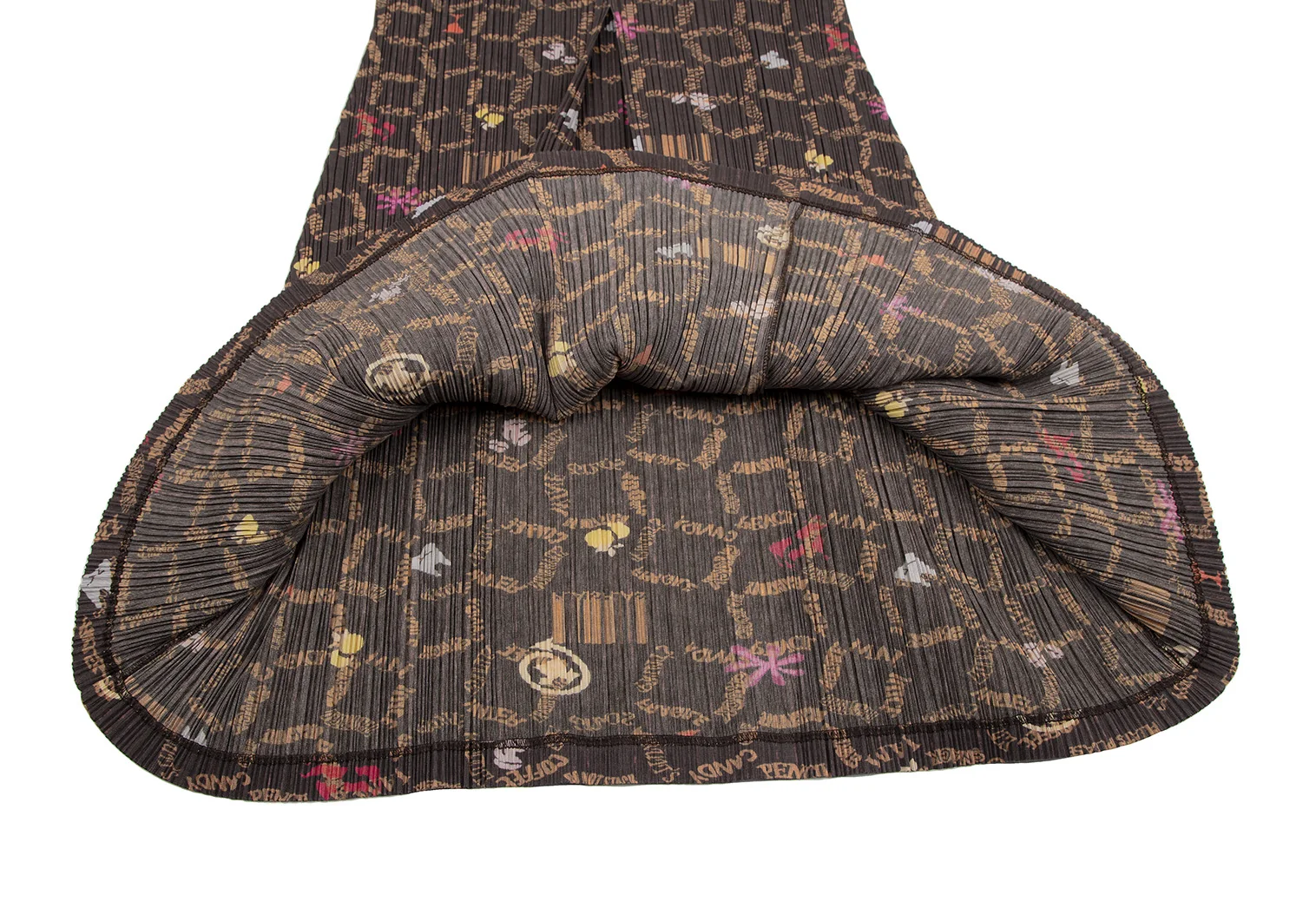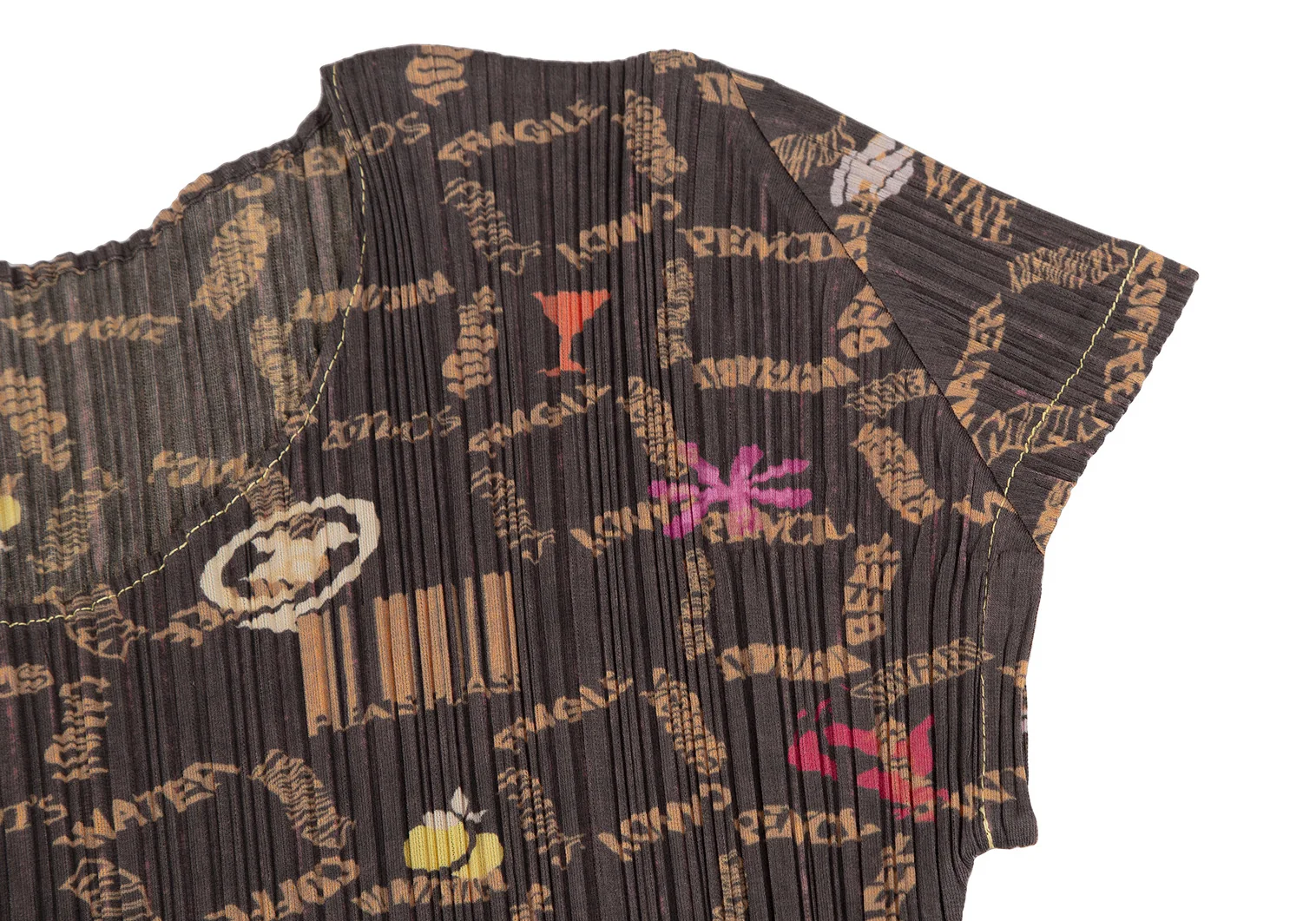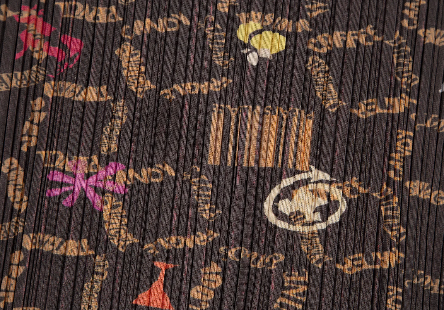 プリーツプリーズPLEATS PLEASE コットンポリプリーツ総柄半袖ワンピース 茶5