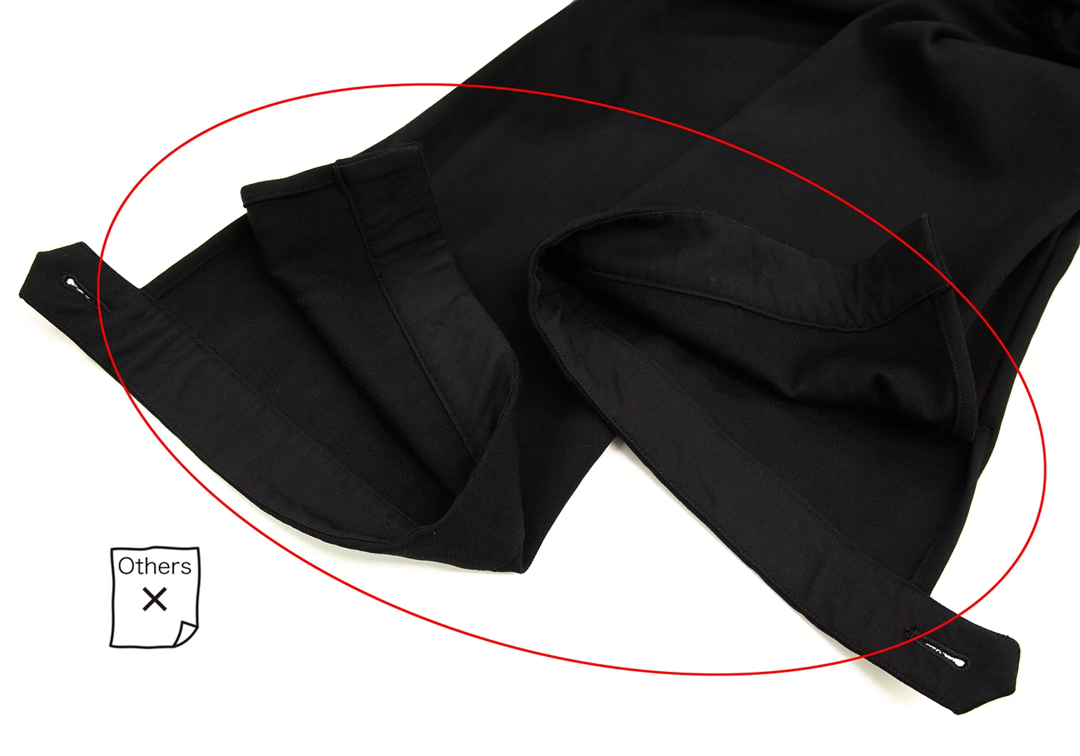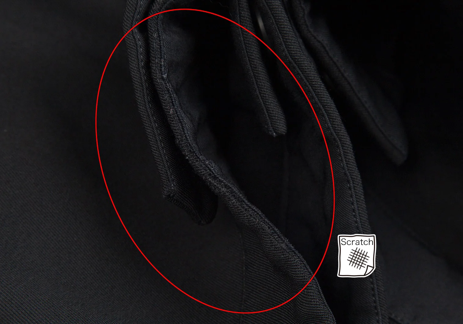 裾口に擦り切れ、裾裏にテカリがあります(画像参照)。その他目立ったシミ、汚れ、ほつれ等なくいい状態です。クリーニング済み
