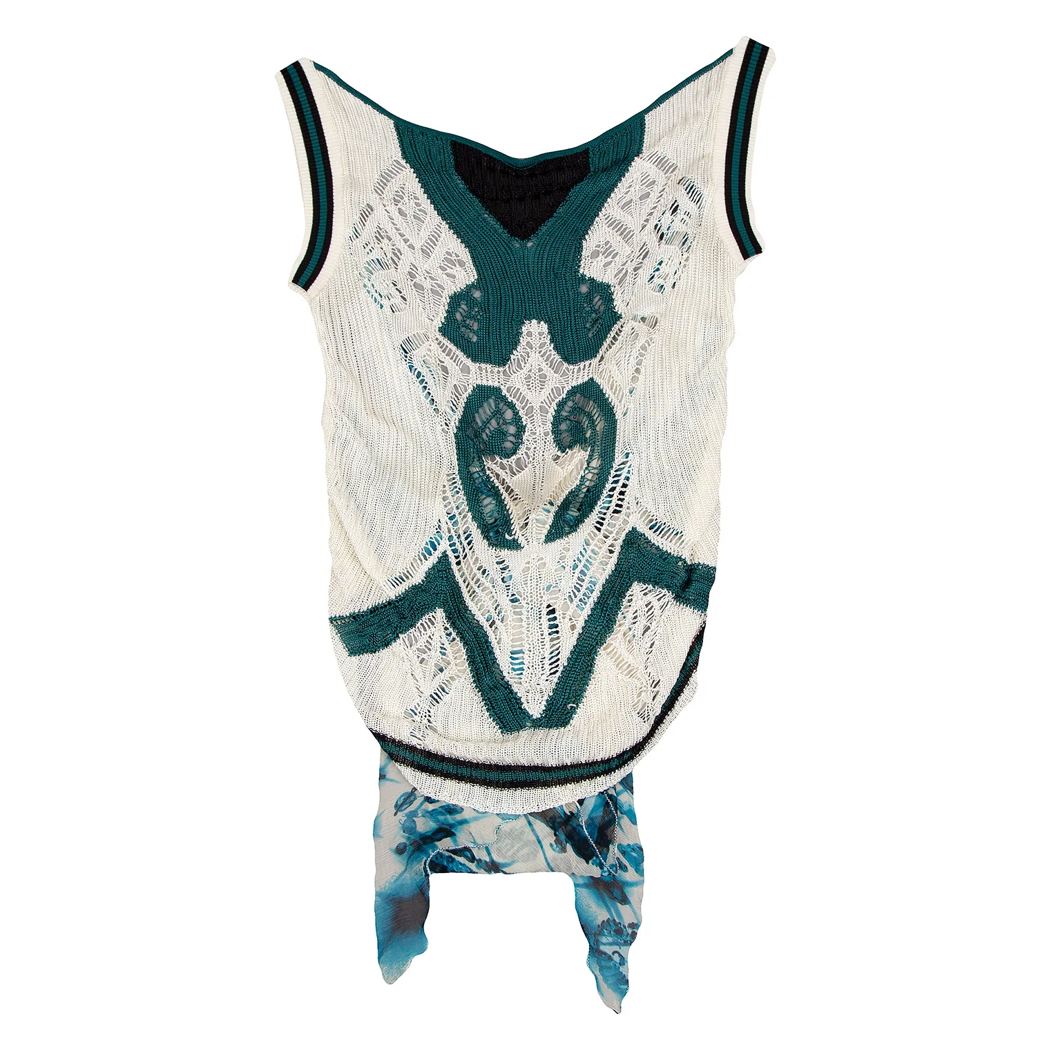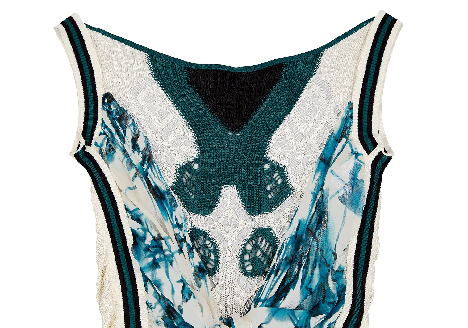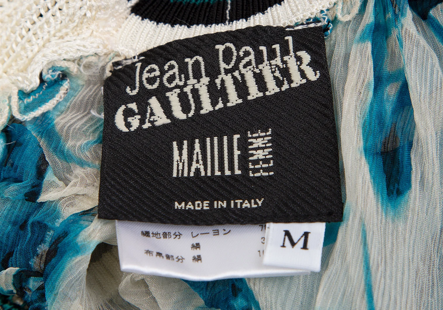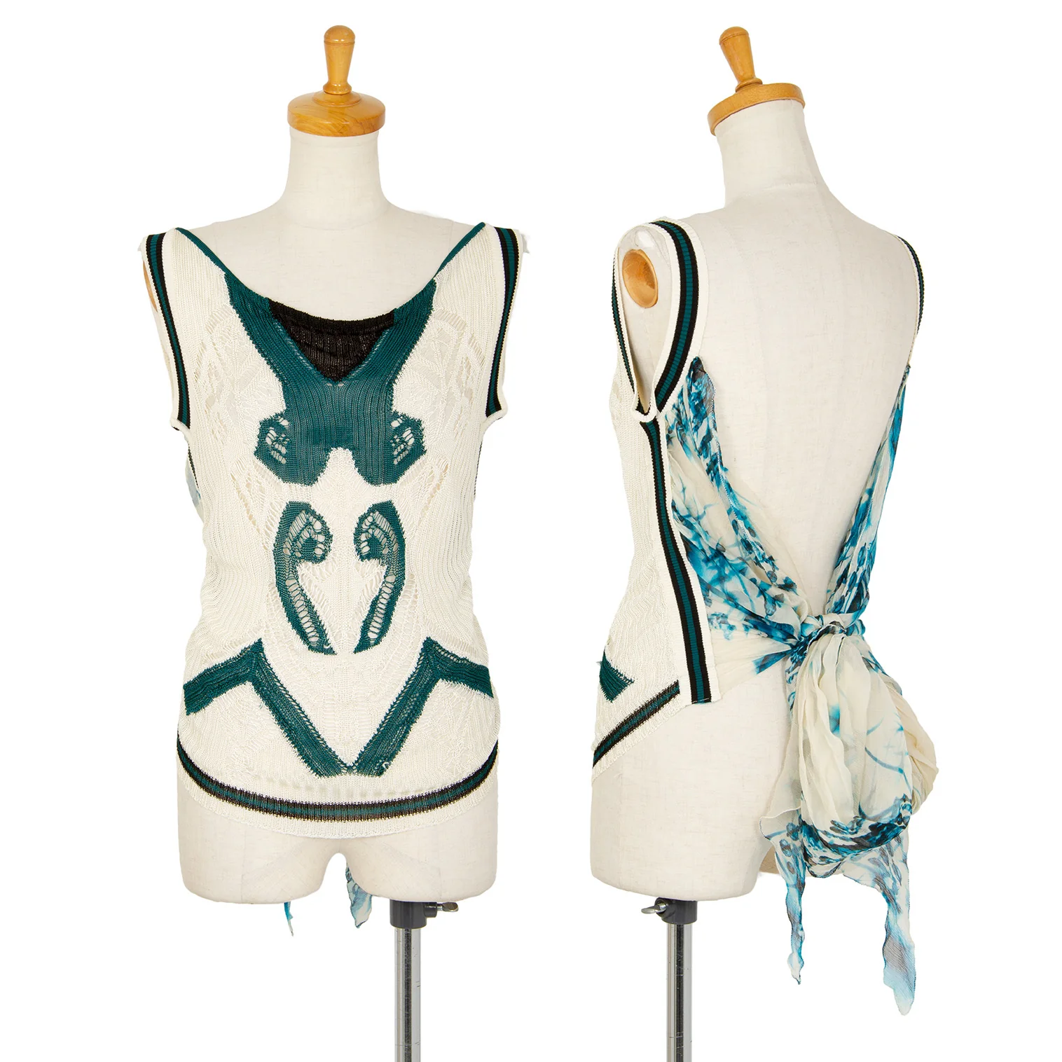 ジャンポールゴルチエ マイユファムJean Paul GAULTIER MAILLE FEMME バックプリントシフォン切替ニットベスト オフエメラルドM