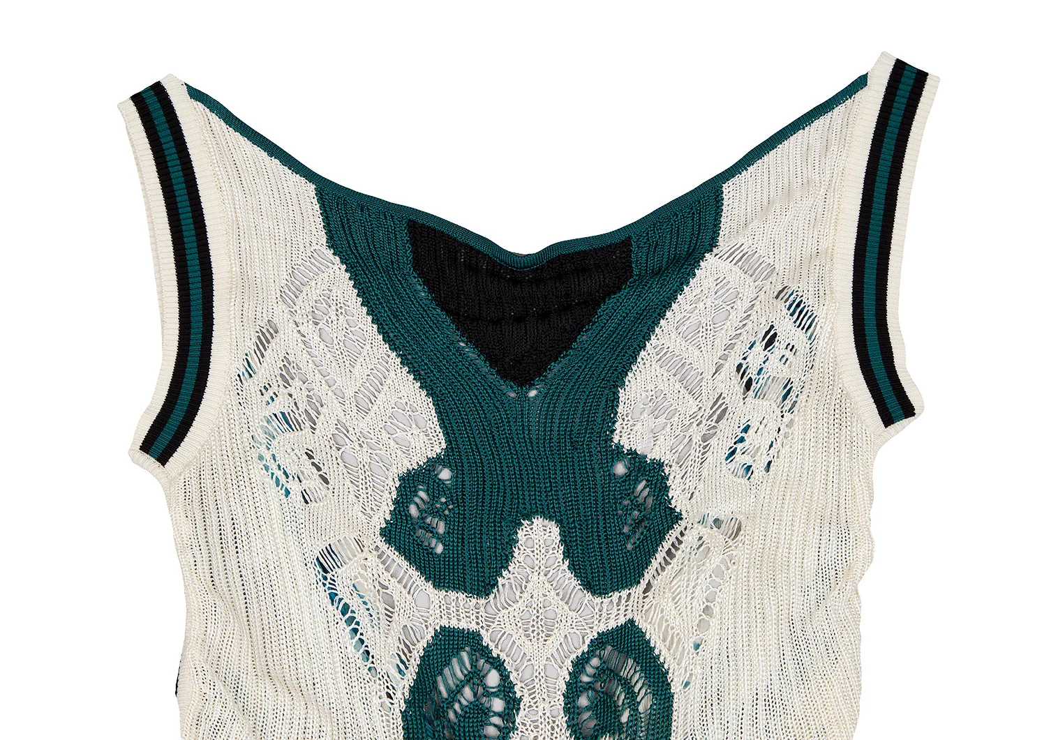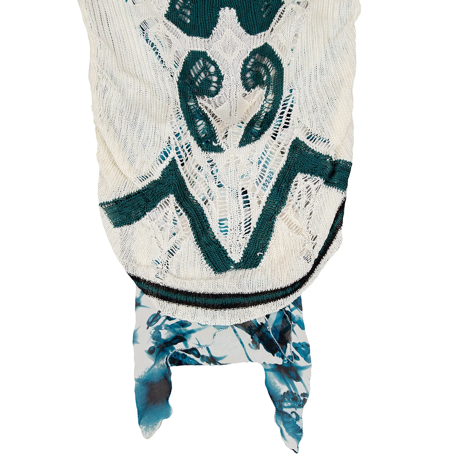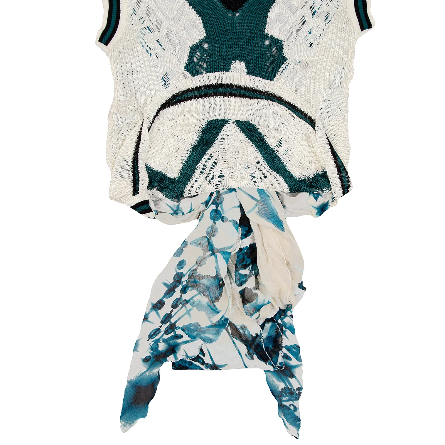 ジャンポールゴルチエ マイユファムJean Paul GAULTIER MAILLE FEMME バックプリントシフォン切替ニットベスト オフエメラルドM