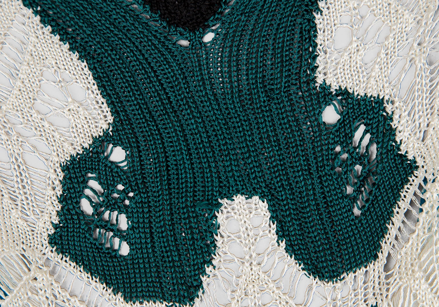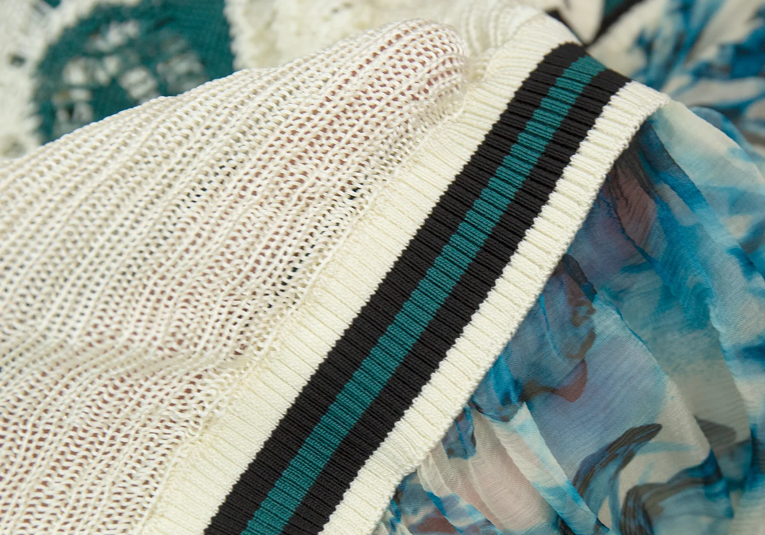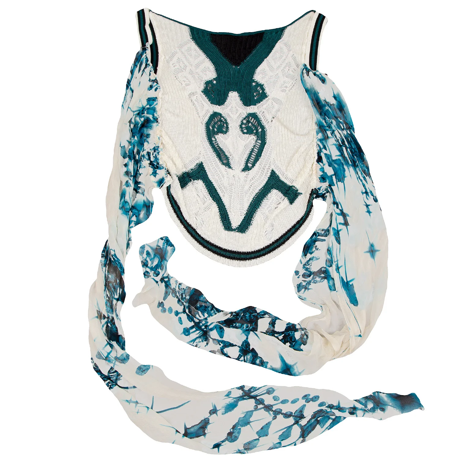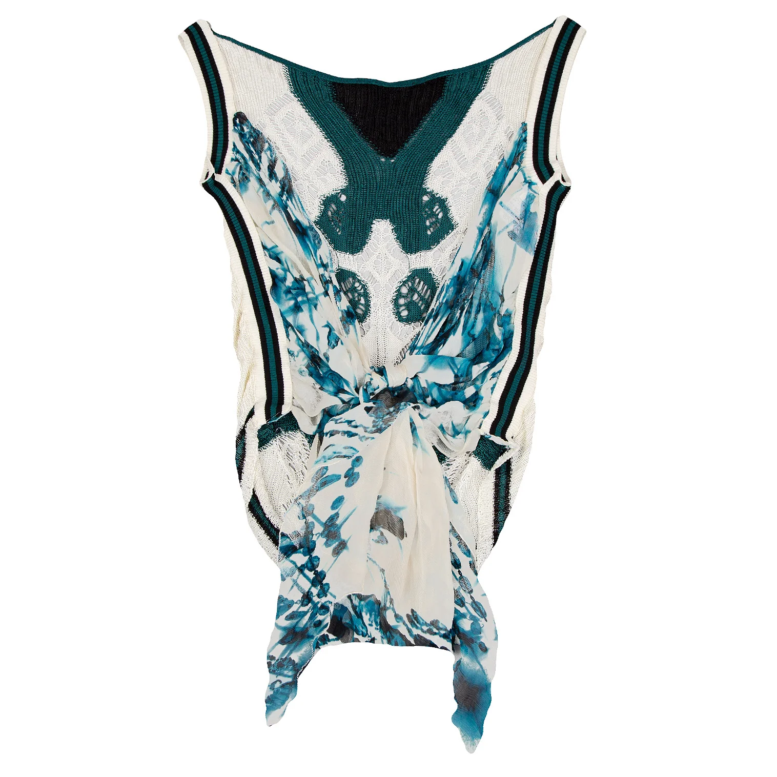 ジャンポールゴルチエ マイユファムJean Paul GAULTIER MAILLE FEMME バックプリントシフォン切替ニットベスト オフエメラルドM