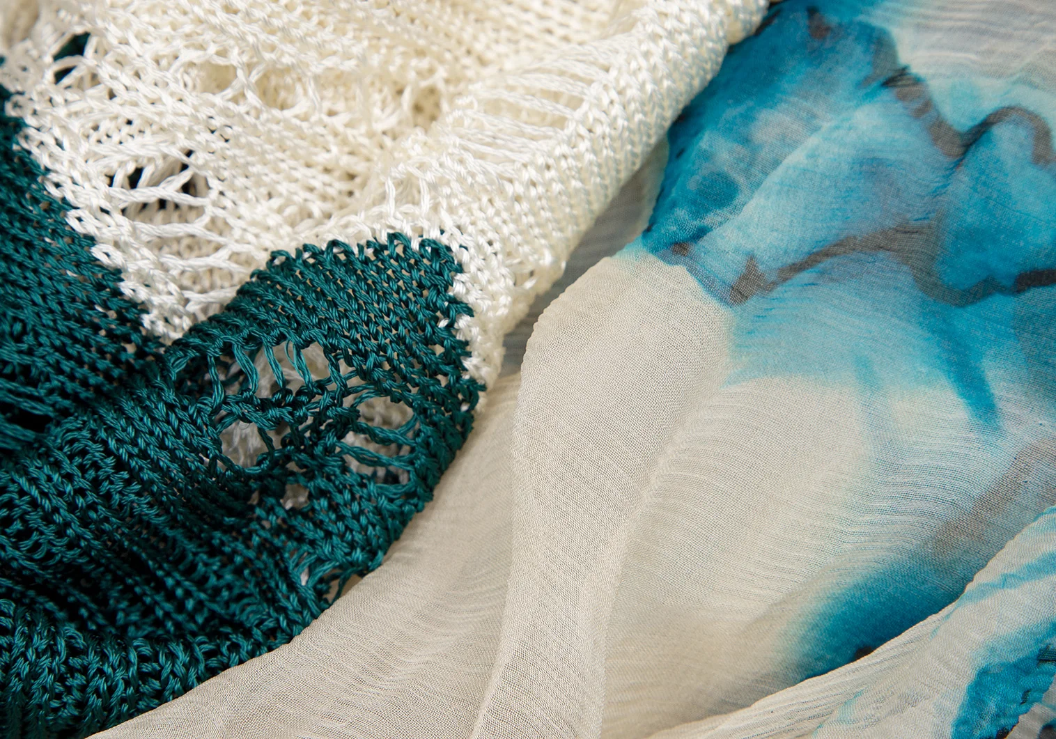 編地部分 レーヨン70% 絹30% 布帛部分 絹100%