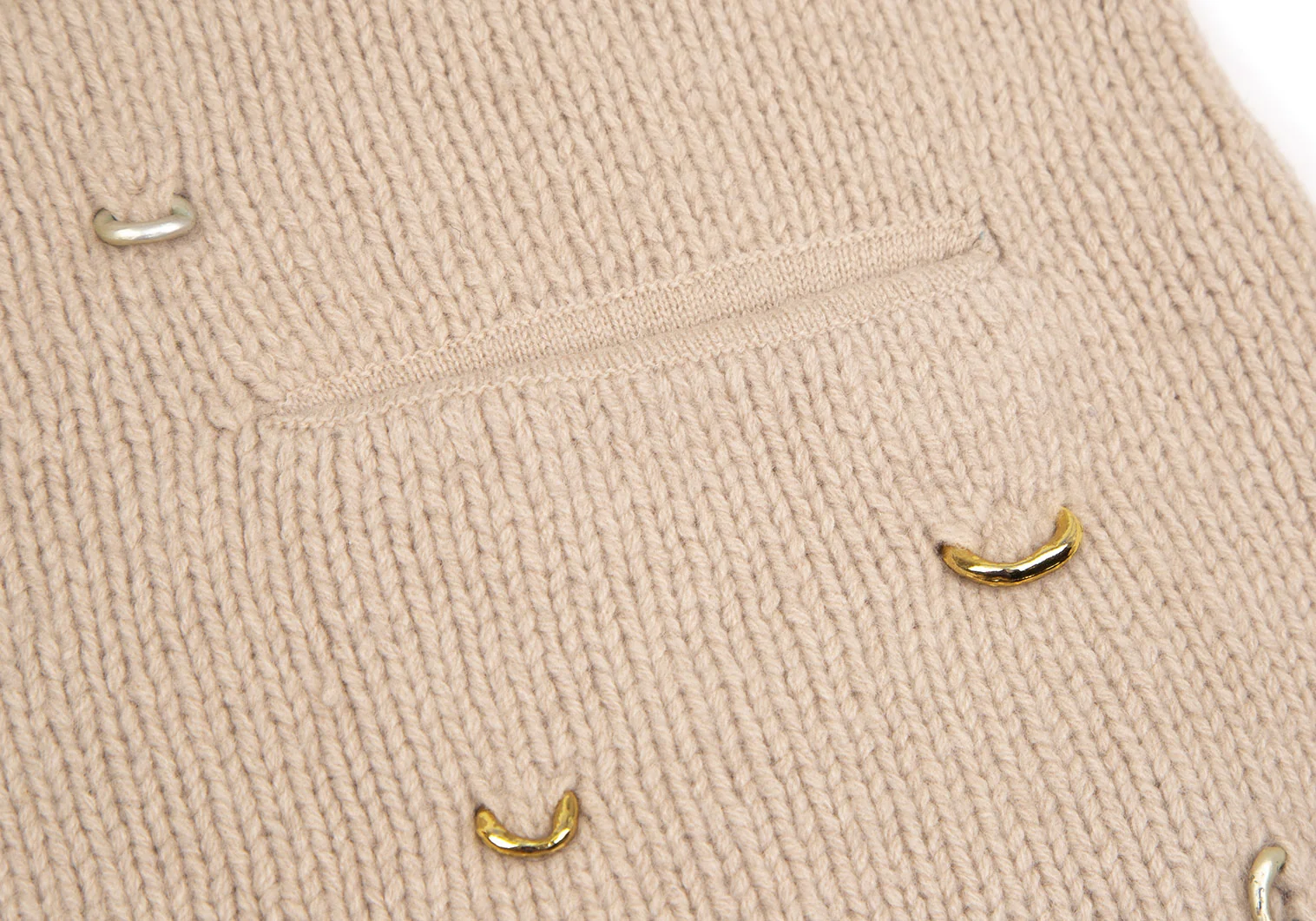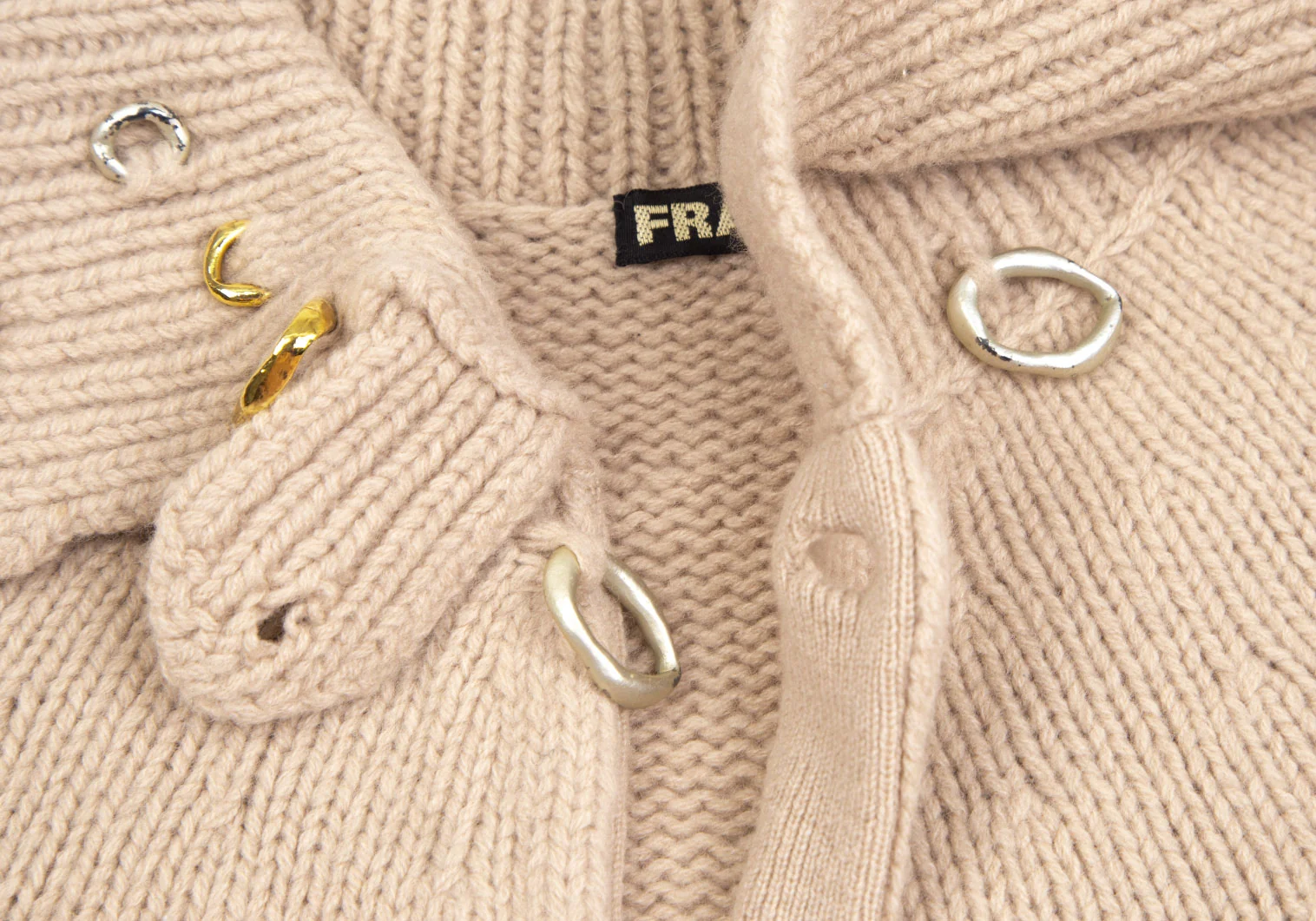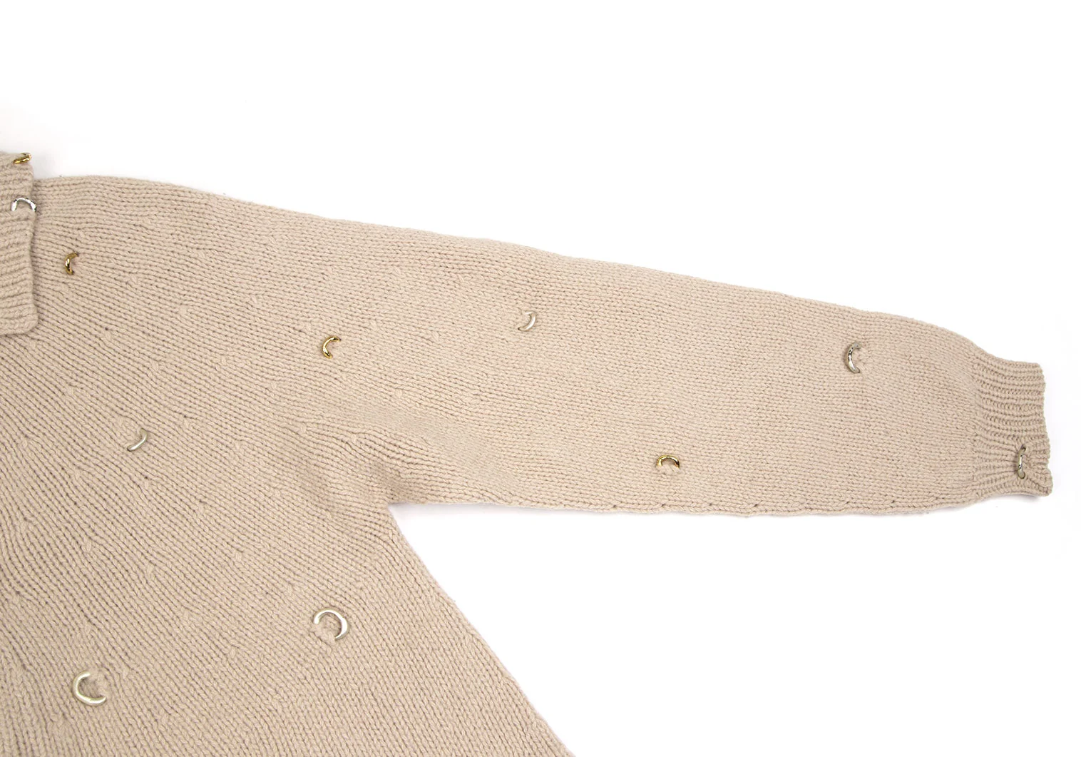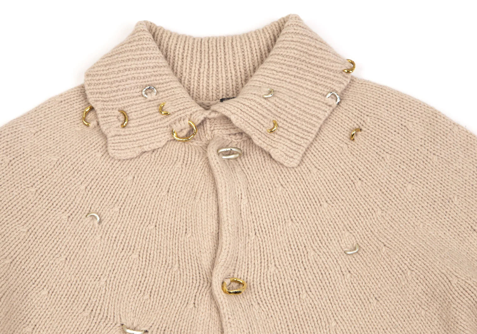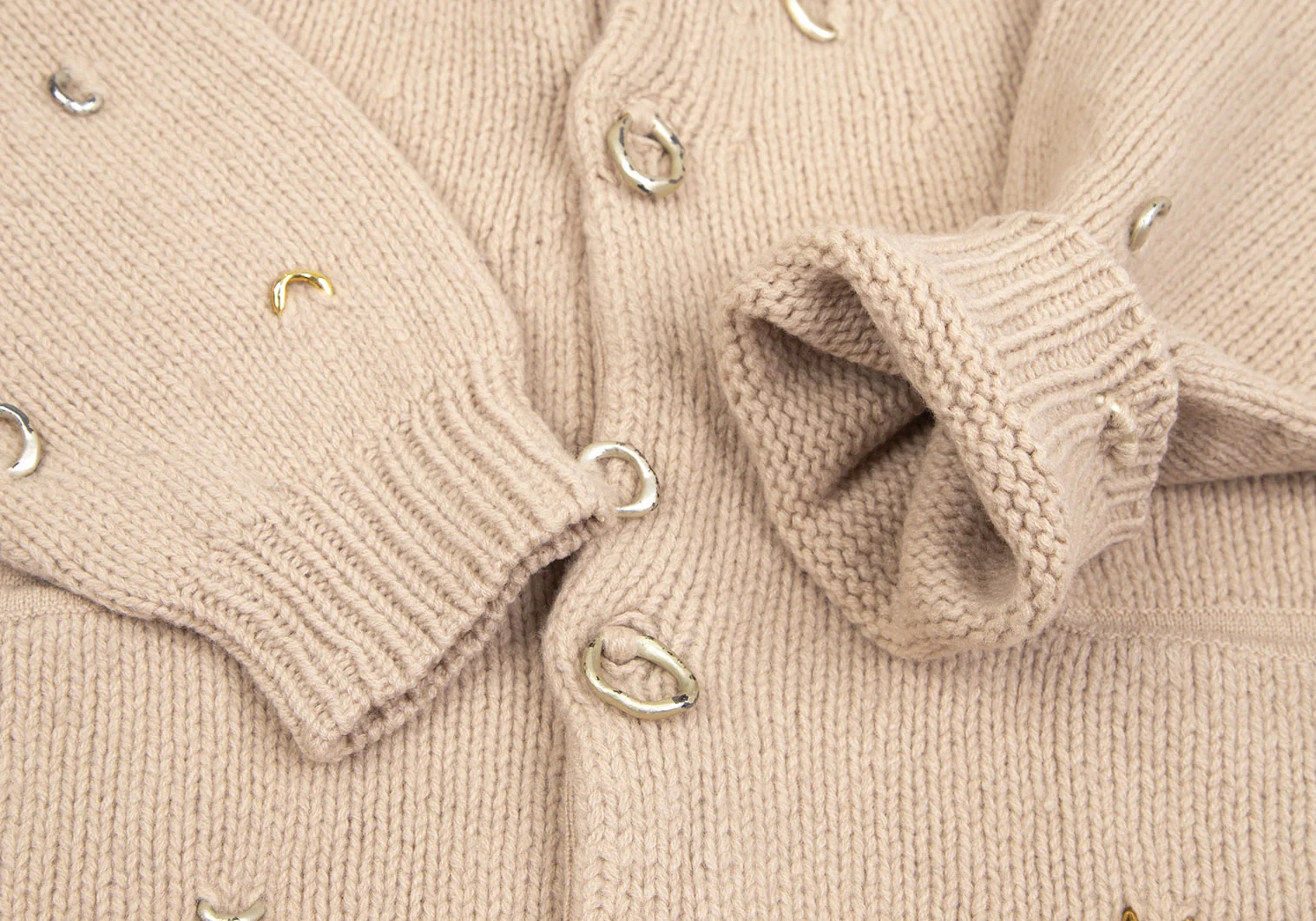 フラボアFRAPBOIS ウールカシミヤリングデザインニットカーディガン ベージュ1