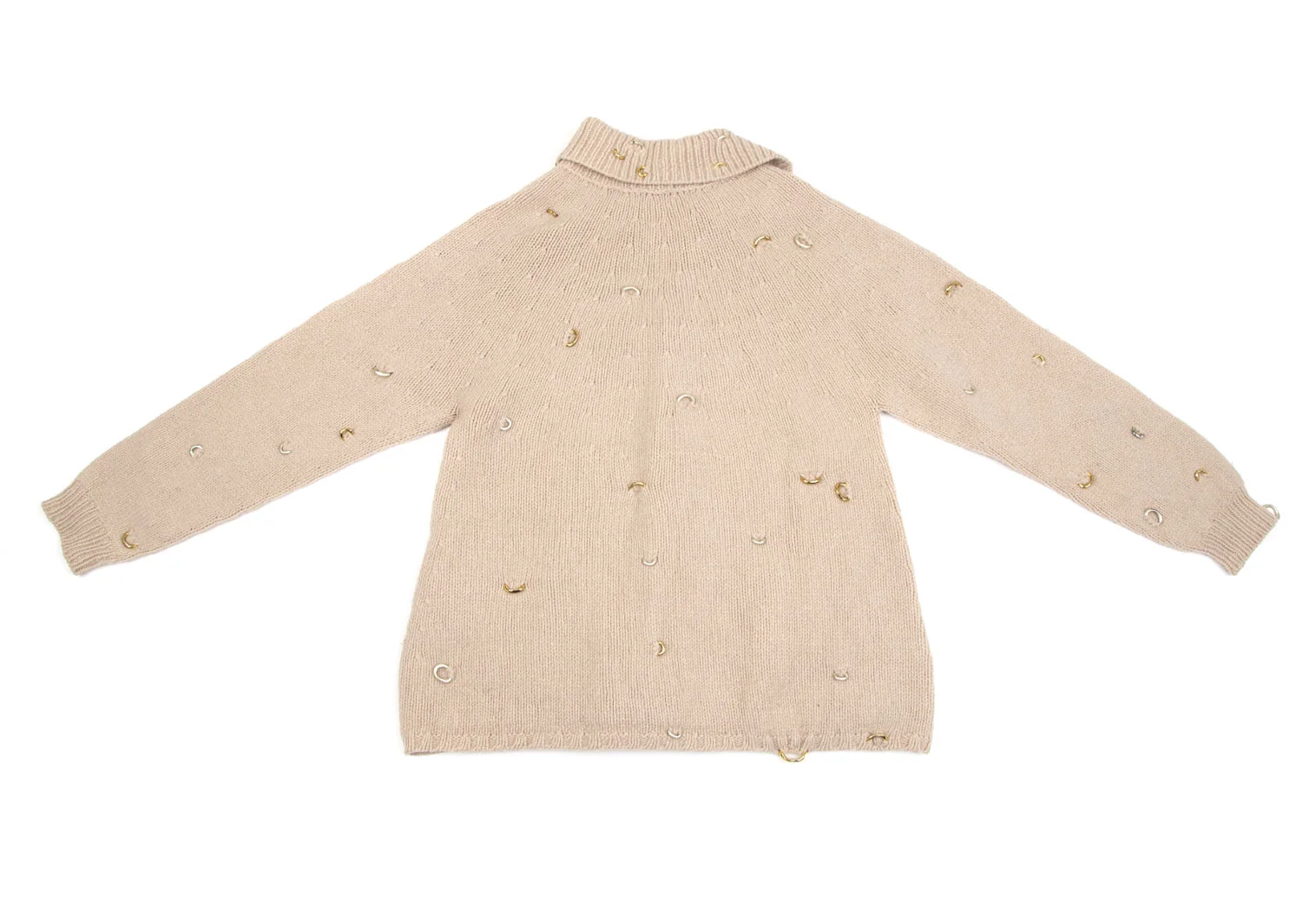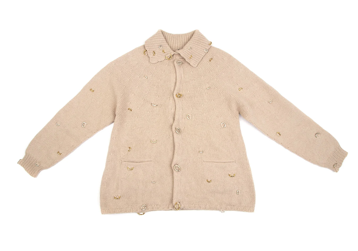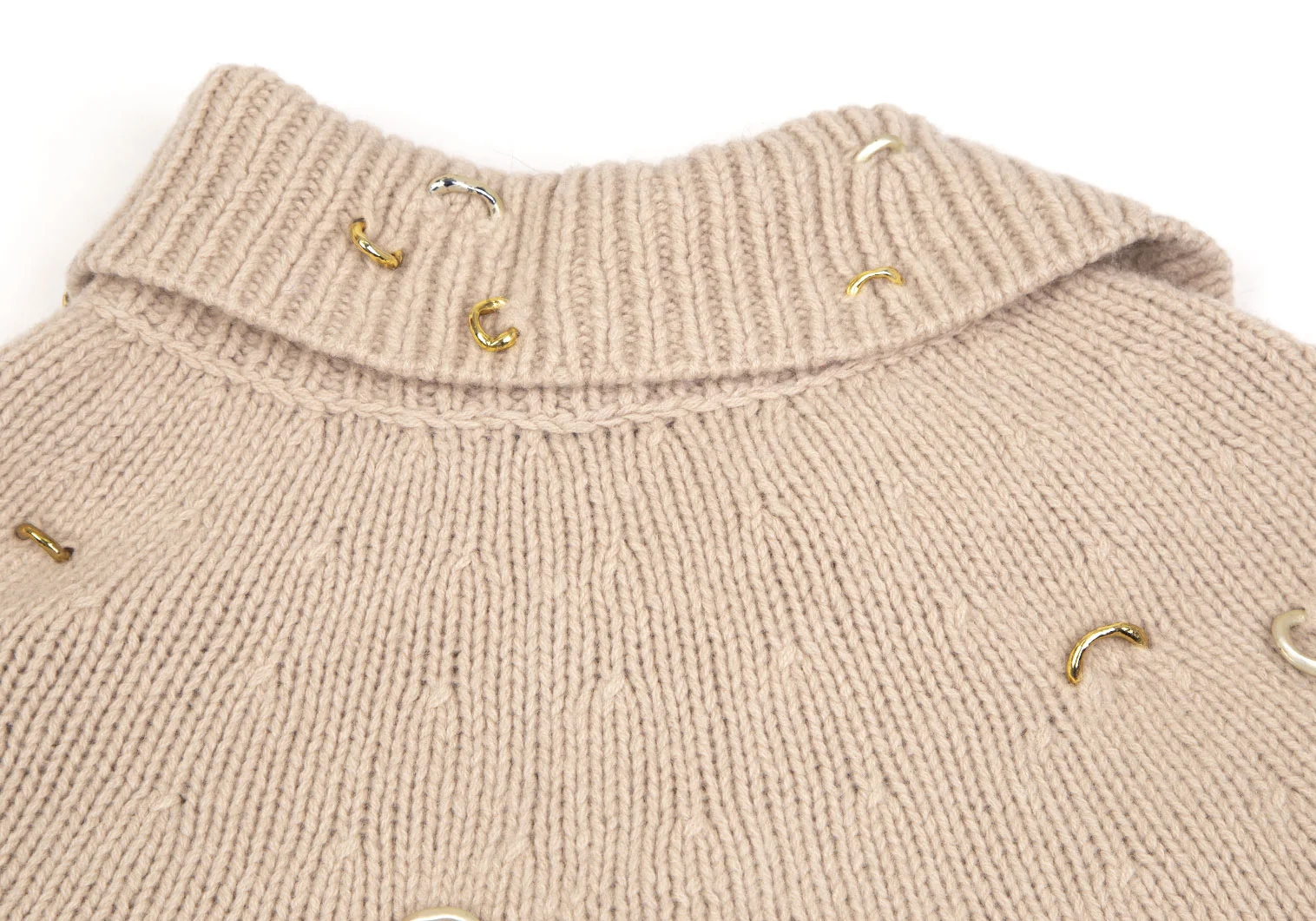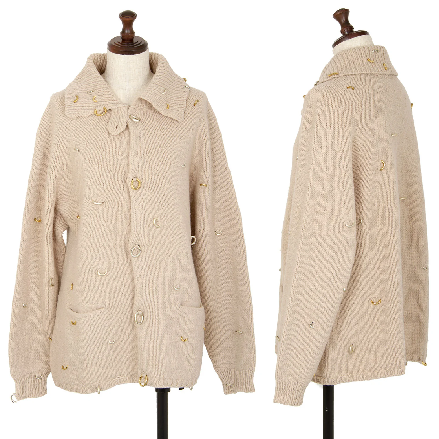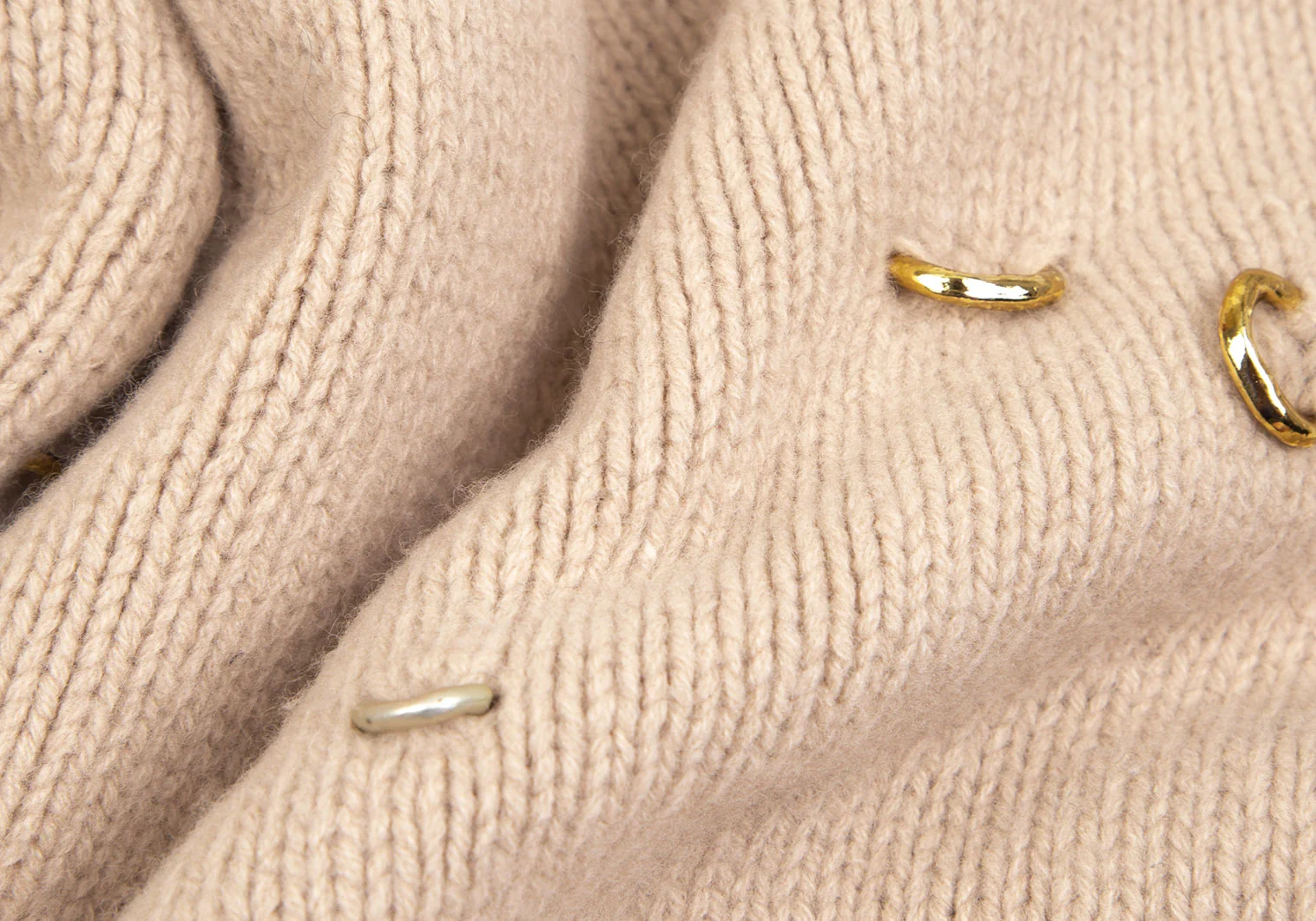 フラボアFRAPBOIS ウールカシミヤリングデザインニットカーディガン ベージュ1