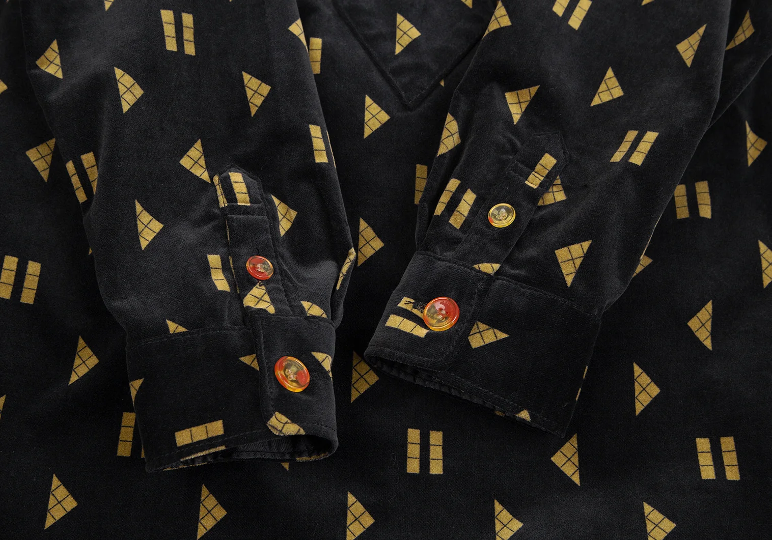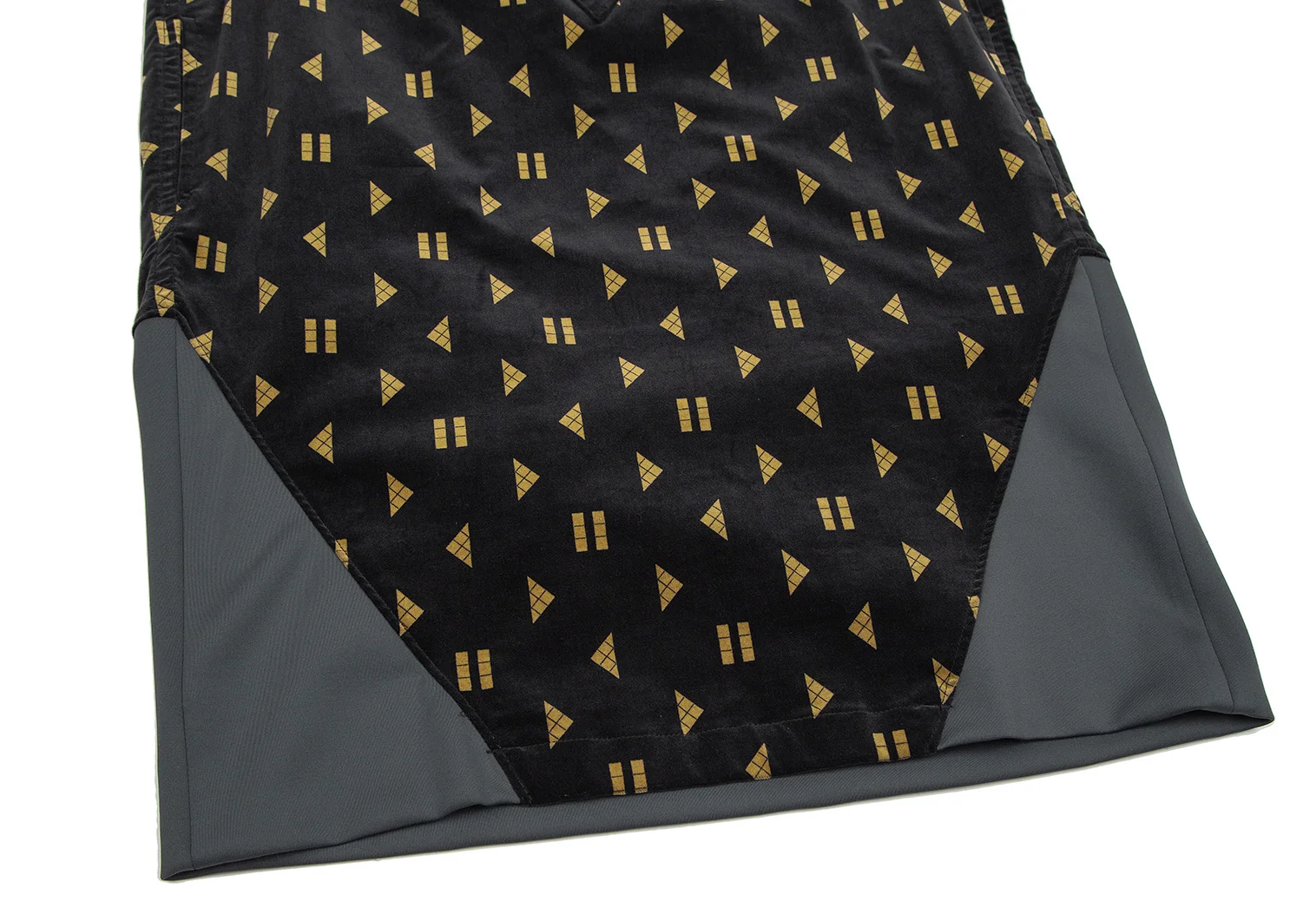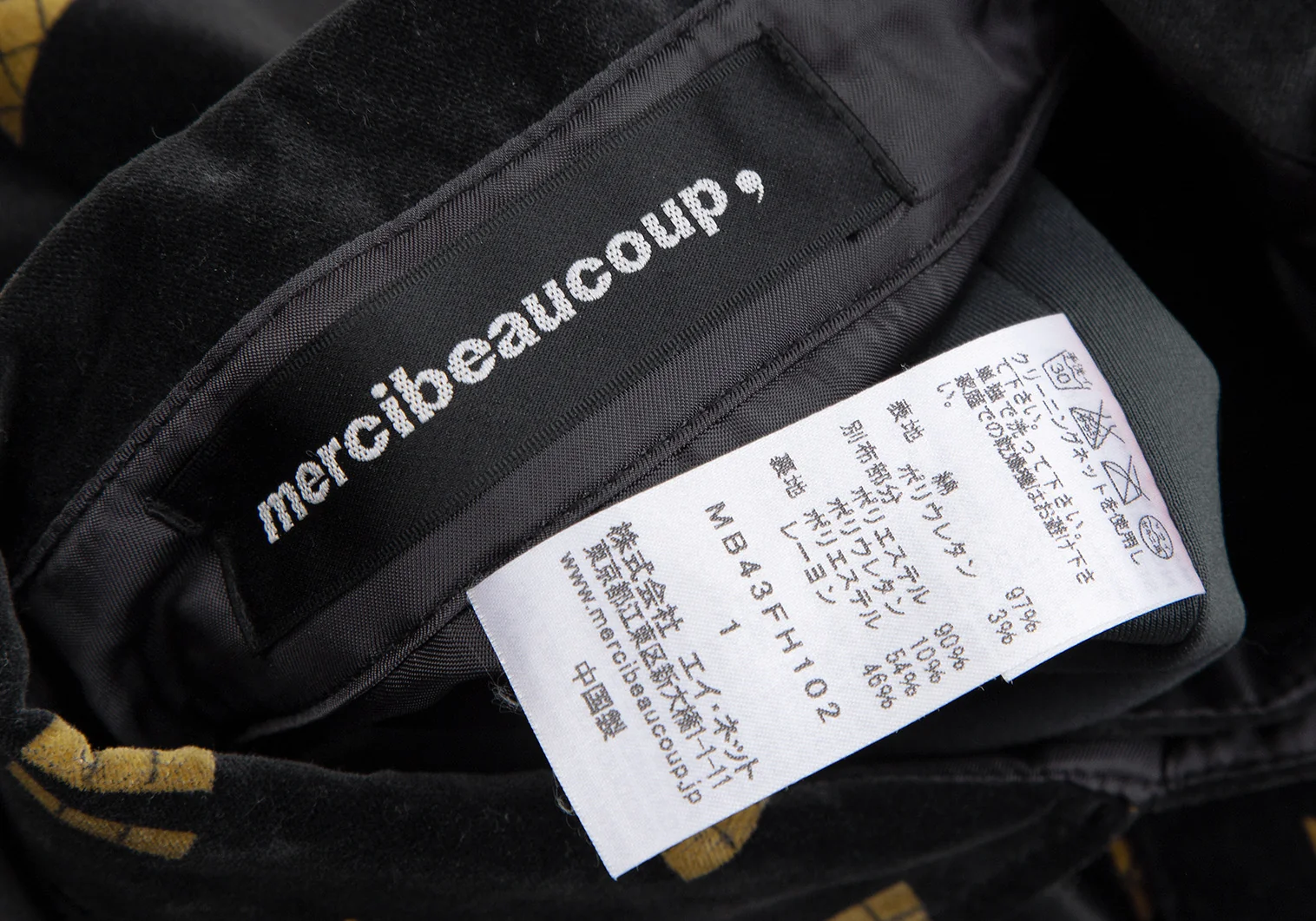 メルシーボークーmercibeaucoup シェイププリントベロア切替プルオーバーシャツワンピース 黒1