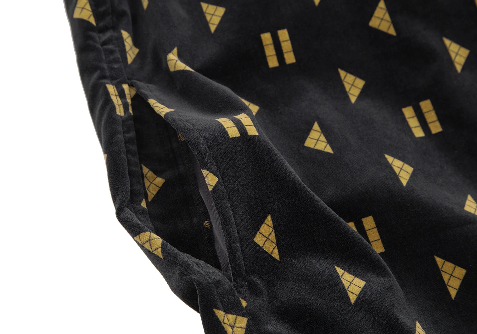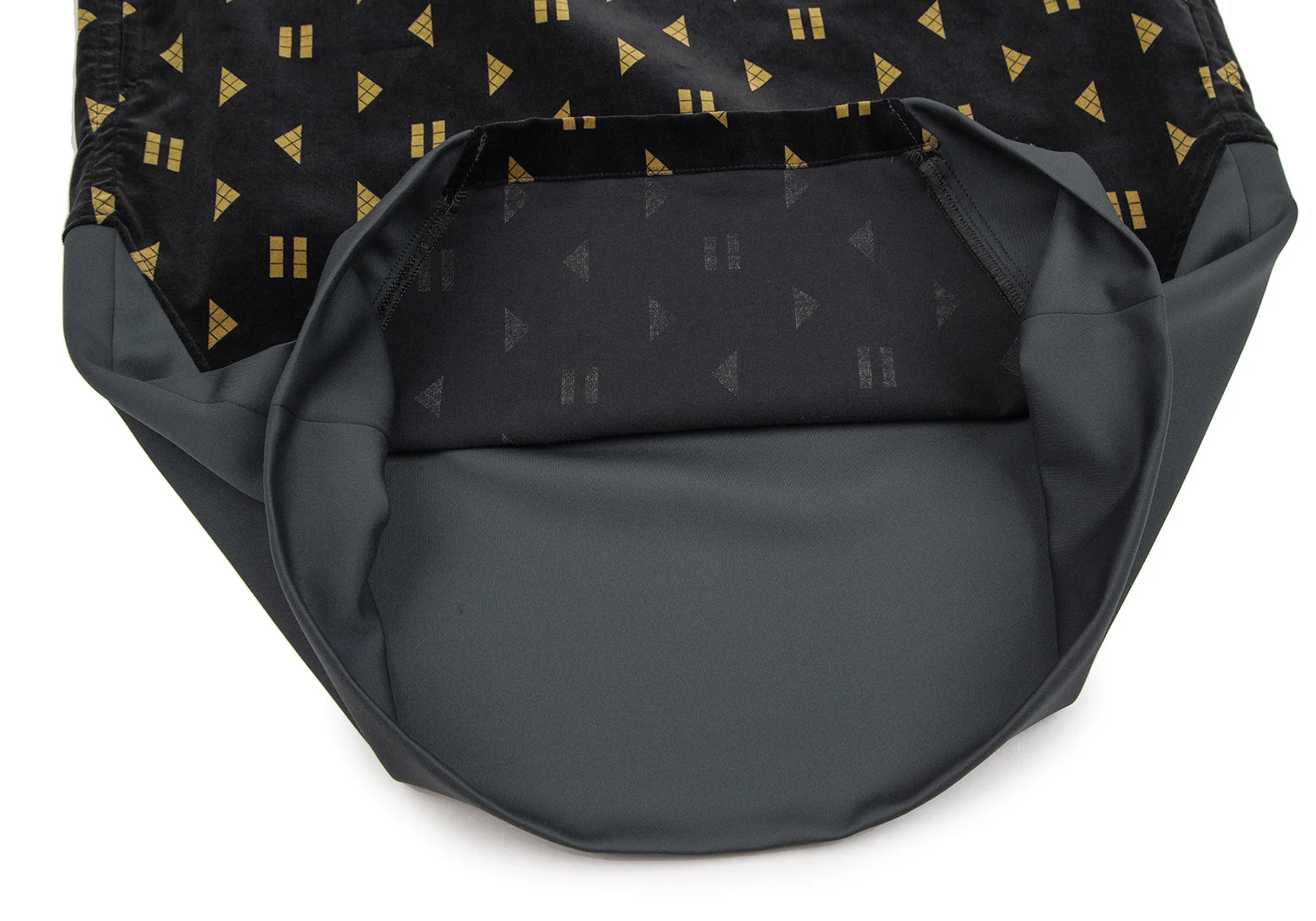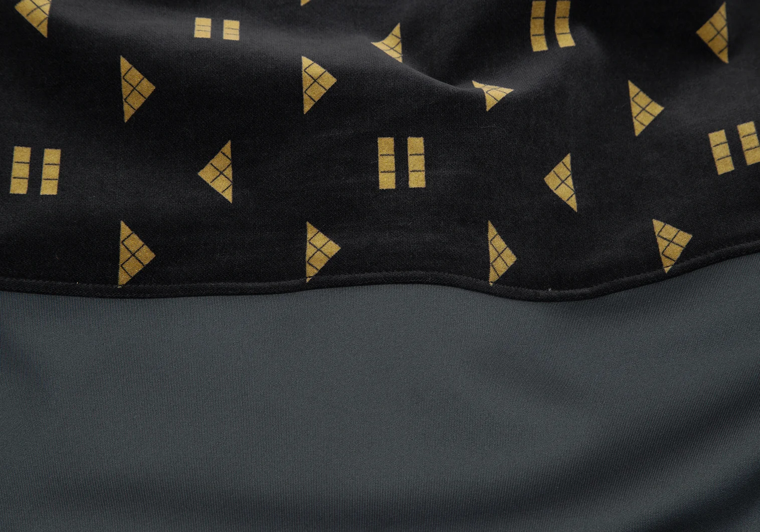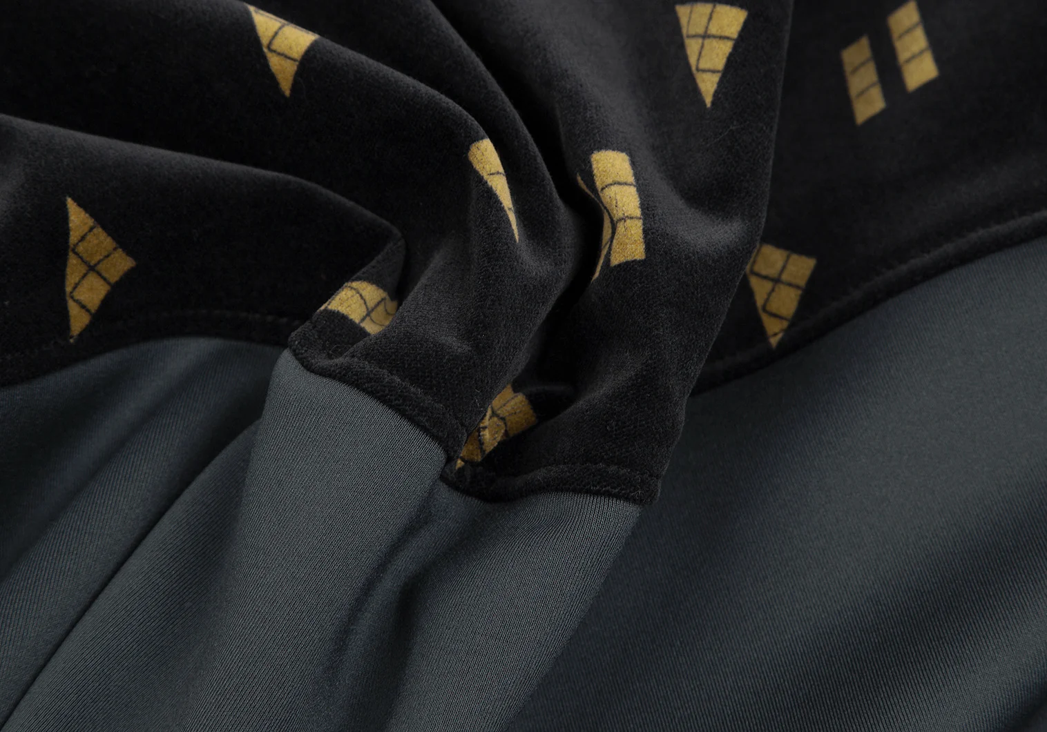 メルシーボークーmercibeaucoup シェイププリントベロア切替プルオーバーシャツワンピース 黒1