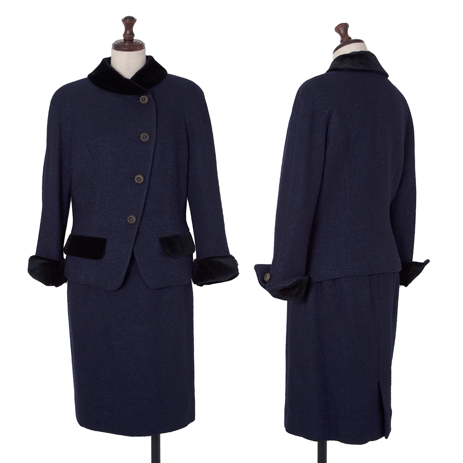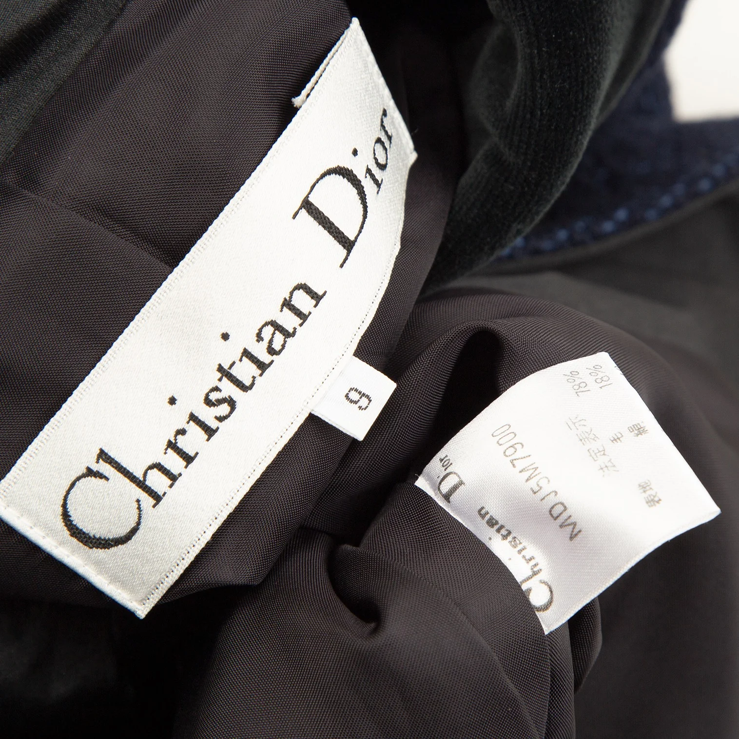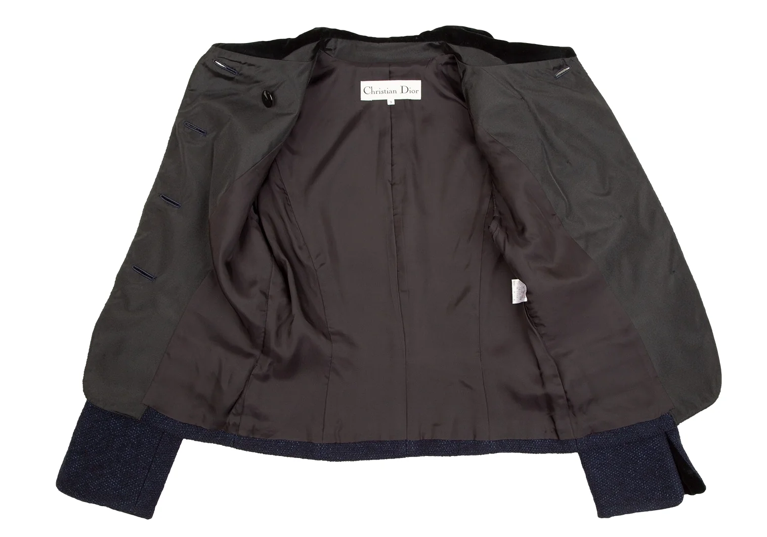 クリスチャンディオールChristian Dior ベロア切替ツイードラウンドカラーセットアップスーツ 紺9