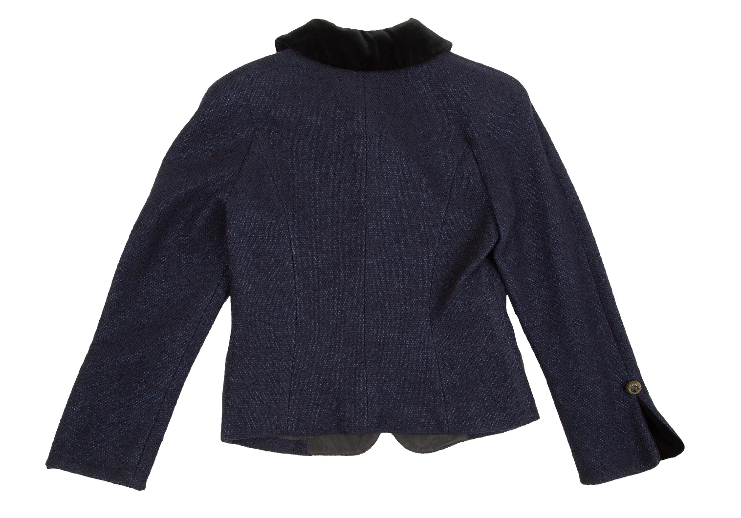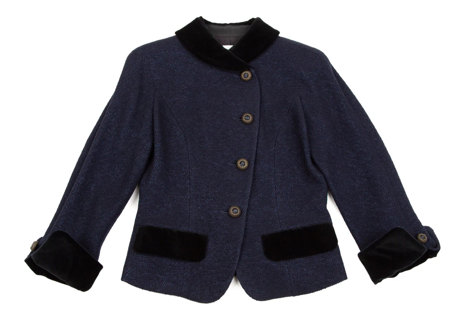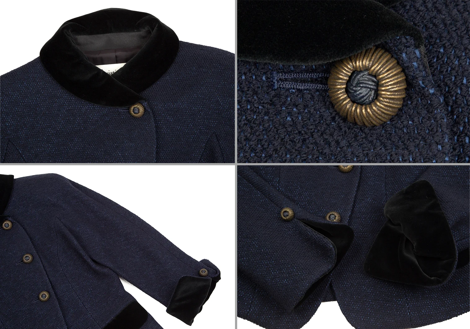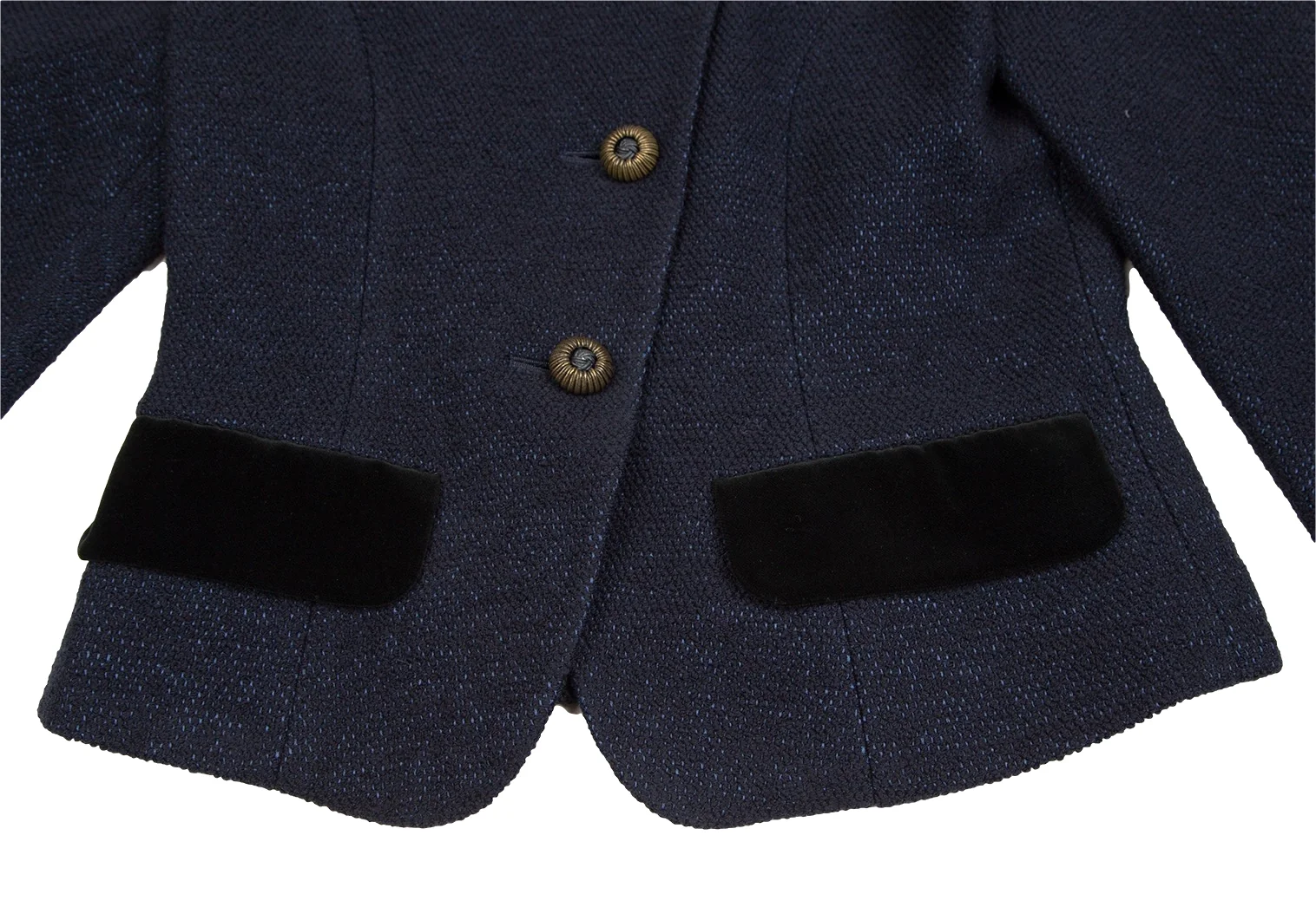 クリスチャンディオールChristian Dior ベロア切替ツイードラウンドカラーセットアップスーツ 紺9