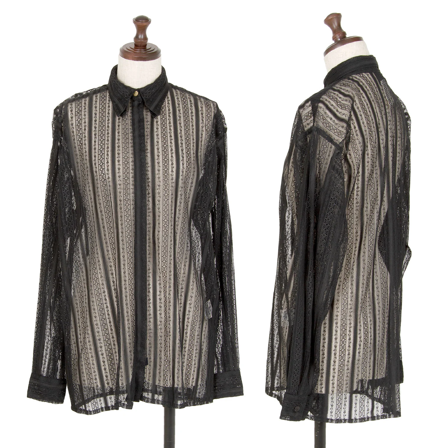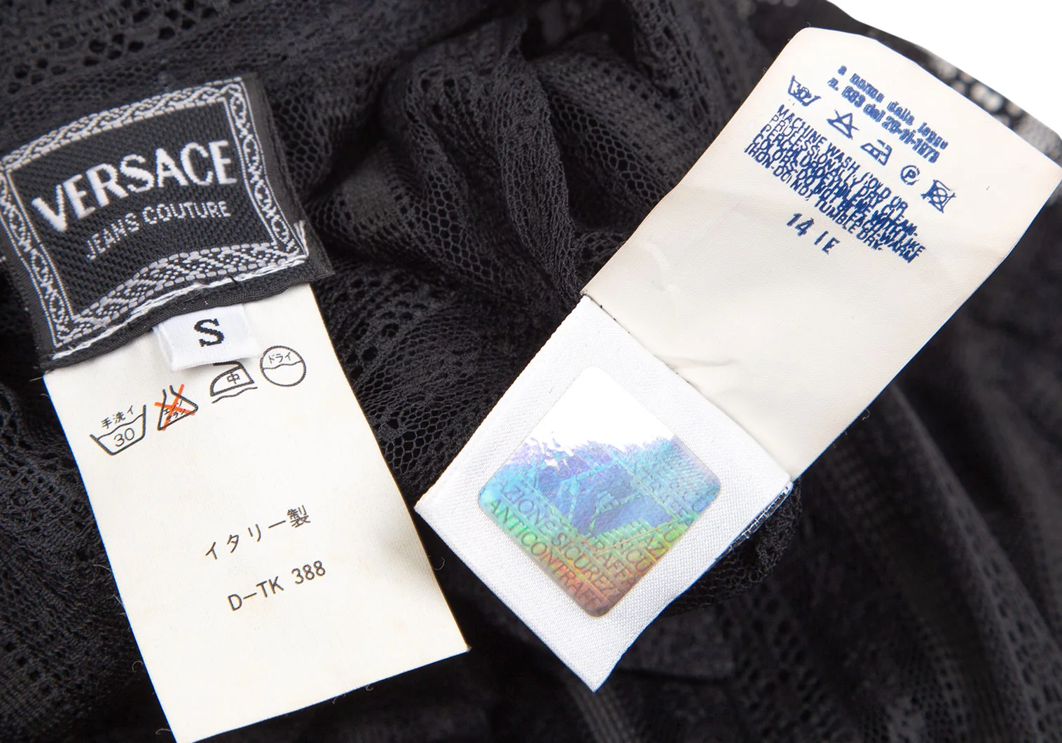 ヴェルサーチ ジーンズクチュールVERSACE JEAN COUTURE ナイロンポリ総レースシャツ 黒S