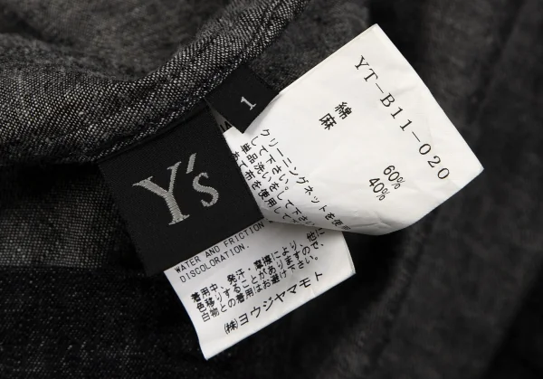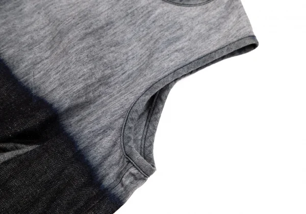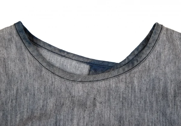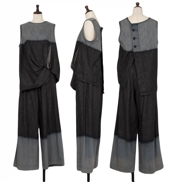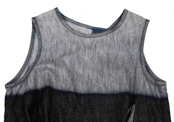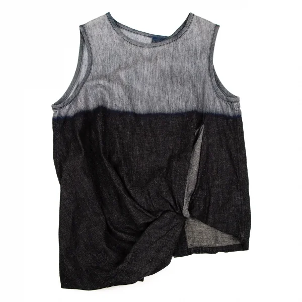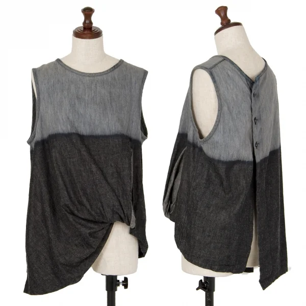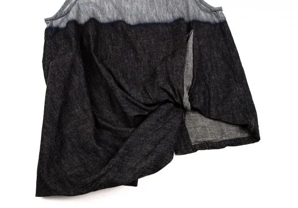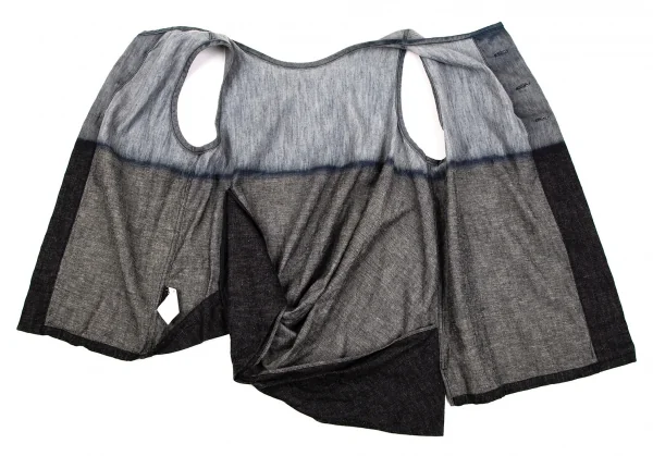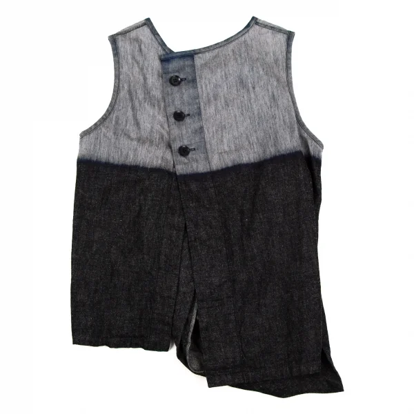 ワイズY's コットンリネン脱色切替アシンメトリーベスト インディゴ1
