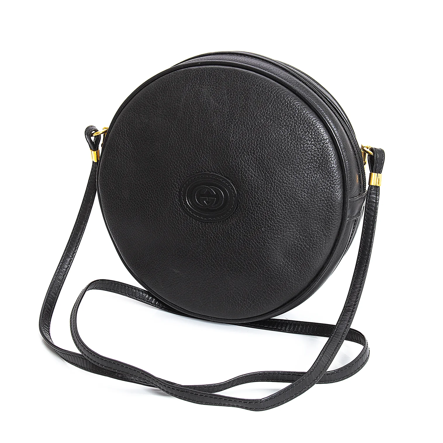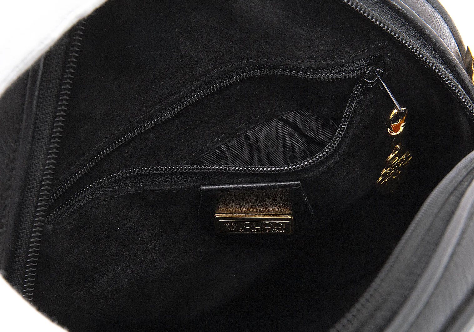 グッチGUCCI オールドグッチレザーショルダーラウンドバッグ 黒