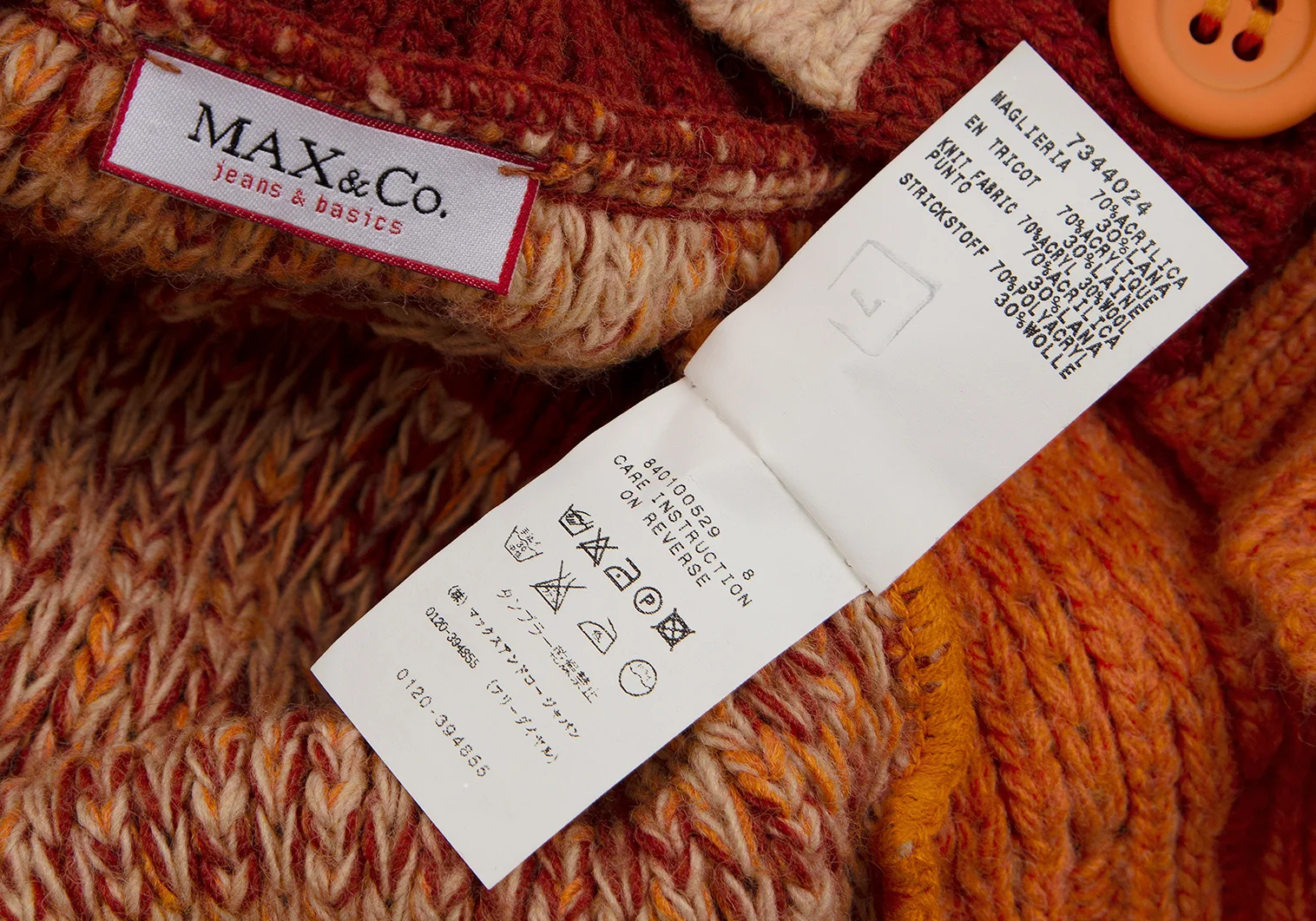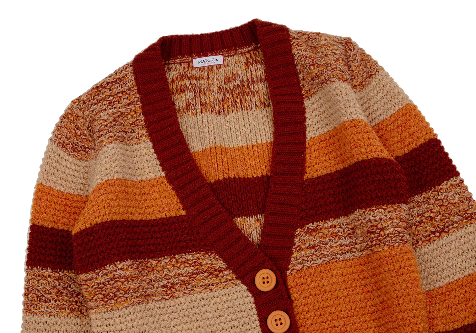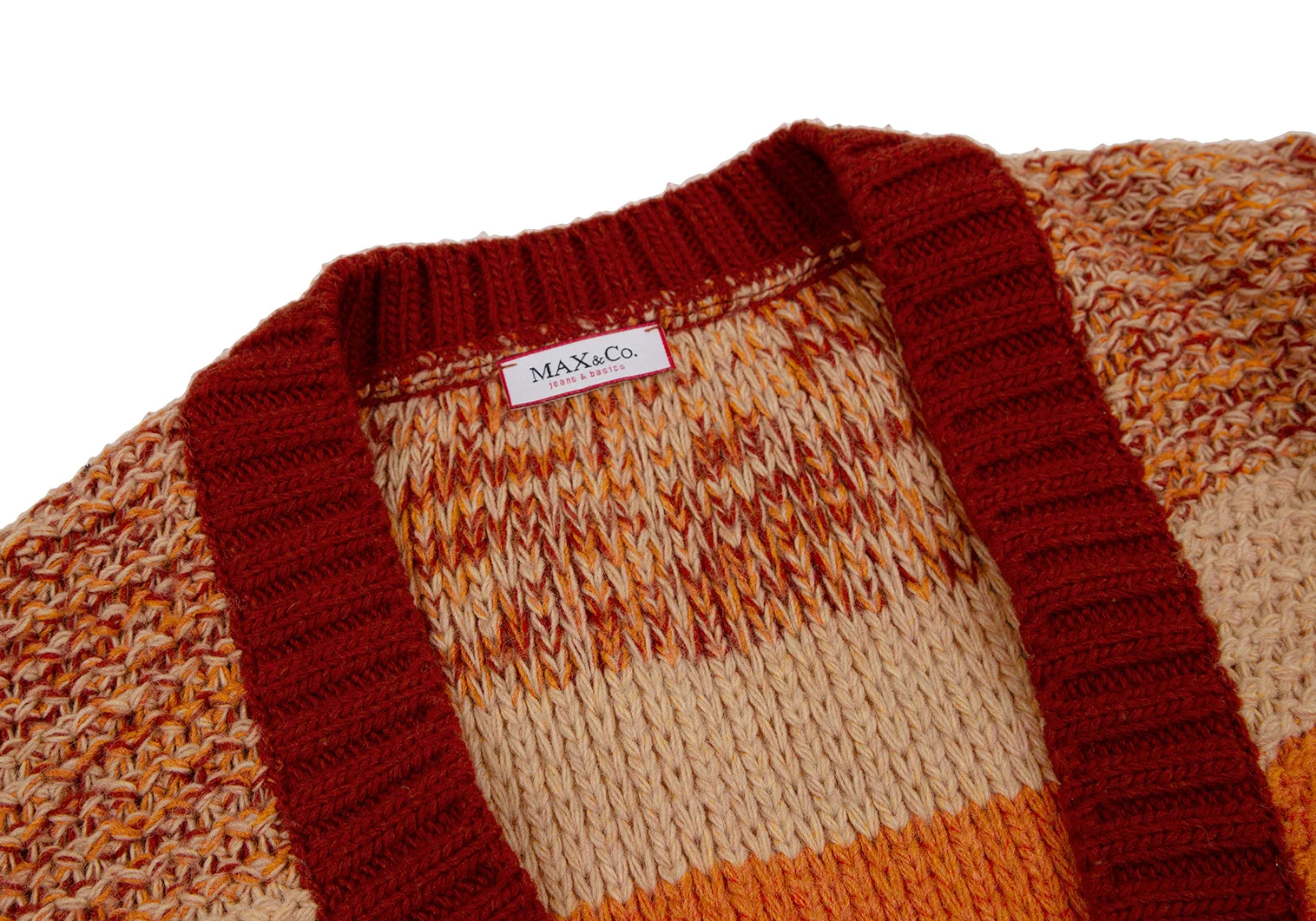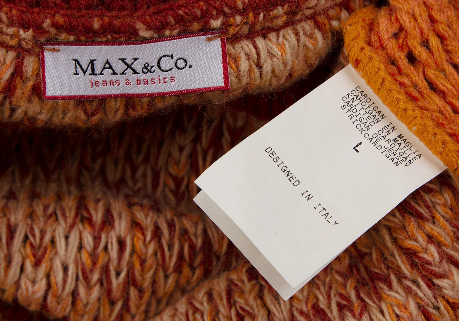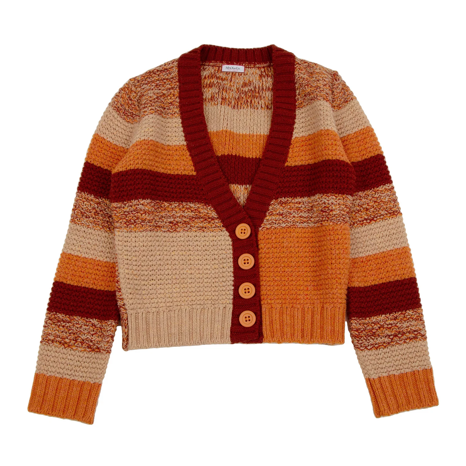 マックスアンドコーMAX&Co ローゲージミックスニットカーディガン オレンジベージュL